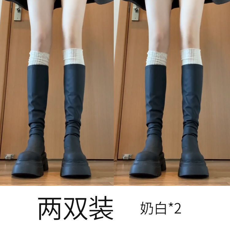 여성용 흰색 롱삭스, 가을 겨울용 롱부츠 레그워머, 나이트부츠 양말, 나이트부츠용 양말