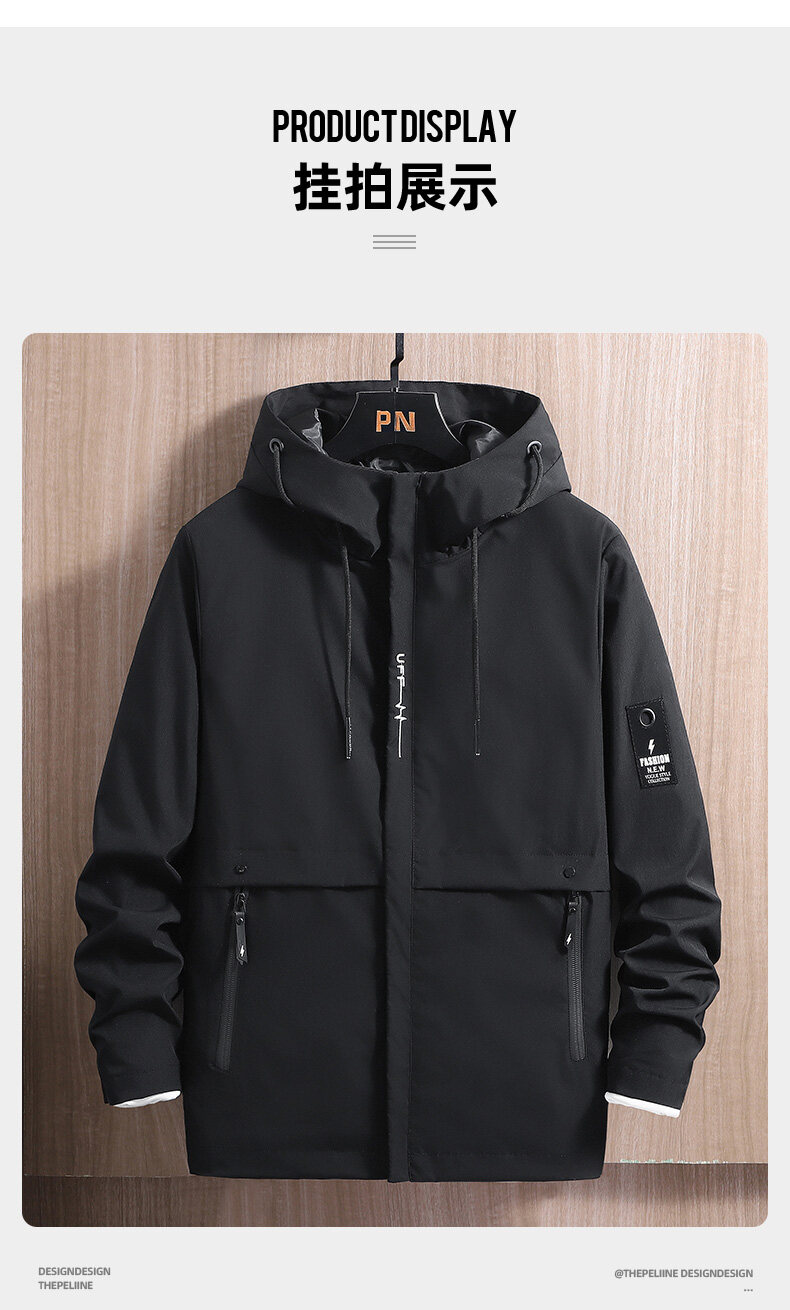 봄과 가을 2024 새로운 남성 후드 자켓 잘 생긴 패션 10 대 남성 올 매치 솔리드 컬러 방풍 재킷스토어 가기