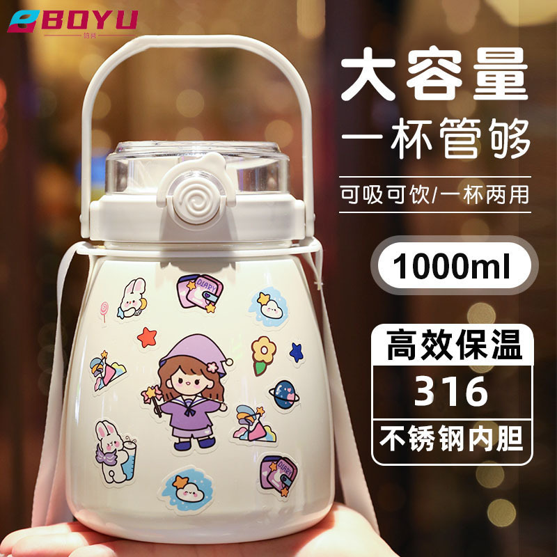 새로운 316 스테인리스 스틸 대용량 물컵, 보온병, 만화 캐릭터 휴대용 빨대컵, 어린이 남녀공용