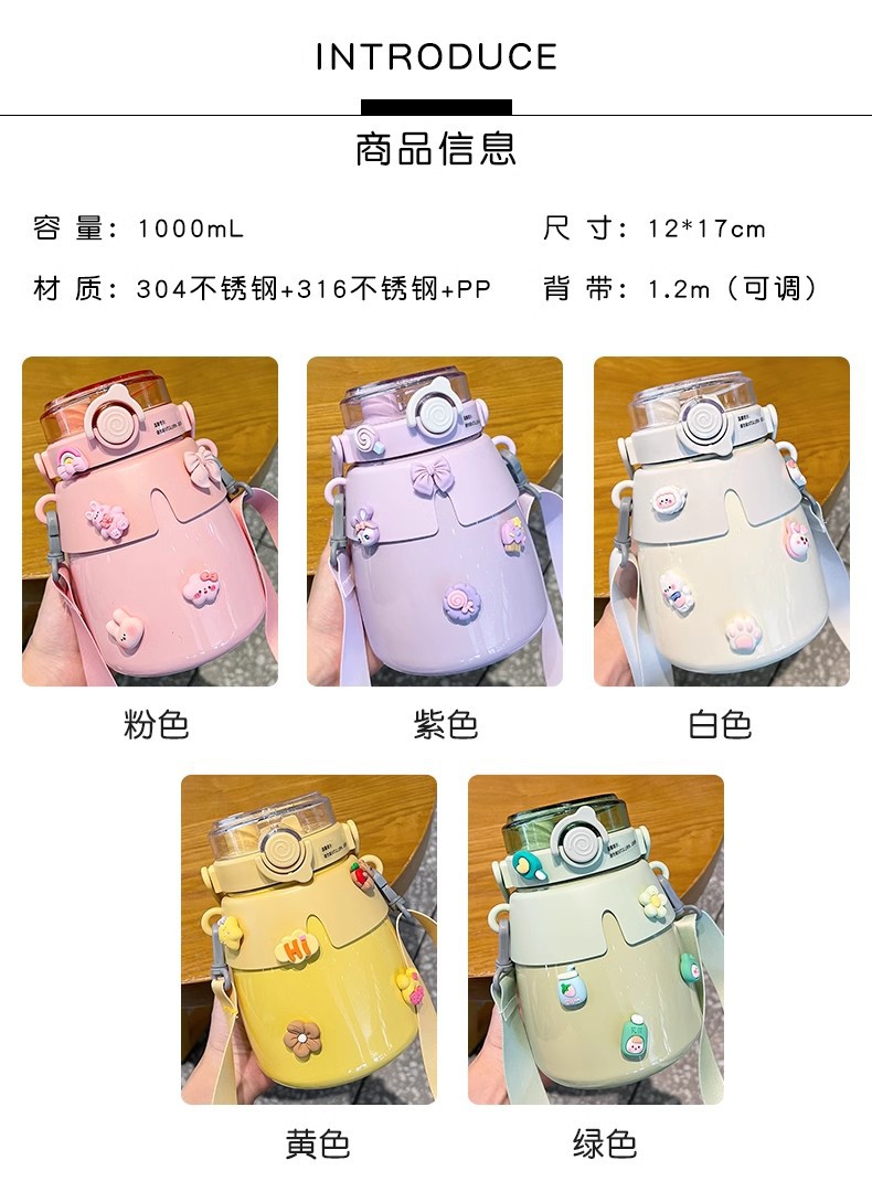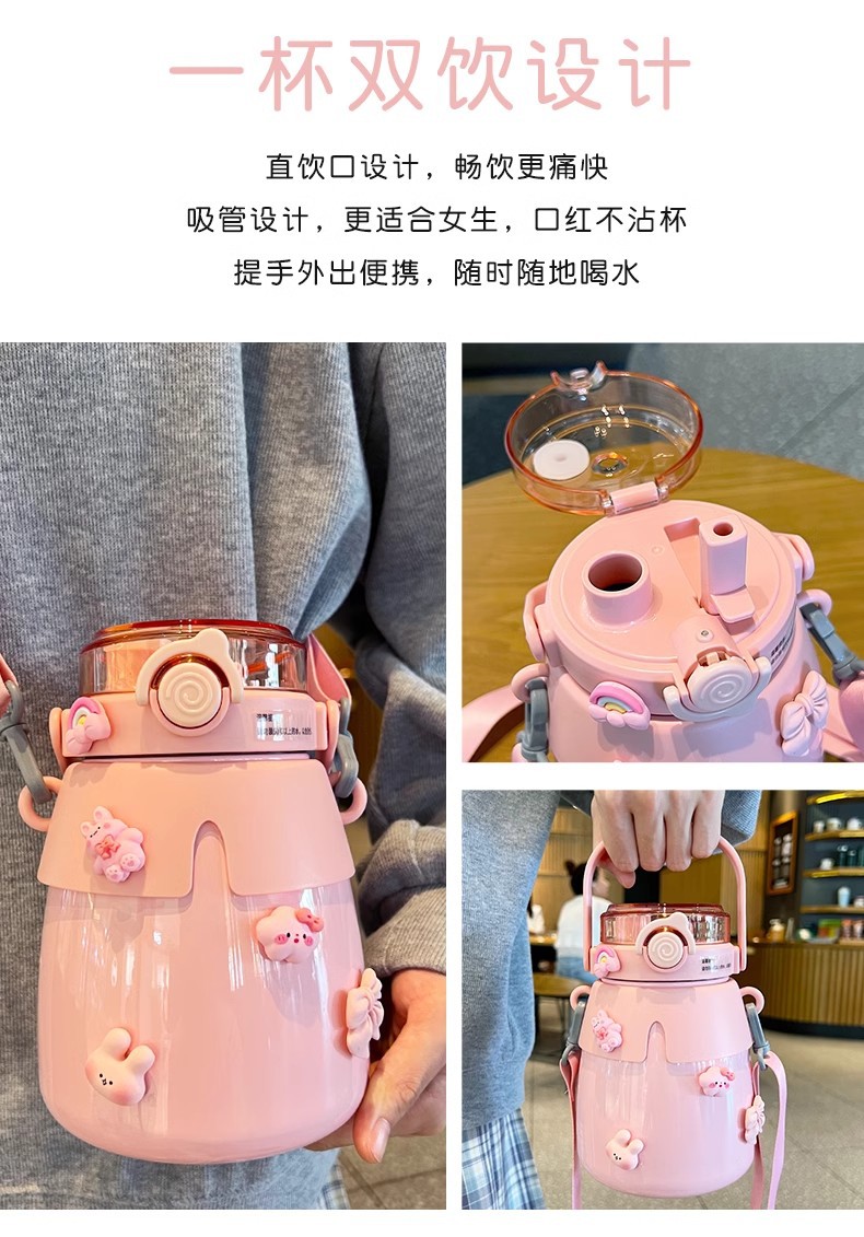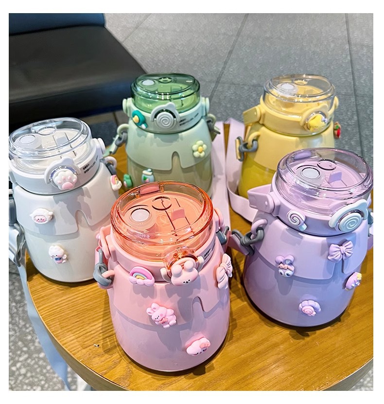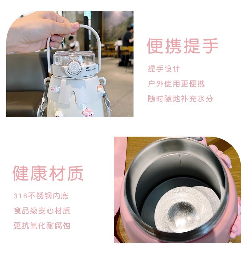 새로운 316 스테인리스 스틸 대용량 물컵, 보온병, 만화 캐릭터 휴대용 빨대컵, 어린이 남녀공용스토어 가기