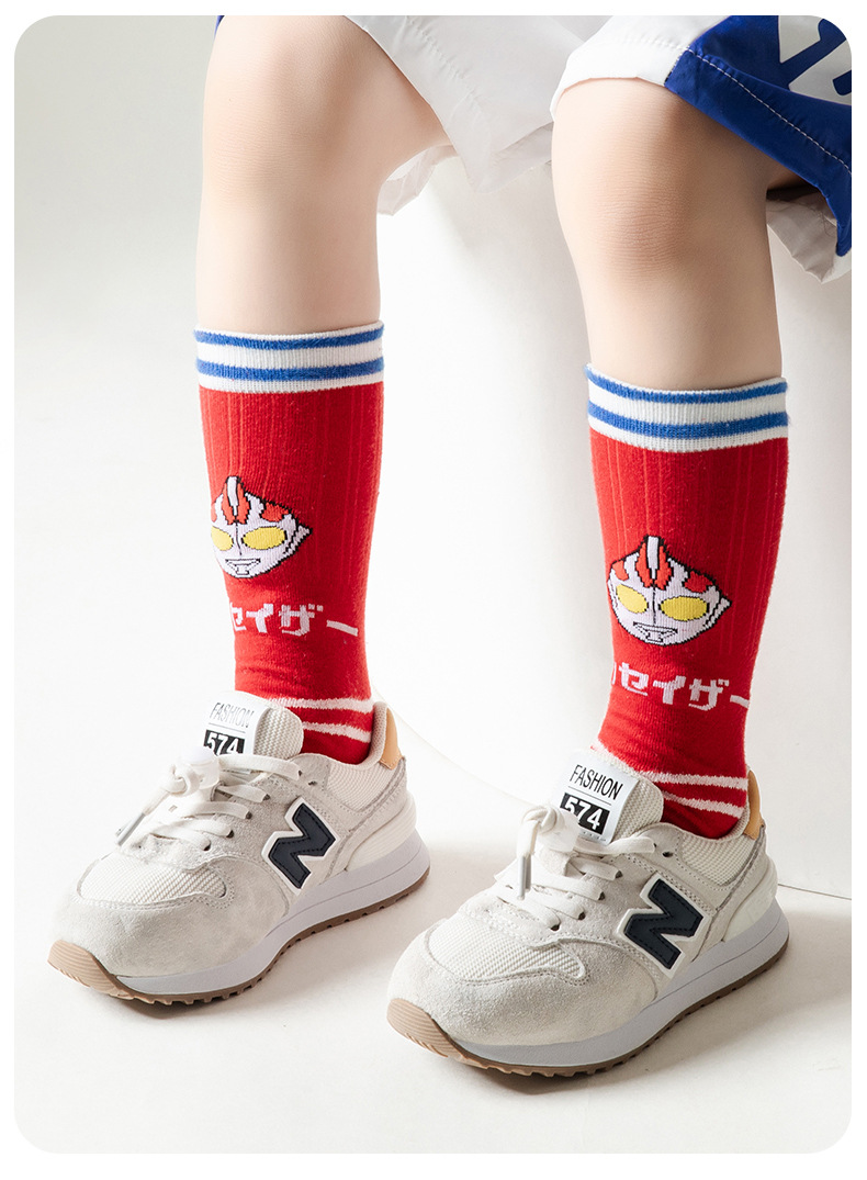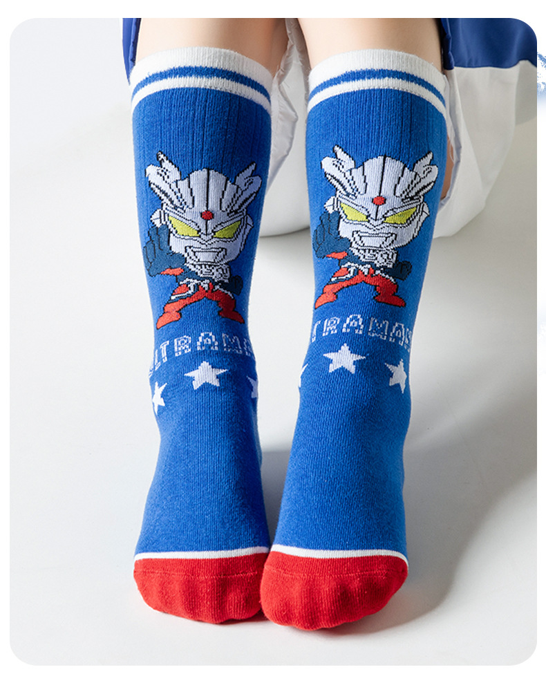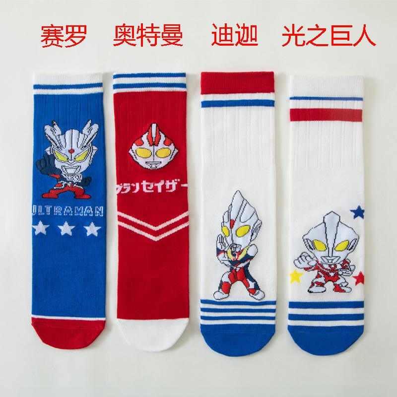 어린이 양말 봄과 여름 얇은 높은 면 양말 소년 초등학생을위한 중 및 롱 코튼 양말 만화 울트라 맨 메쉬 얕은 양말스토어 가기