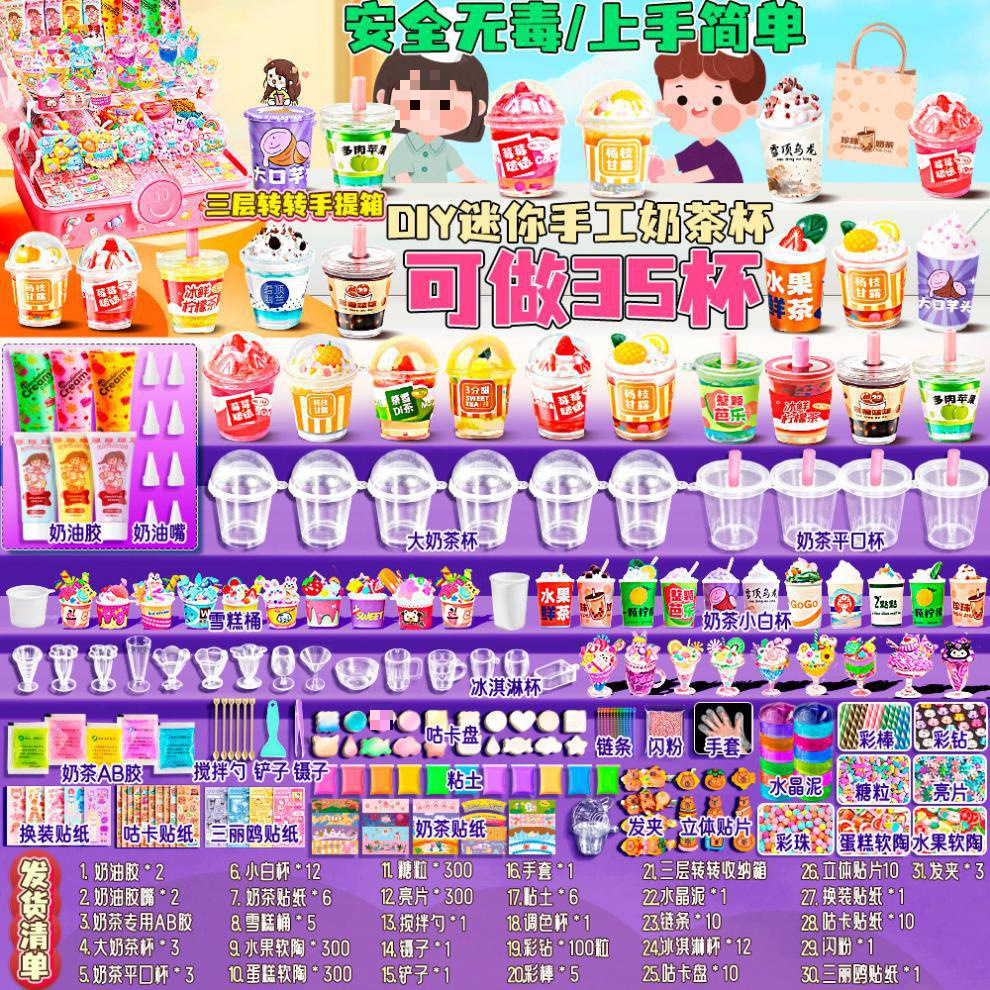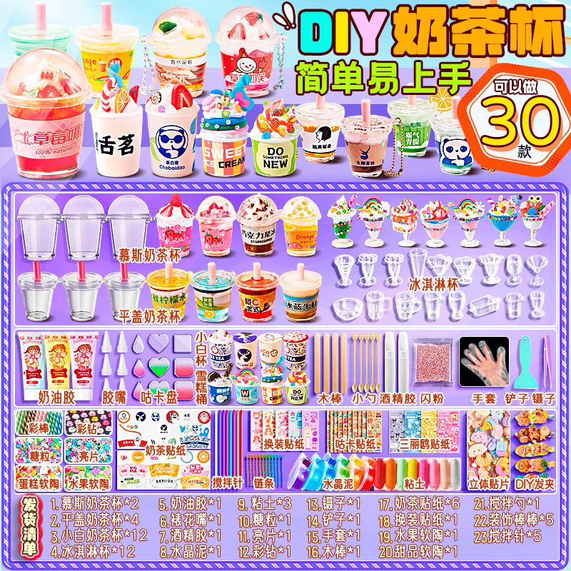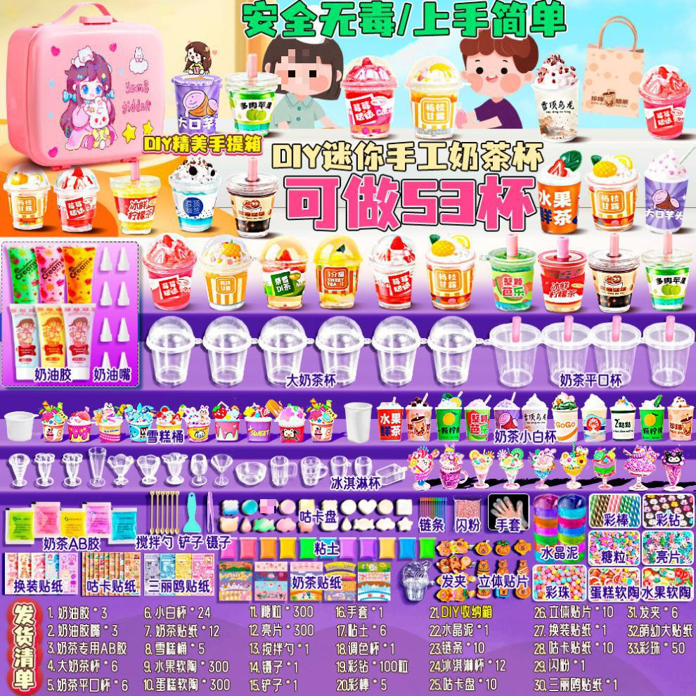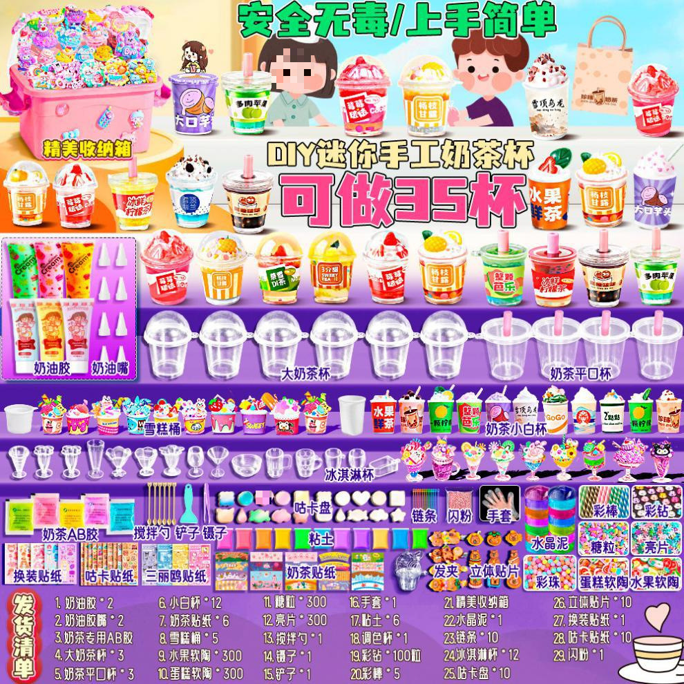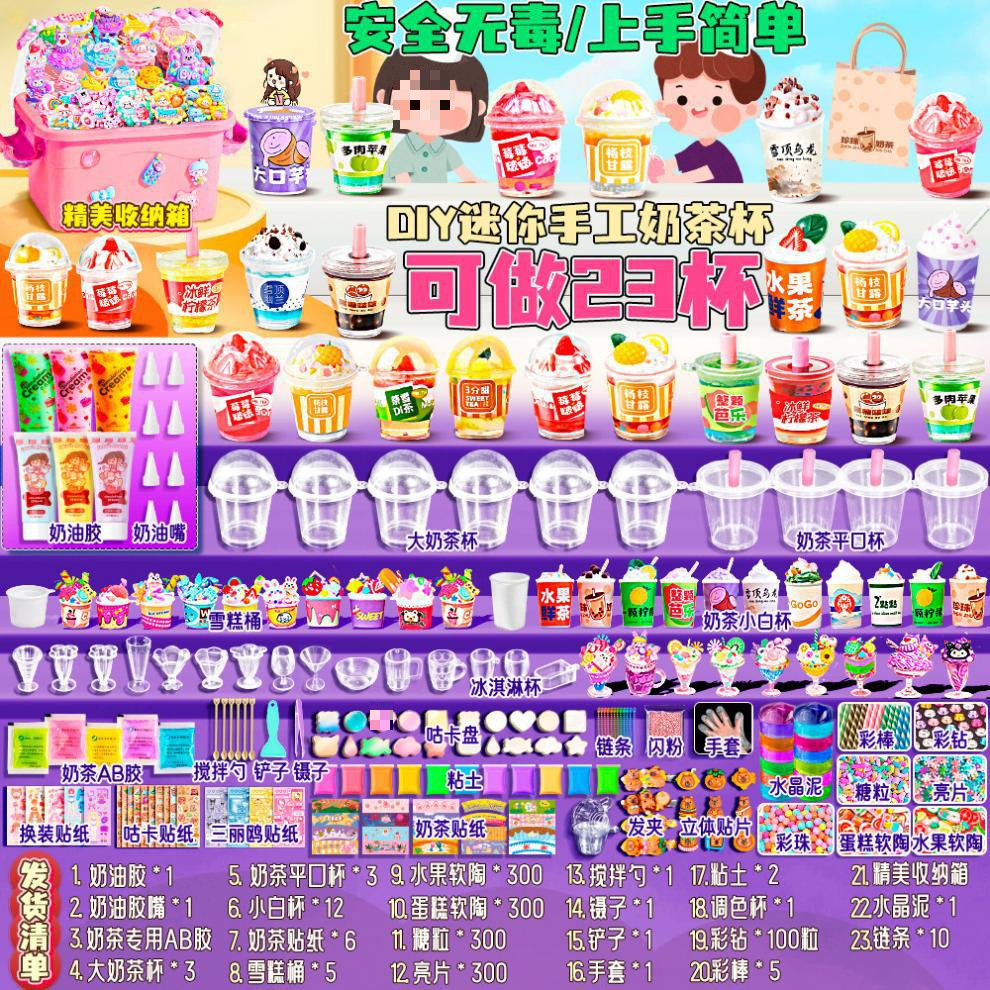 미니 DIY 밀크 티 컵 수제 풀 세트 소재 저렴한 어린이 장난감 소녀 크림 접착제 아이스크림 컵스토어 가기