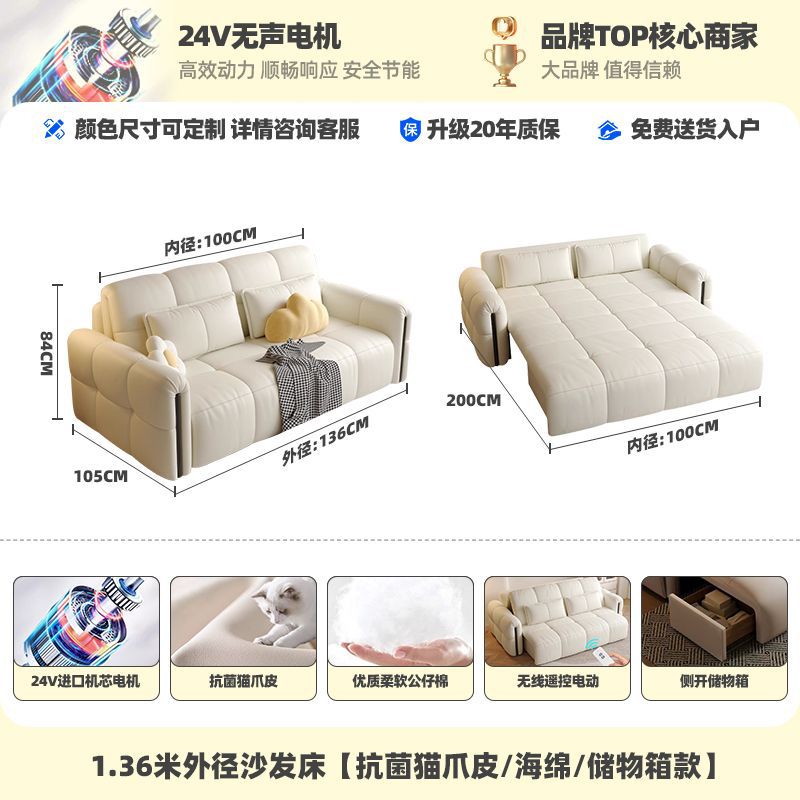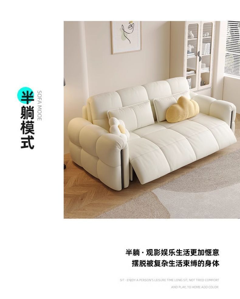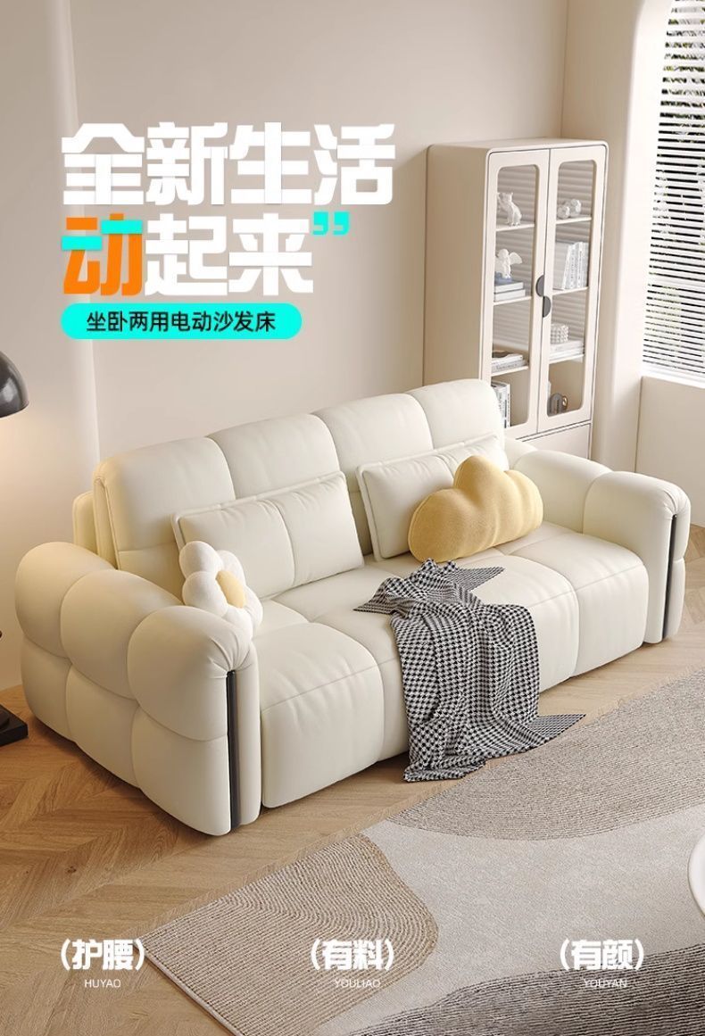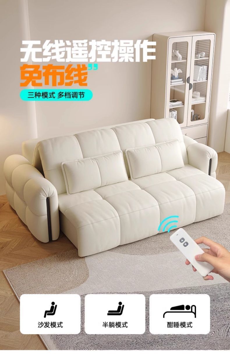 Jianyoumei 지능형 가죽 전기 소파 침대 다기능 접이식 이중 목적 간단한 크림 스타일 작은 아파트스토어 가기