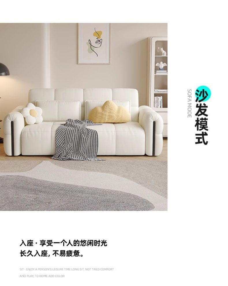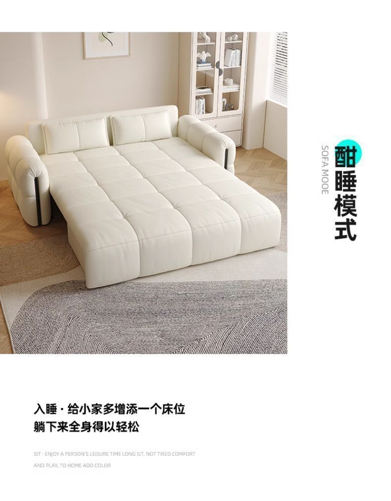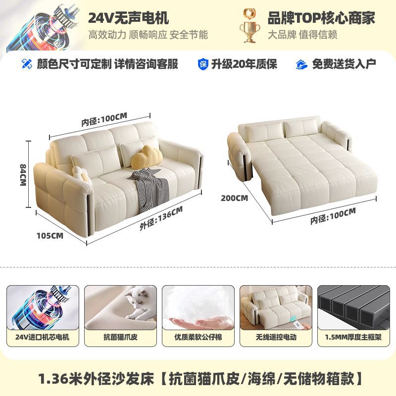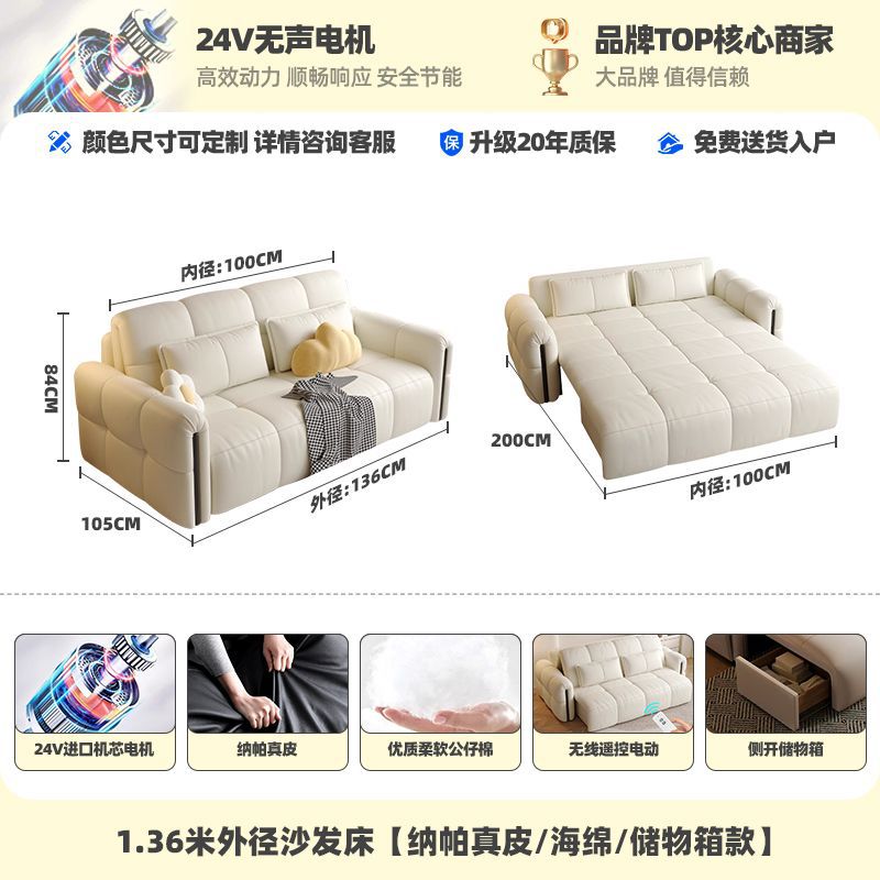 Jianyoumei 지능형 가죽 전기 소파 침대 다기능 접이식 이중 목적 간단한 크림 스타일 작은 아파트스토어 가기