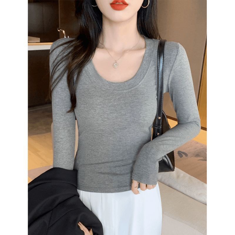2025 봄 새로운 유럽과 미국의 플러스 사이즈 여성 마일라드 스타일 퓨어 U-넥 슬림 핏 내베이스 셔츠스토어 가기