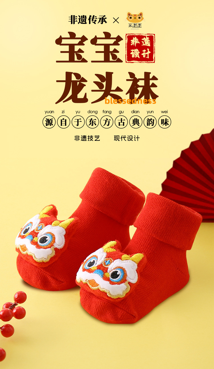 봄과 가을 신생아 아기 수도꼭지 양말 붉은 보름달 잡아 주 부드러운 바닥 미끄럼 방지 수도꼭지 양말 아기 바닥 양말스토어 가기