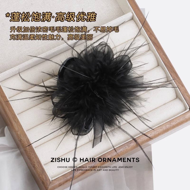 디자인 센스 메쉬 깃털 잡아 헤어 클립 헤어 클립 헤드폰 블랙 헤드 플라워 상어 클립 고급 올 매치 인터넷 레드 헤어 액세서리