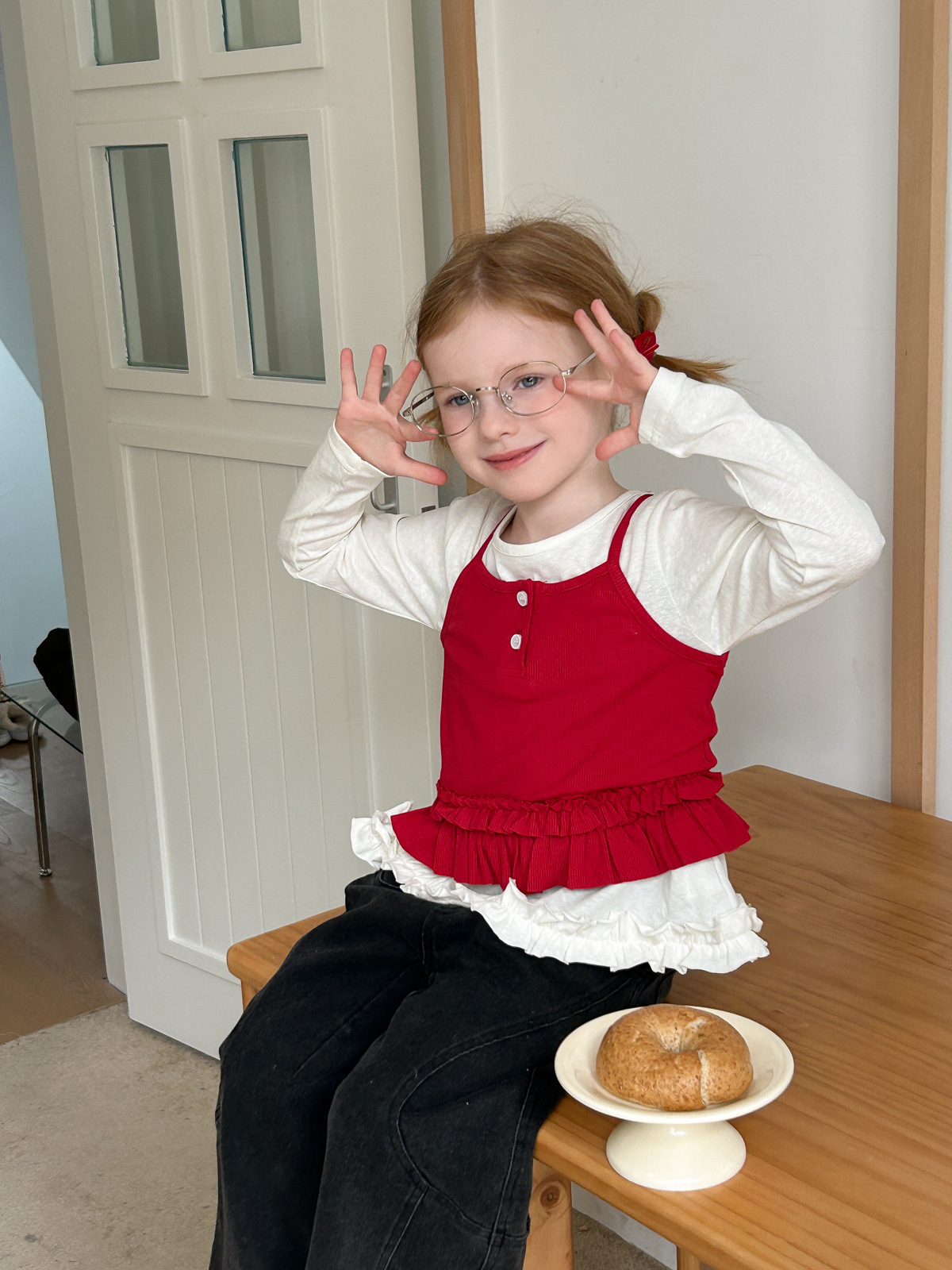 25 년 봄, 새로운 소녀 어린이 니트 조끼 레이스 T 투피스 세트 어린이 접힌 슬링 솔리드 화이트 T스토어 가기