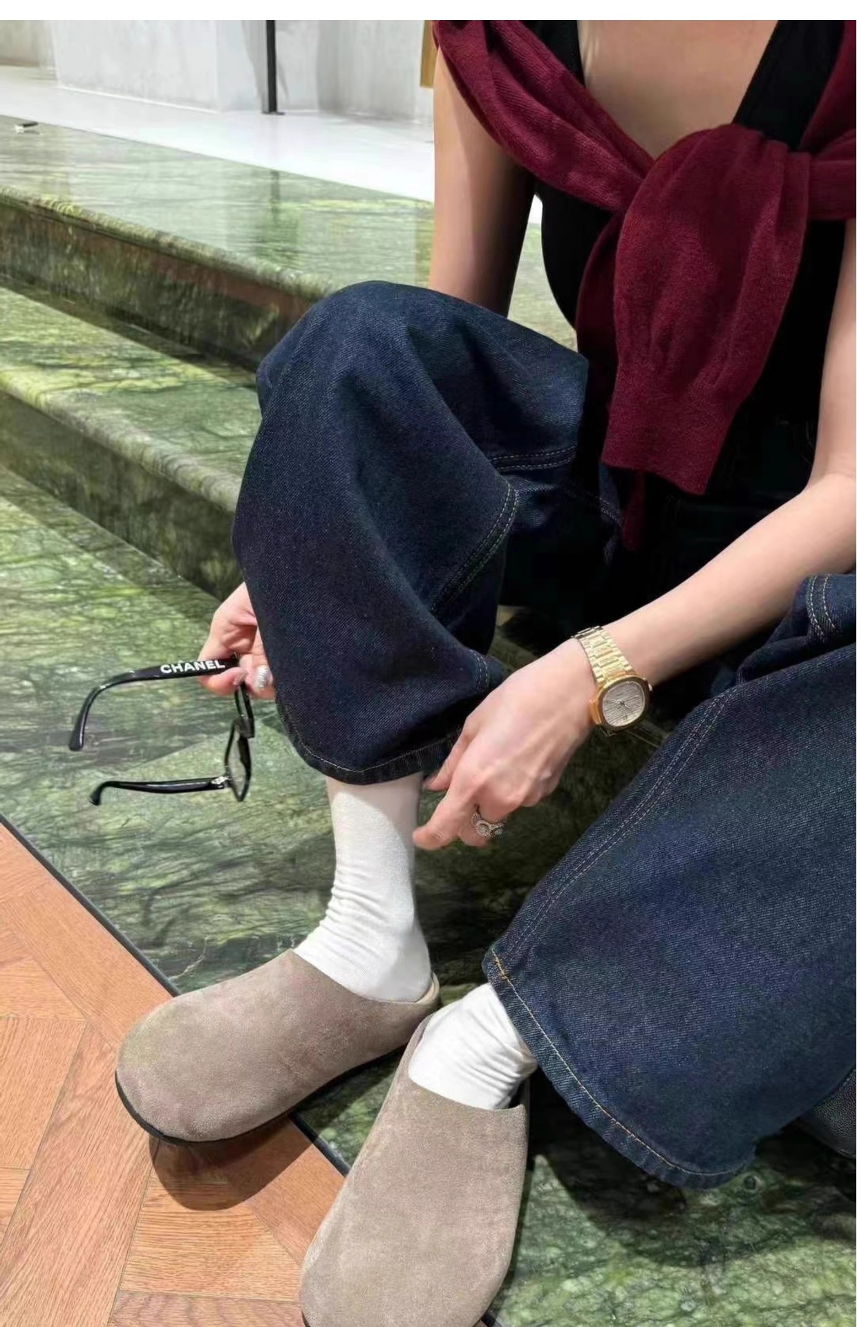 순수 오리지널 두꺼운 밑창 정품 가죽 버켄 슈즈 큰 발가락 슬립 온 게으른 버켄 슈즈 봄과 가을 Baotou 하프 슬리퍼스토어 가기
