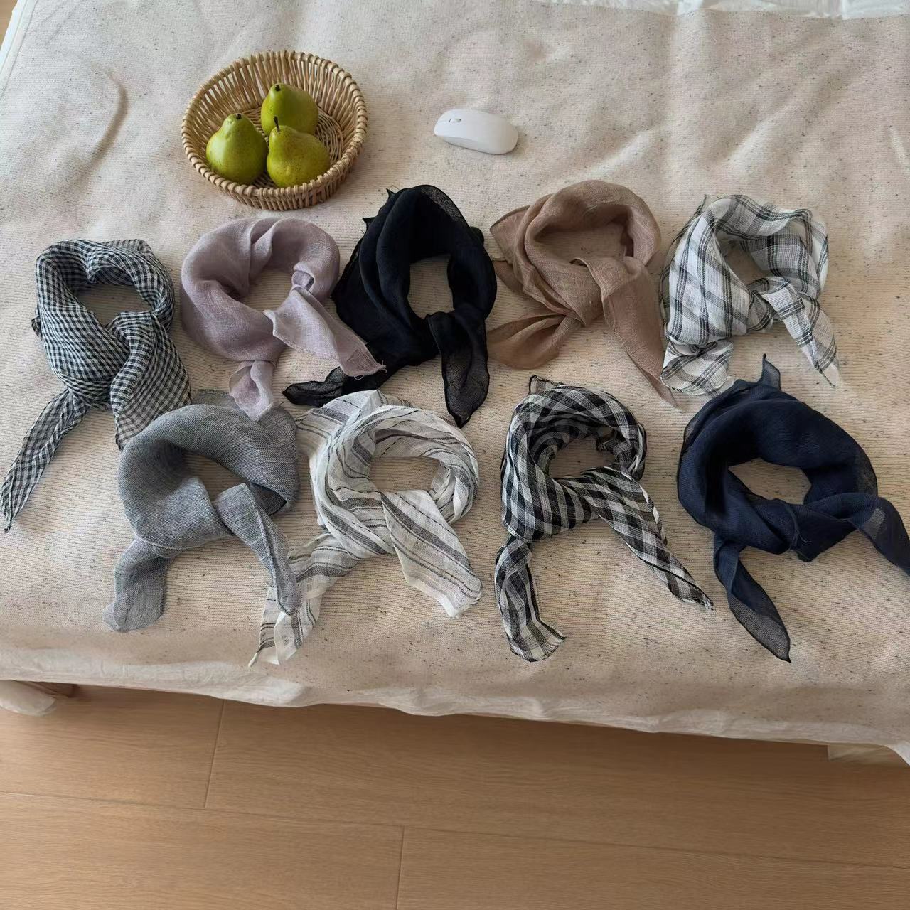 새로운 일본 스타일 100 순수 리넨 스퀘어 스카프 여성의 통기성 캐주얼 올 매치 스카프 봄과 가을 스카프 작은 실크 스카프 헤어 벨트