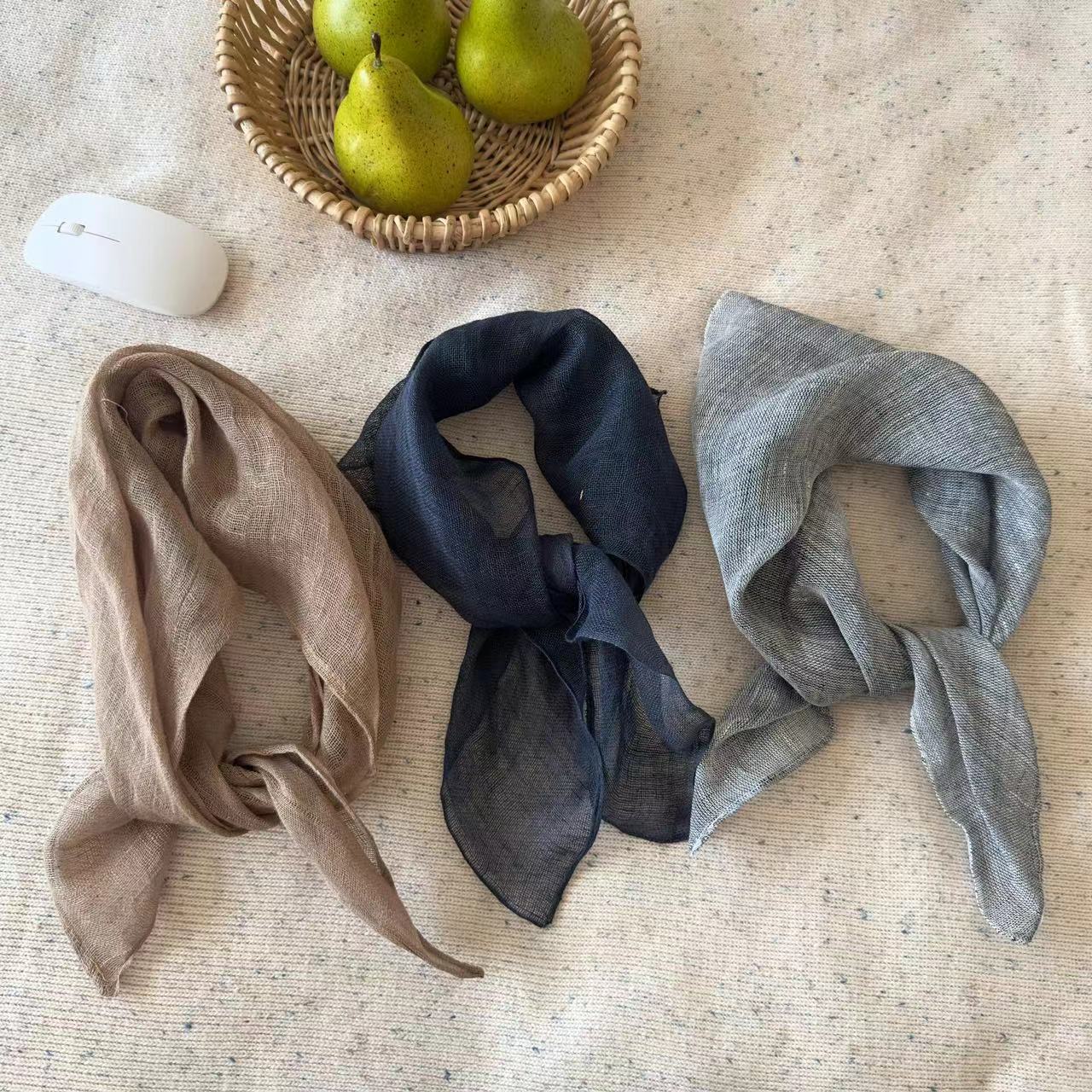 새로운 일본 스타일 100 순수 리넨 스퀘어 스카프 여성의 통기성 캐주얼 올 매치 스카프 봄과 가을 스카프 작은 실크 스카프 헤어 벨트스토어 가기