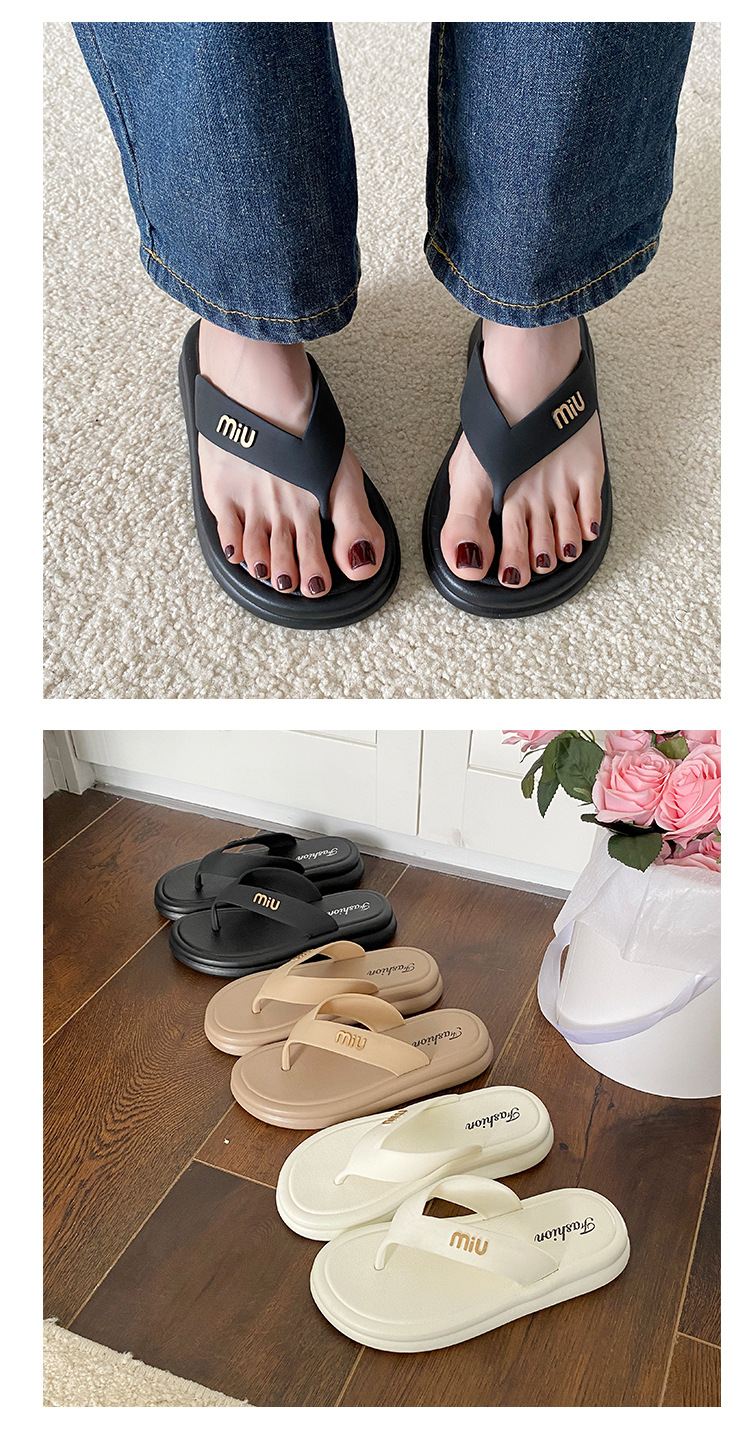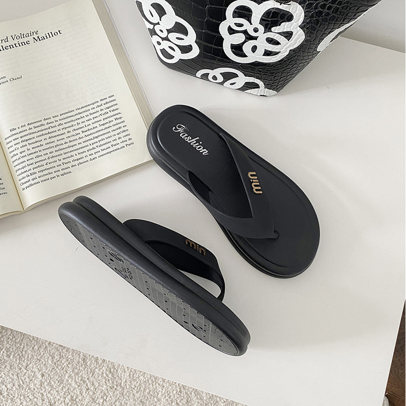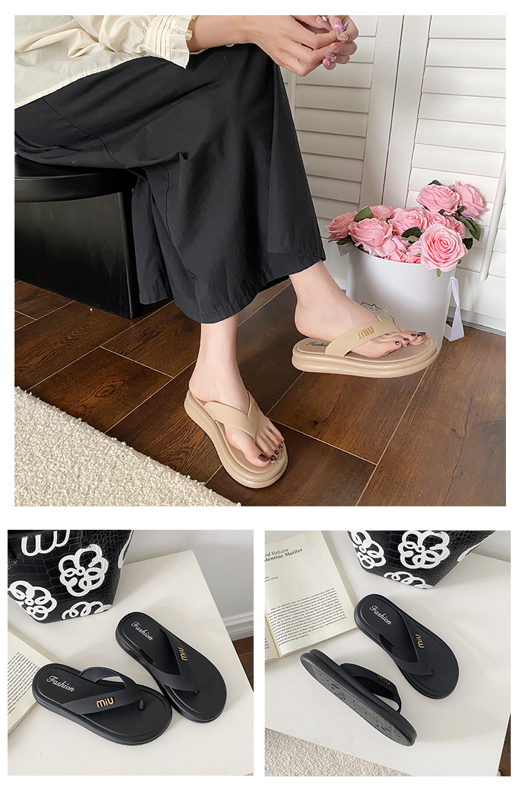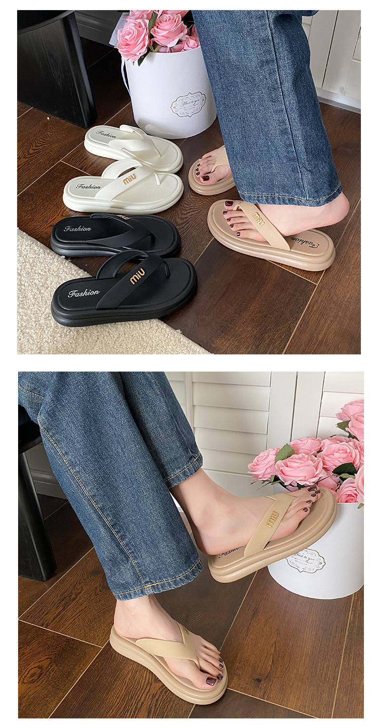 2025 여성을위한 새로운 여성 플립 플롭 여름 착용 미끄럼 방지 시사이드 두꺼운 밑창 샌들 여성을위한 플랫 플립 플롭
