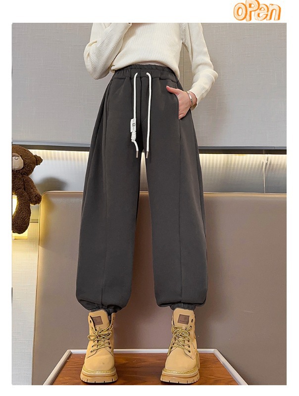 소녀 바지 봄 2025 새로운 어린이 캐주얼 운동복 봄 가을 소녀 큰 아이들 회색 스포츠 바지 가을 착용