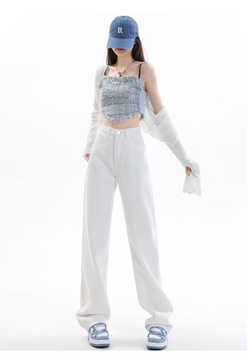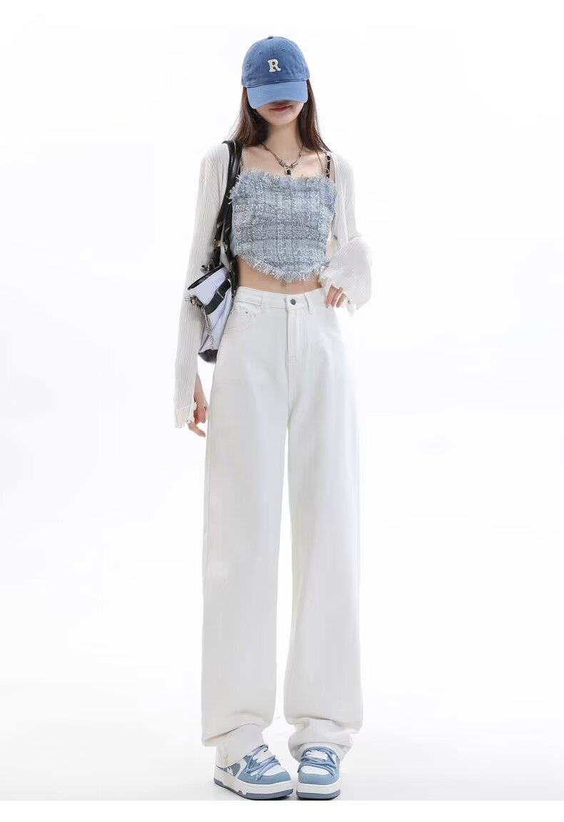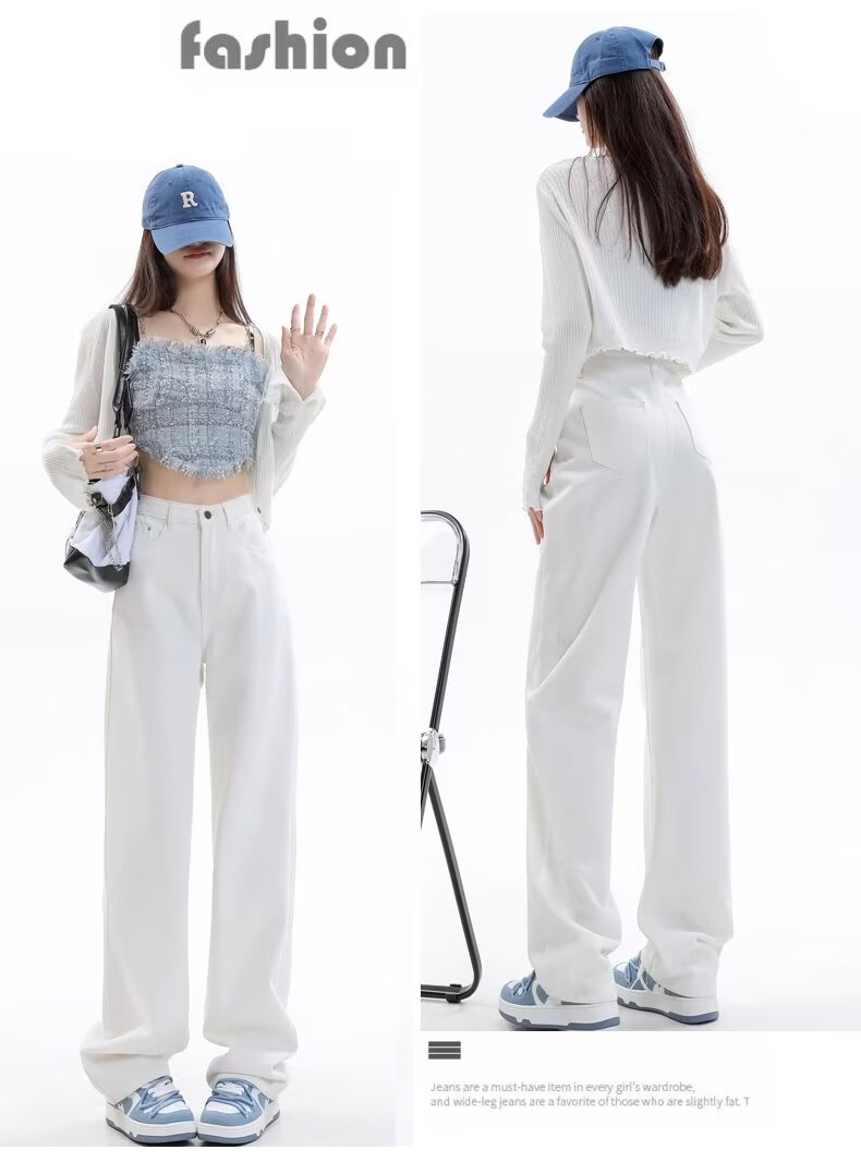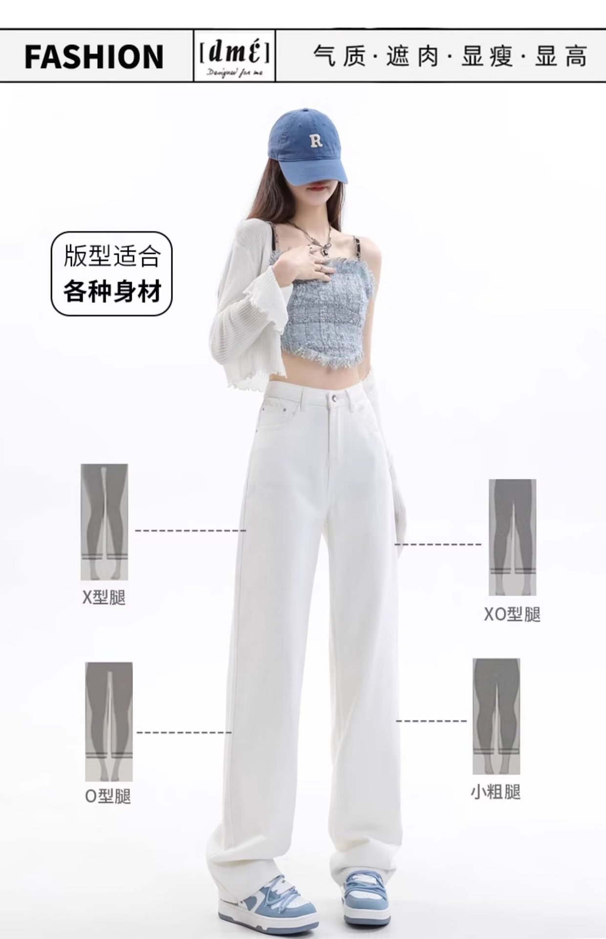 2025 봄과 여름 새로운 흰색 느슨한 넓은 다리 스트레이트 튜브 높은 허리 바닥 청바지 여성 바지 제조 업체 도매 면화스토어 가기