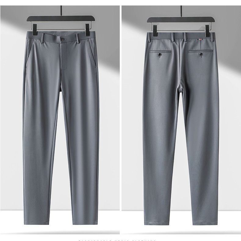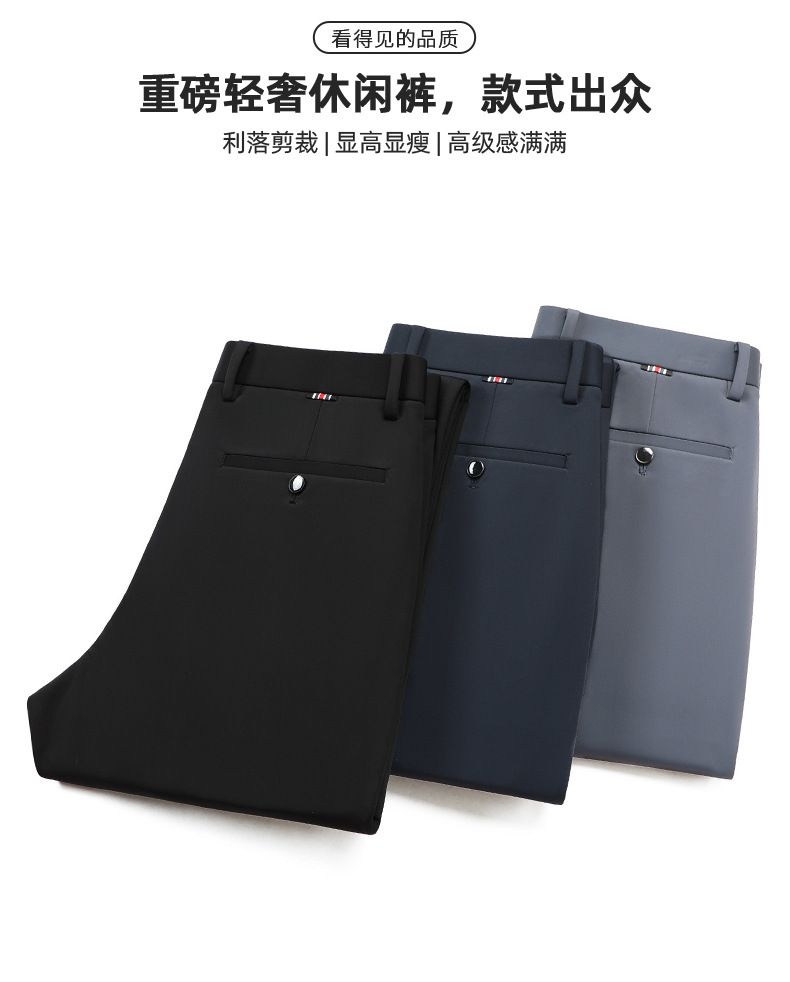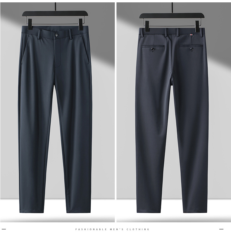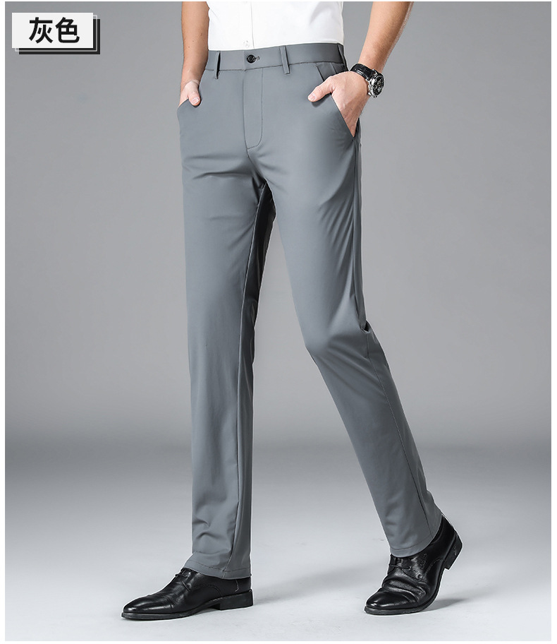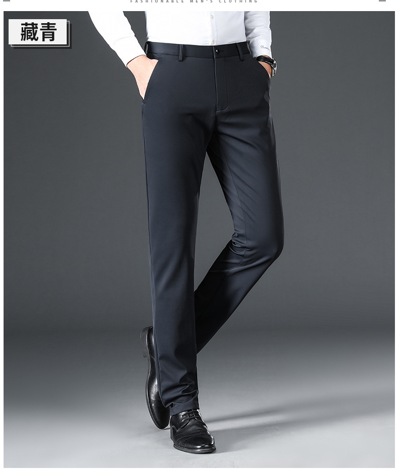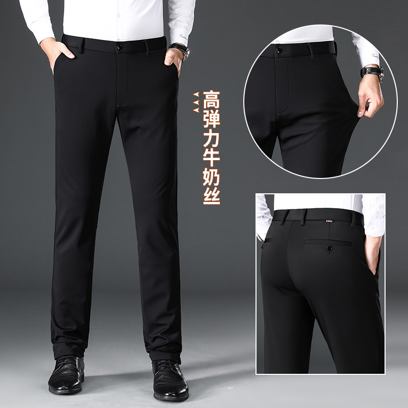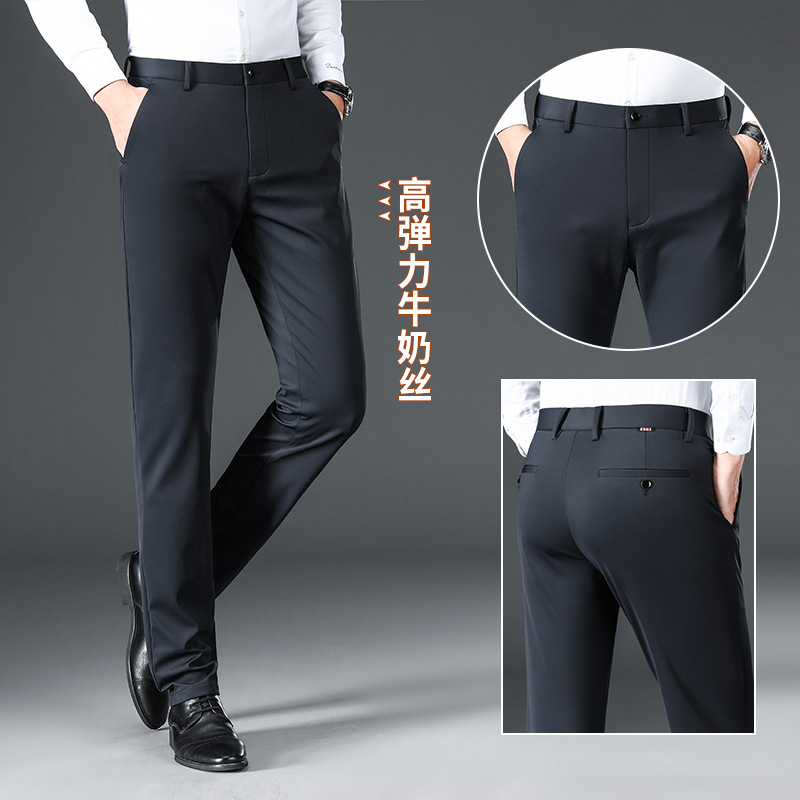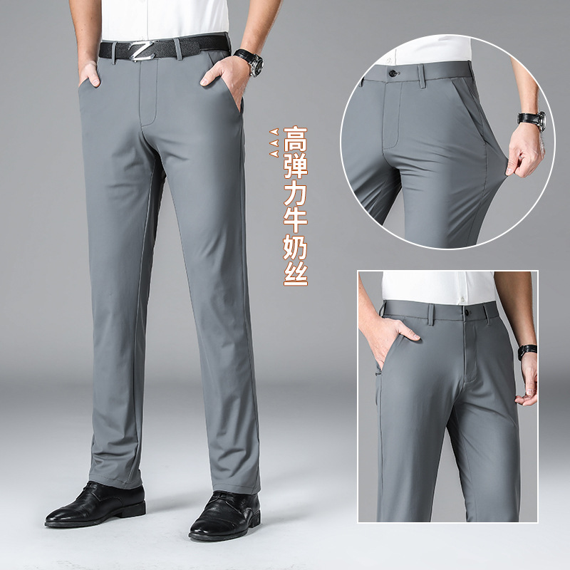 2025 봄과 가을 새로운 아이스 실크 탄성 남성 캐주얼 바지 중년 비즈니스 패션 올 매치 스트레이트 바지 남성 바지스토어 가기