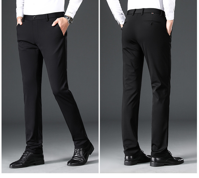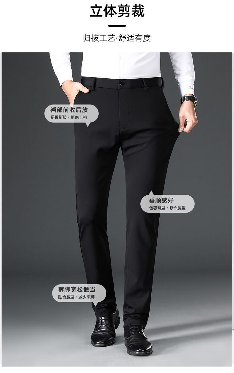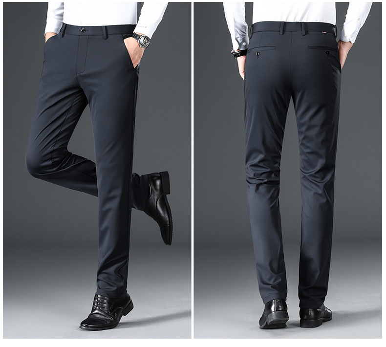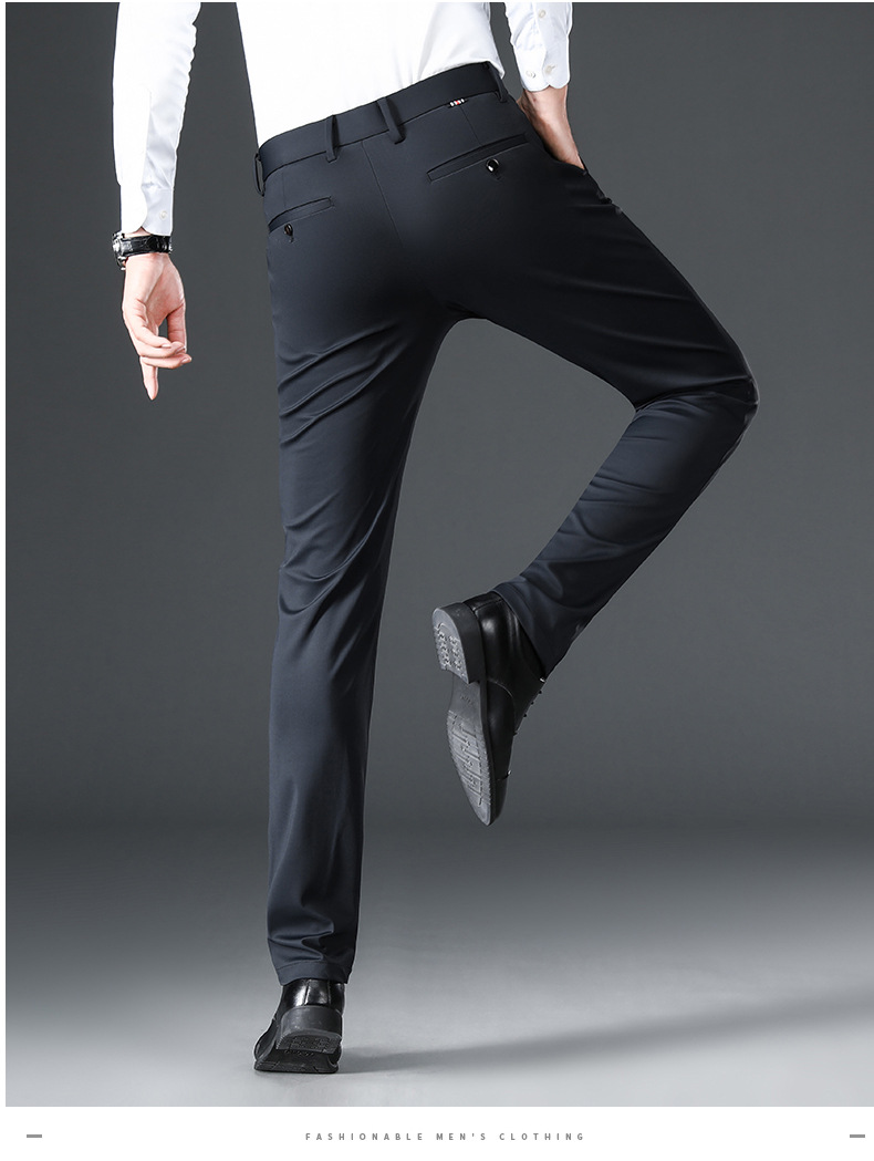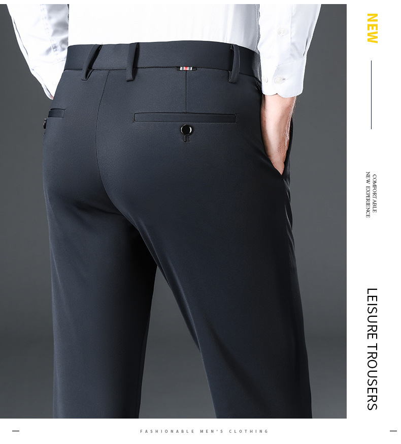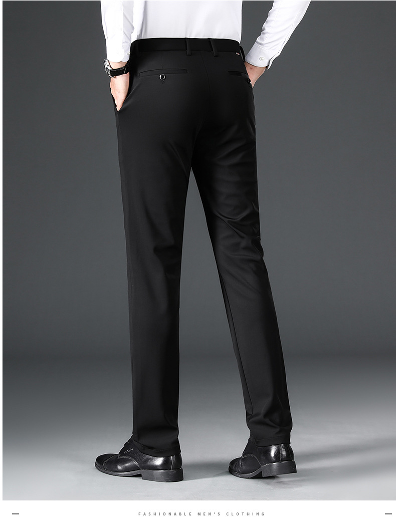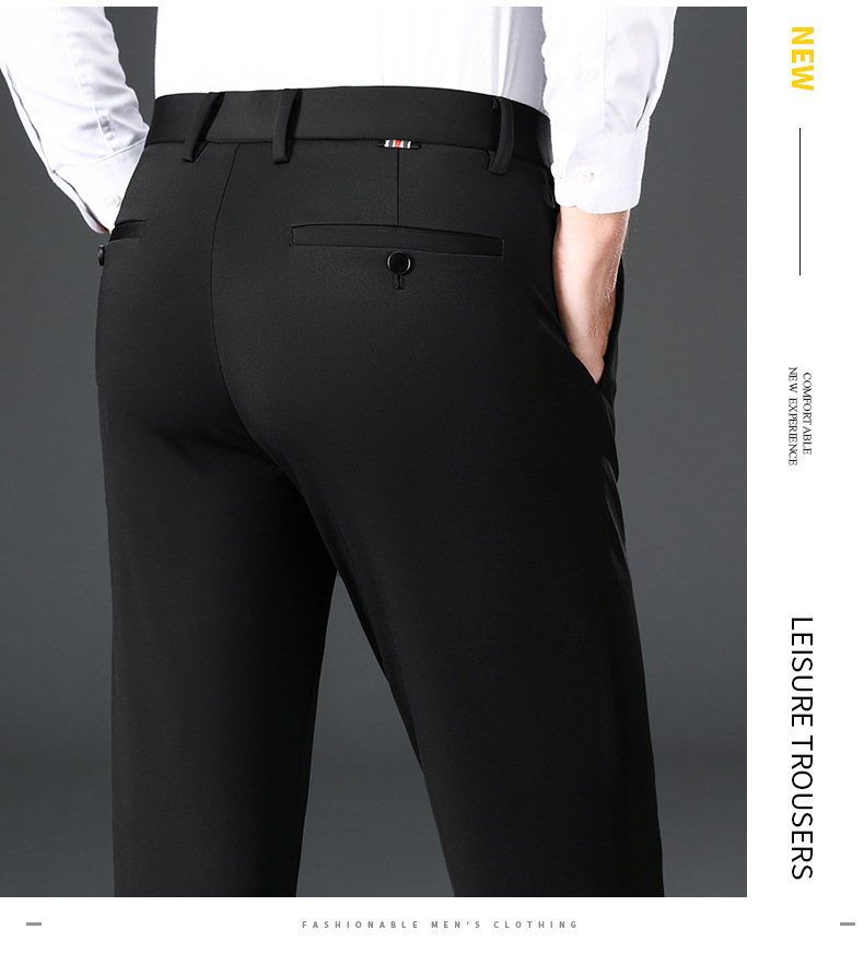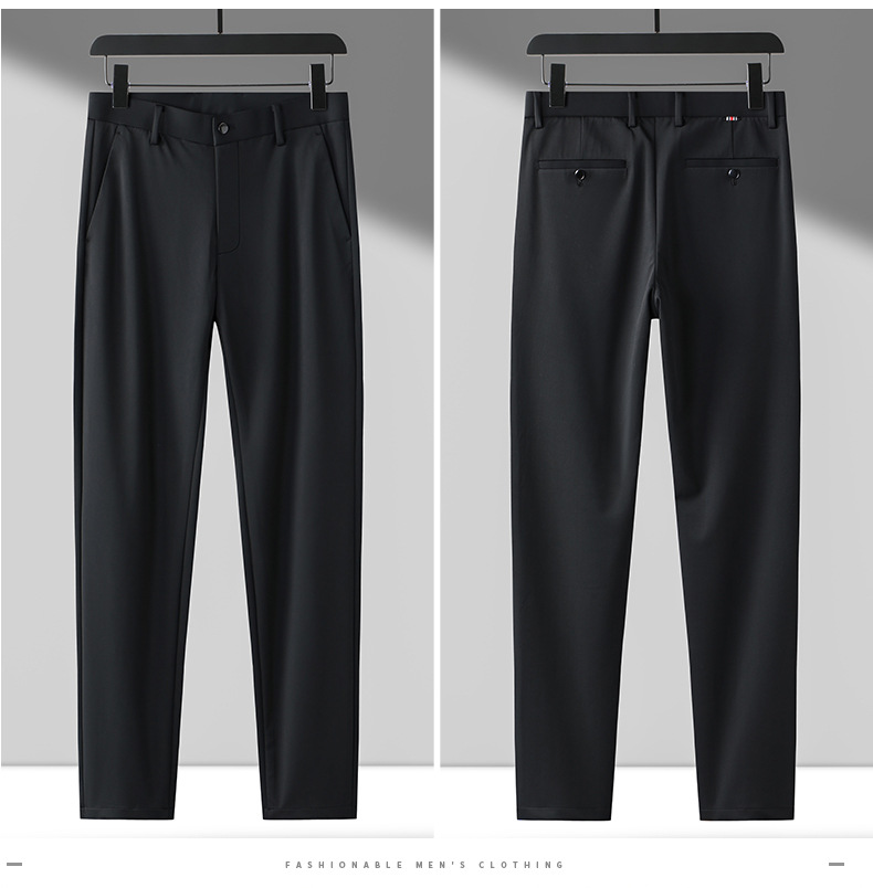 2025 봄과 가을 새로운 아이스 실크 탄성 남성 캐주얼 바지 중년 비즈니스 패션 올 매치 스트레이트 바지 남성 바지스토어 가기