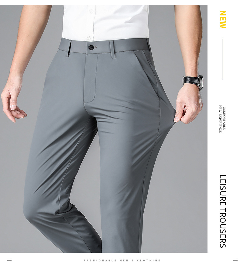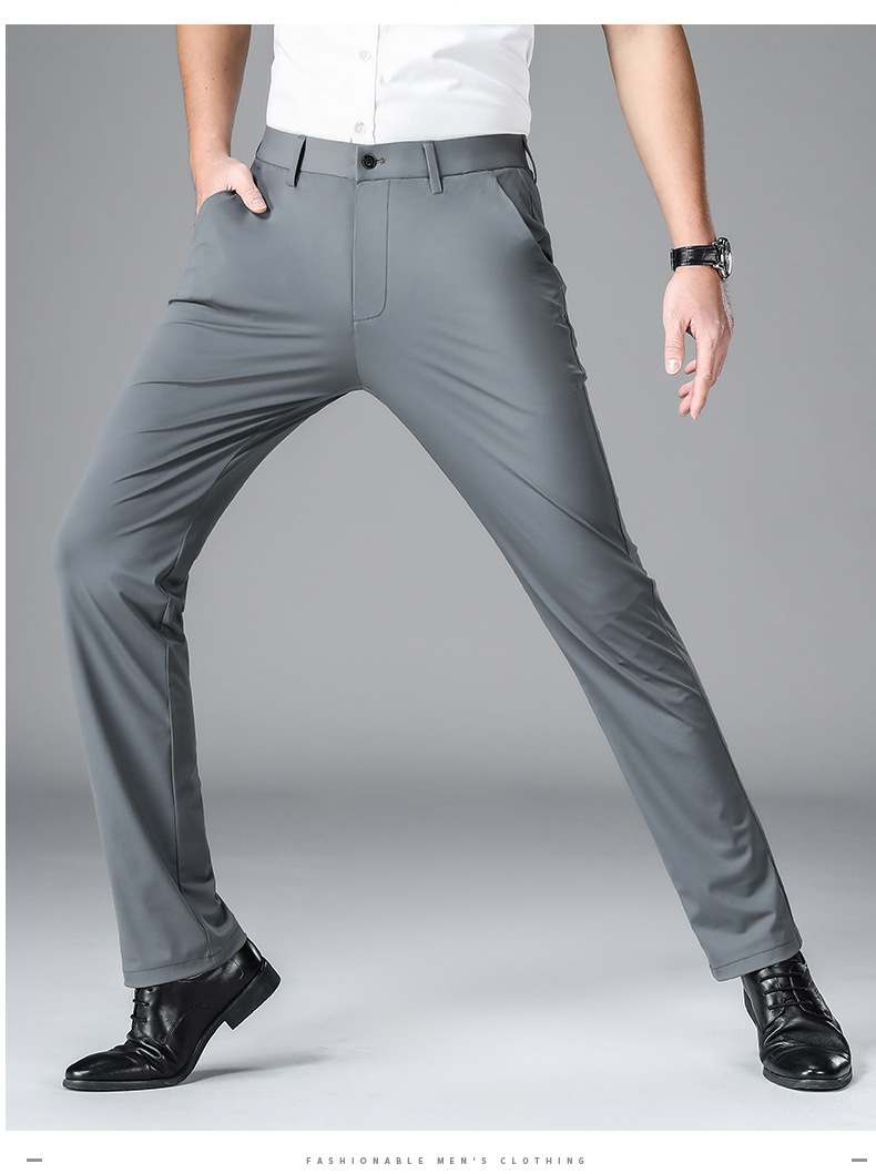 2025 봄과 가을 새로운 아이스 실크 탄성 남성 캐주얼 바지 중년 비즈니스 패션 올 매치 스트레이트 바지 남성 바지