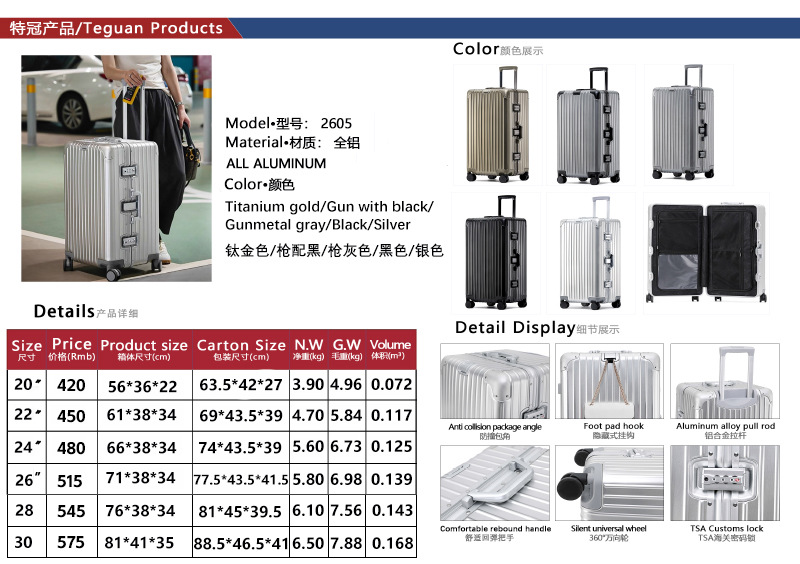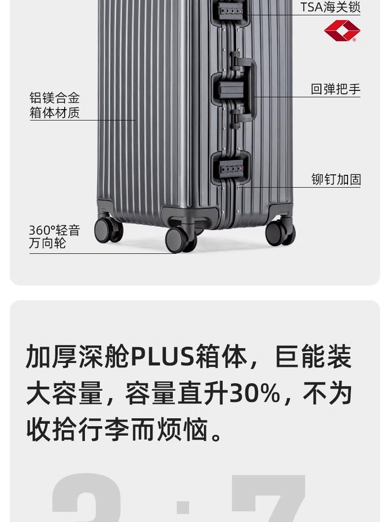 모든 알루미늄 마그네슘 합금 가방은 대용량 30 인치 가방 28 인치 Pinghu 트롤리 케이스 24 인치 암호 상자를 두껍게 만들었습니다.스토어 가기