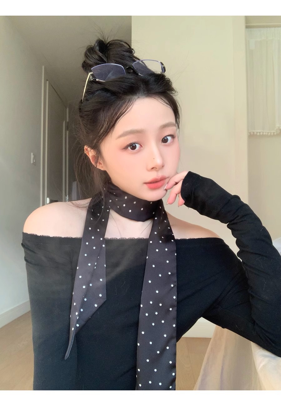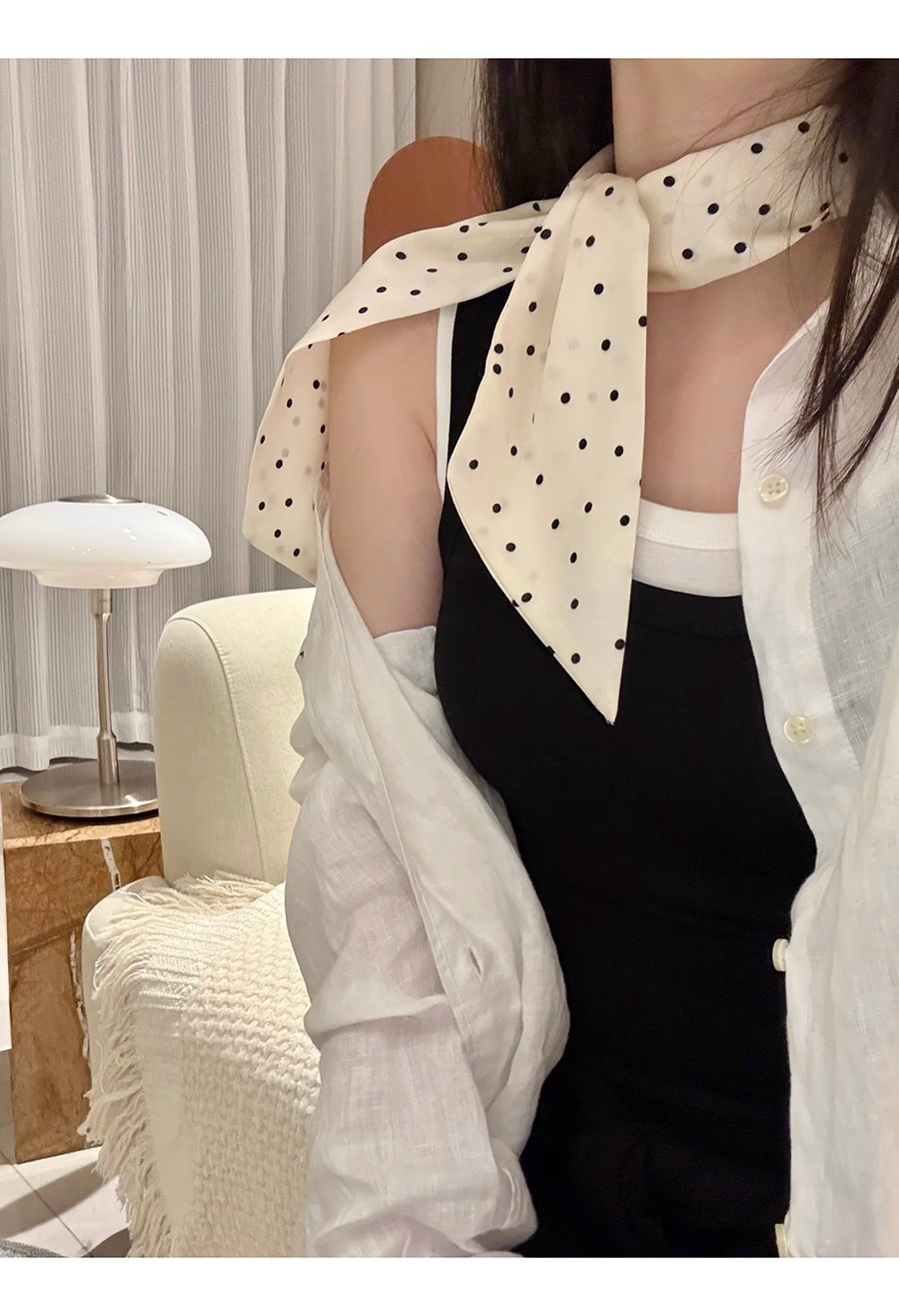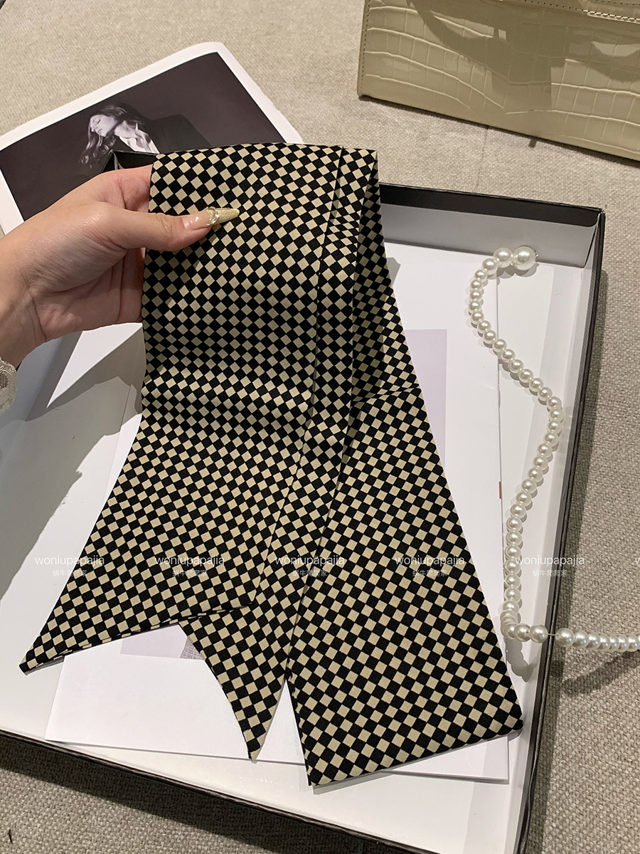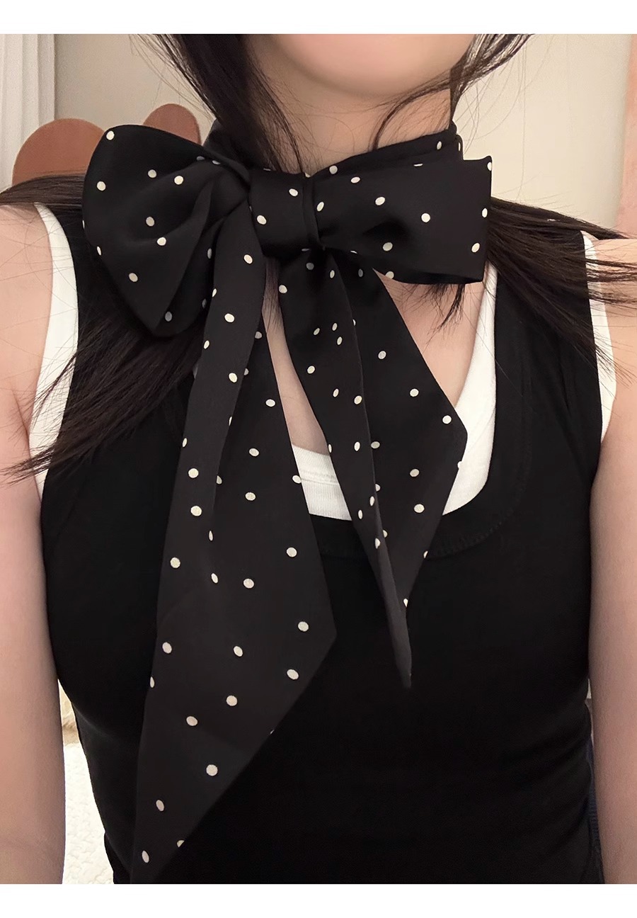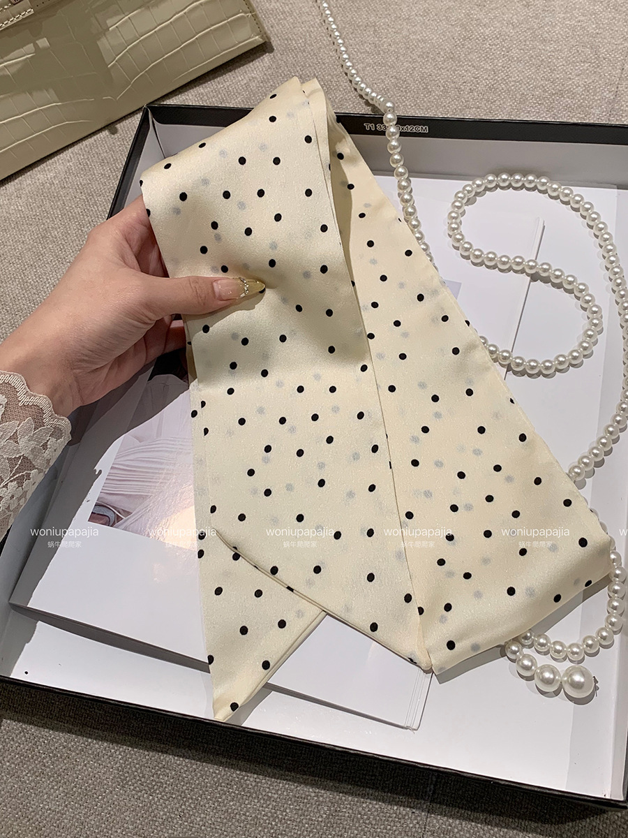 [실크 스카프 작은 우아한!]!] 멀티 웨어러블 폴로-도트 새틴 긴 실크 스카프 여성용 고급 리본 헤어 액세서리