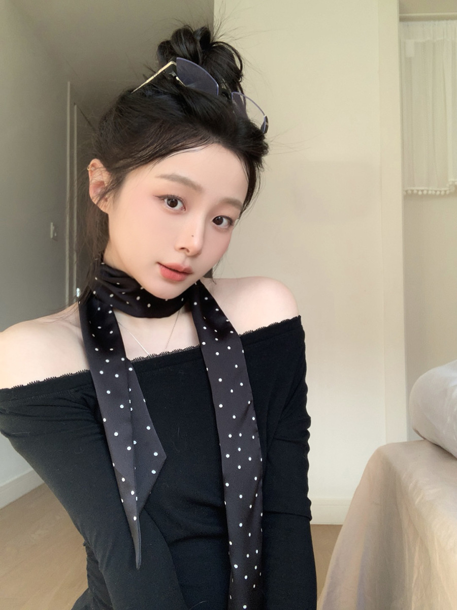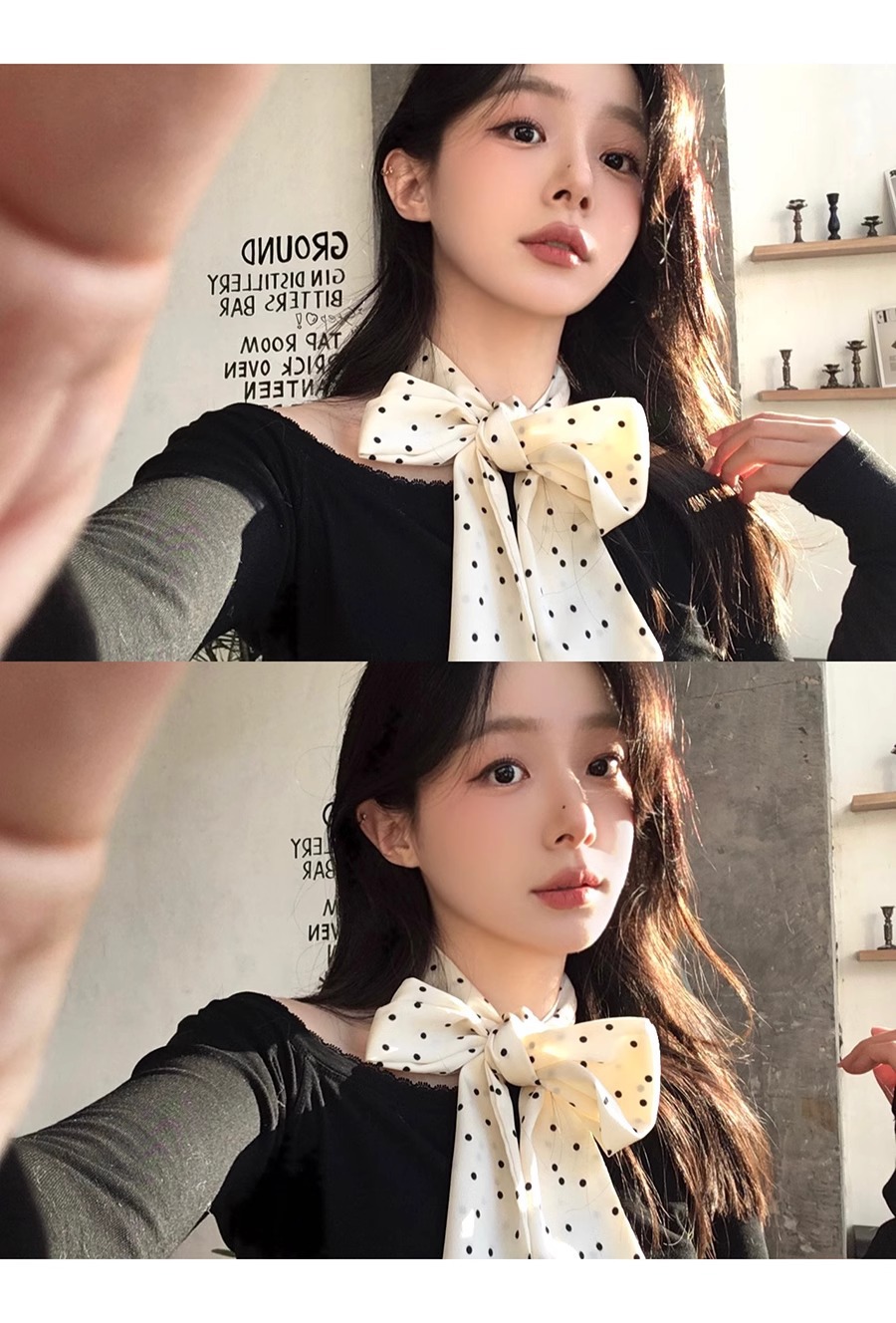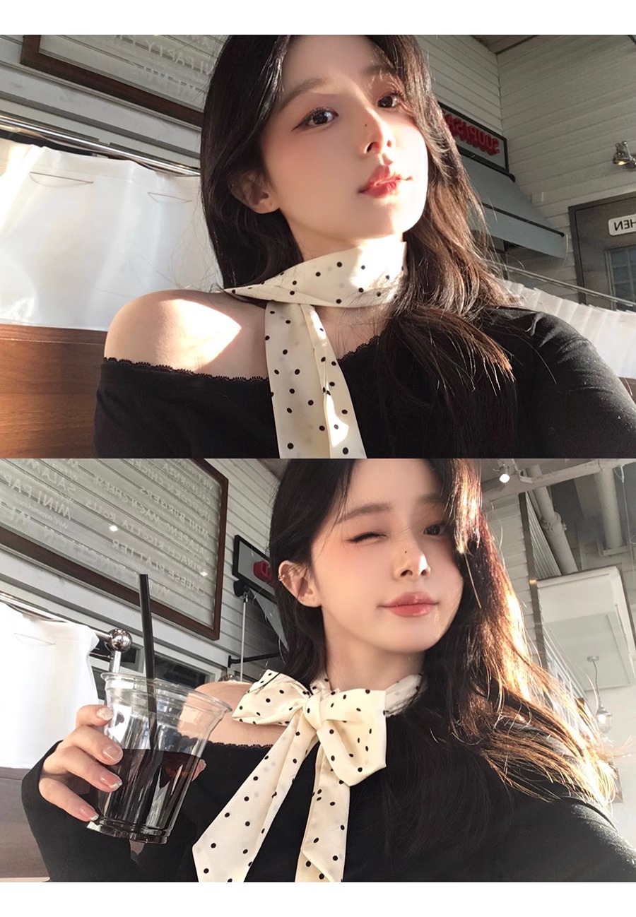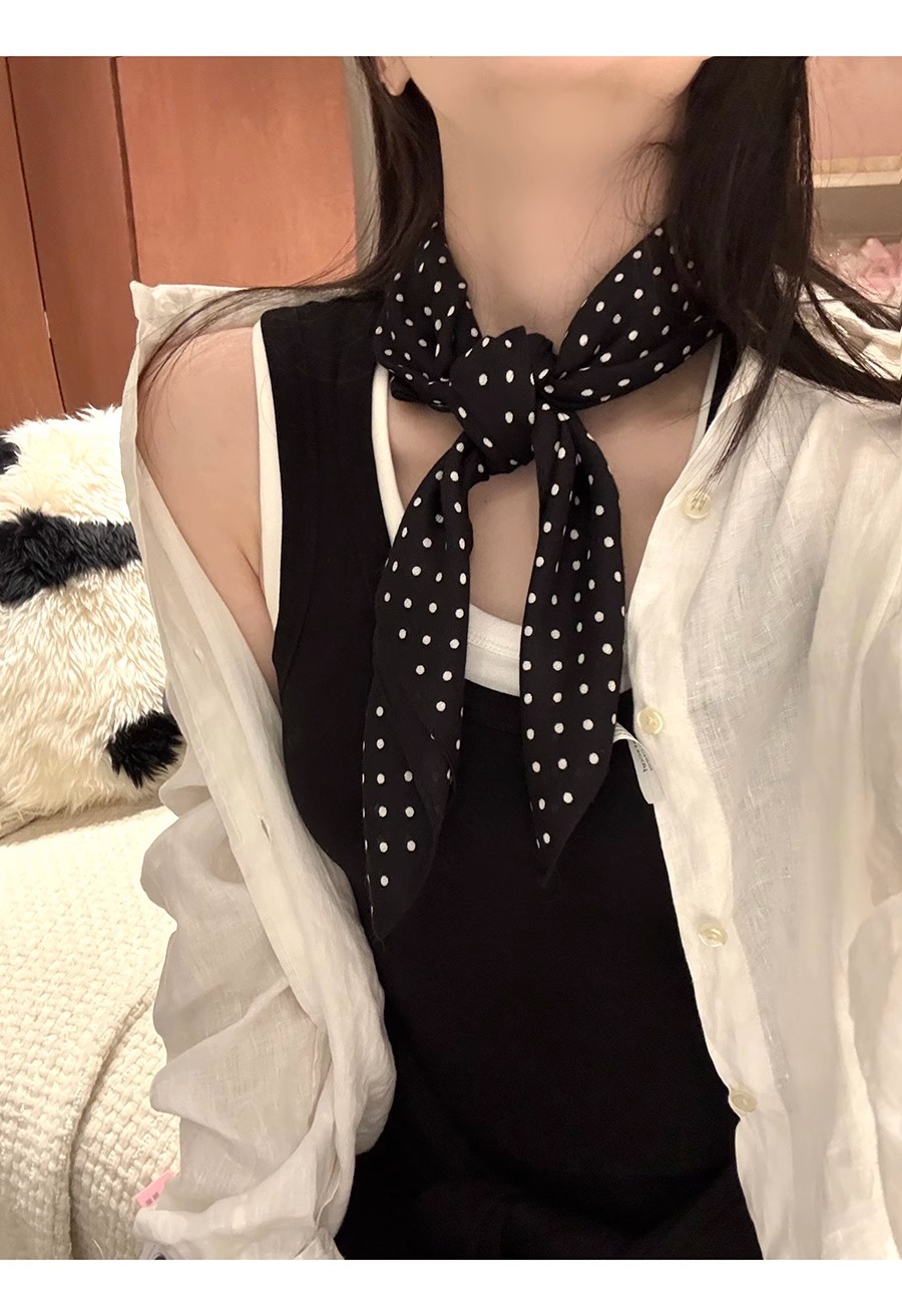 [실크 스카프 작은 우아한!]!] 멀티 웨어러블 폴로-도트 새틴 긴 실크 스카프 여성용 고급 리본 헤어 액세서리