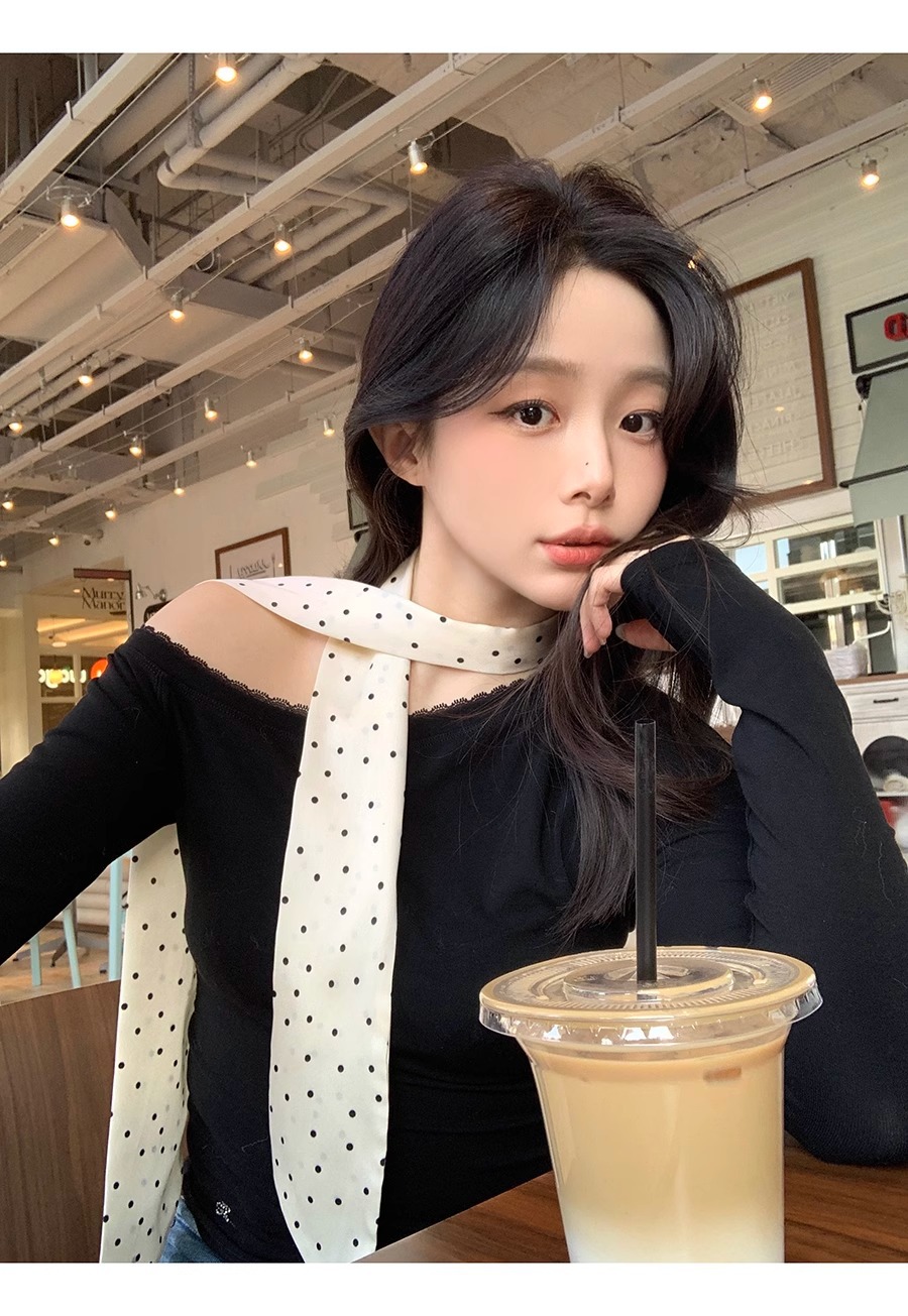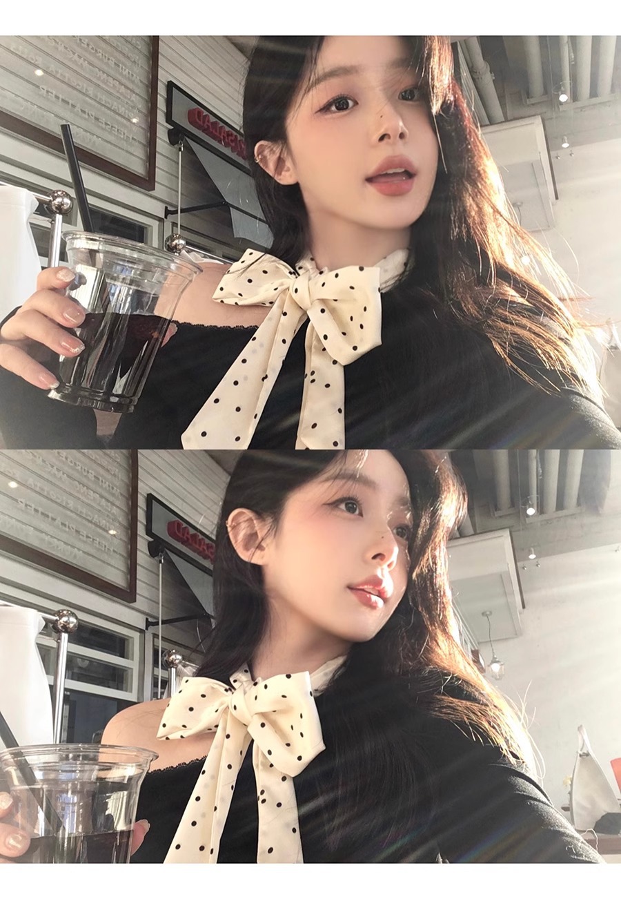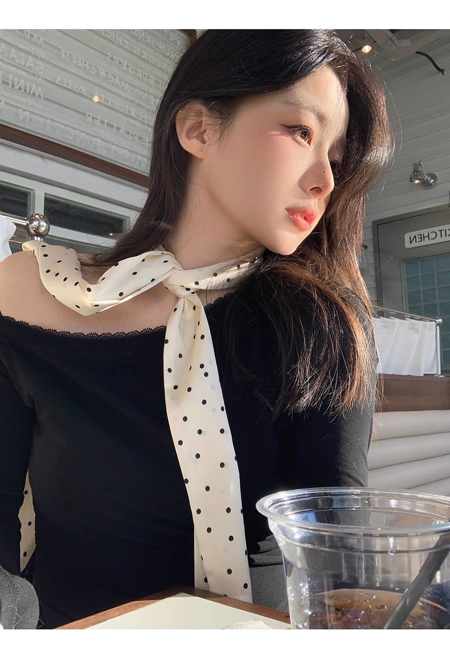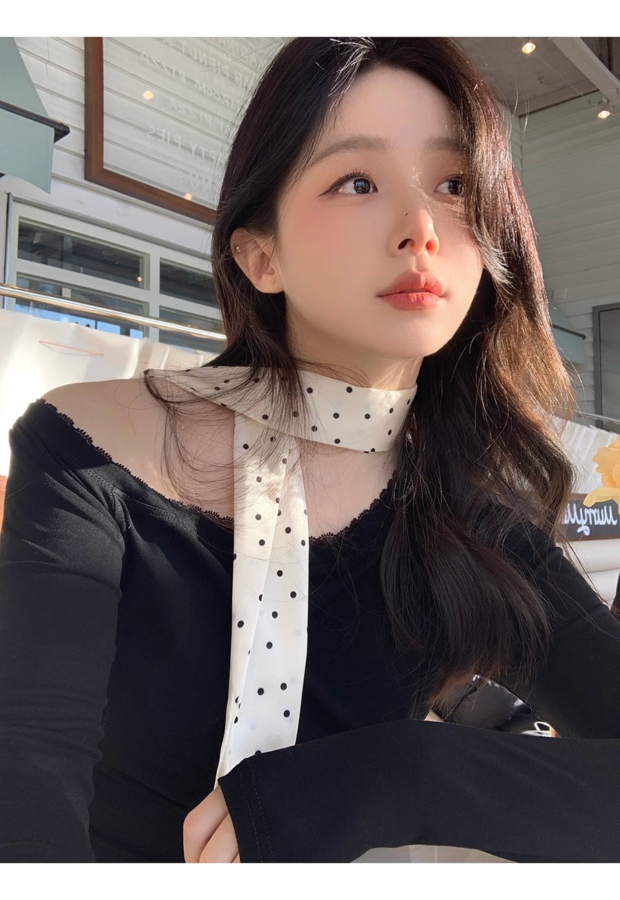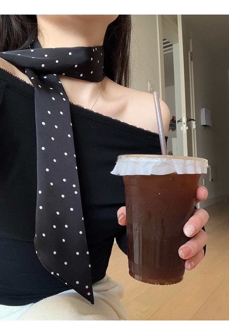 [실크 스카프 작은 우아한!]!] 멀티 웨어러블 폴로-도트 새틴 긴 실크 스카프 여성용 고급 리본 헤어 액세서리