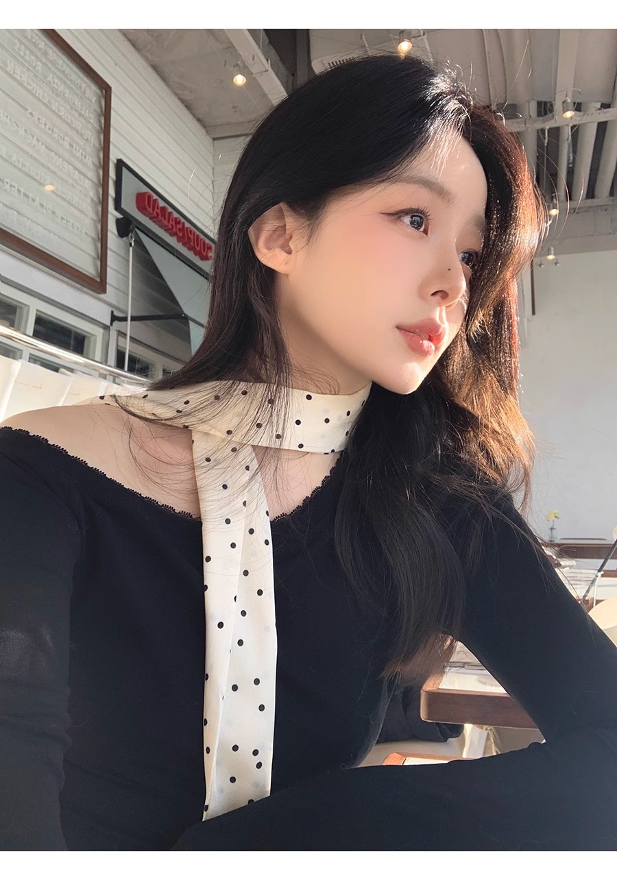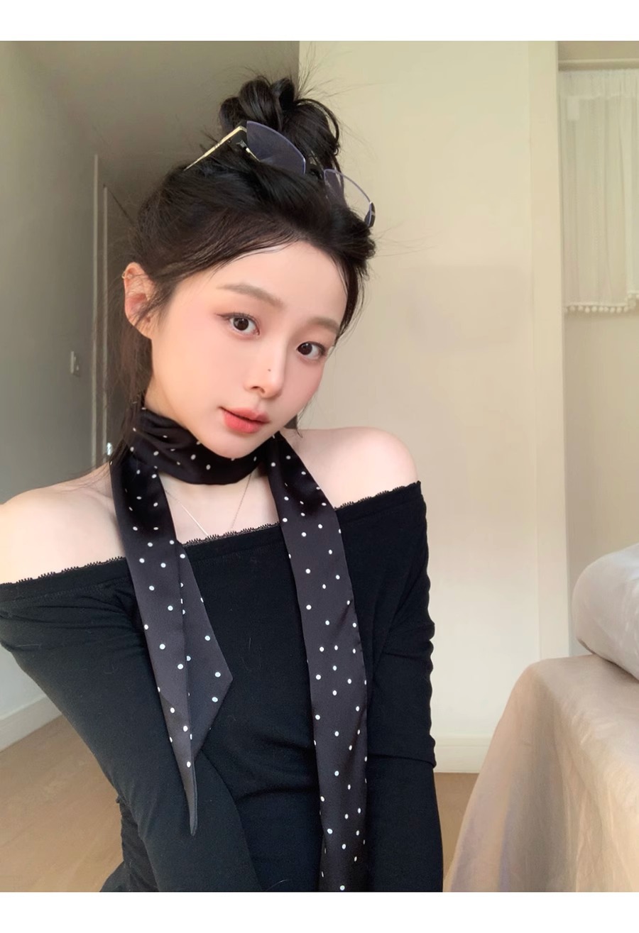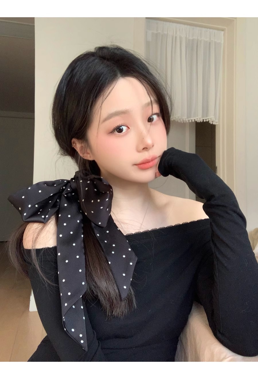 [실크 스카프 작은 우아한!]!] 멀티 웨어러블 폴로-도트 새틴 긴 실크 스카프 여성용 고급 리본 헤어 액세서리스토어 가기