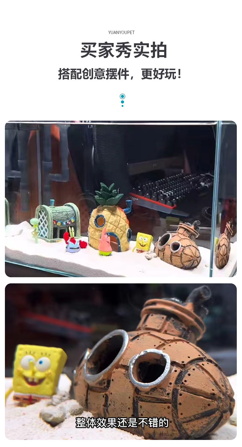 국경을 넘는 수족관 잠수함 장식 스폰지밥 만화 대형 장식품 파인애플 피난처 수족관 장식 잠수함스토어 가기