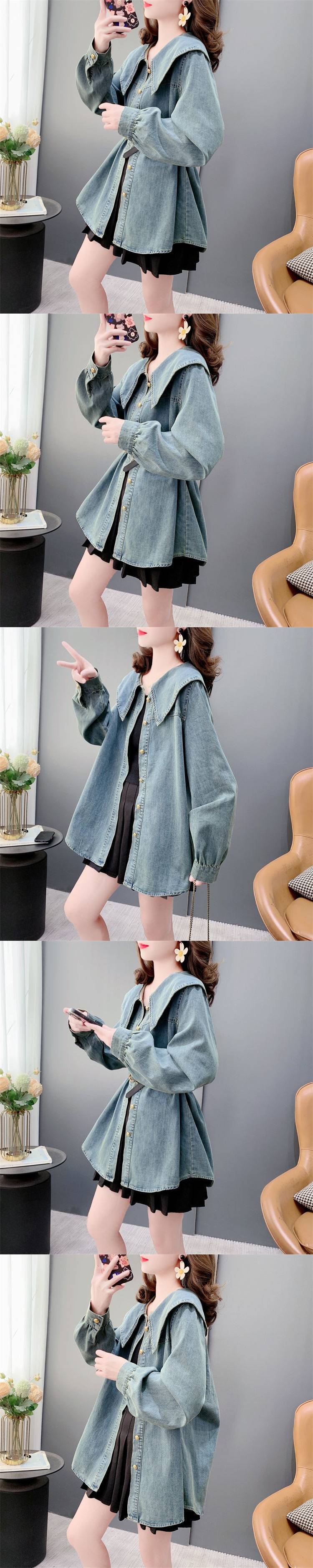 한국 스타일 복고풍 달콤한 인형 칼라 데님 셔츠 여성의 봄 2025 새로운 스타일 연령 감소 작은 탑스토어 가기