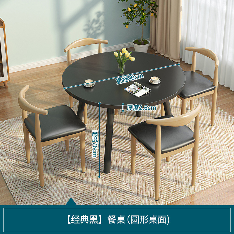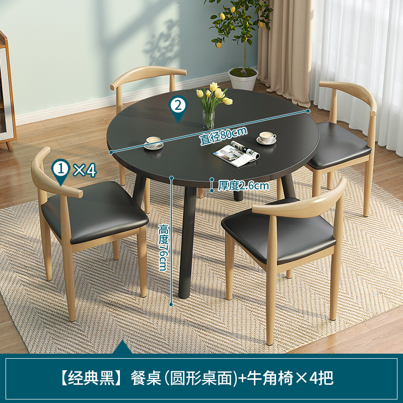 • @#2.6 두께 데스크탑, 직경 80, 높이 76, 다리 4개, 노블 블랙 + 혼 의자 4개