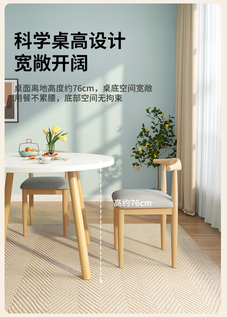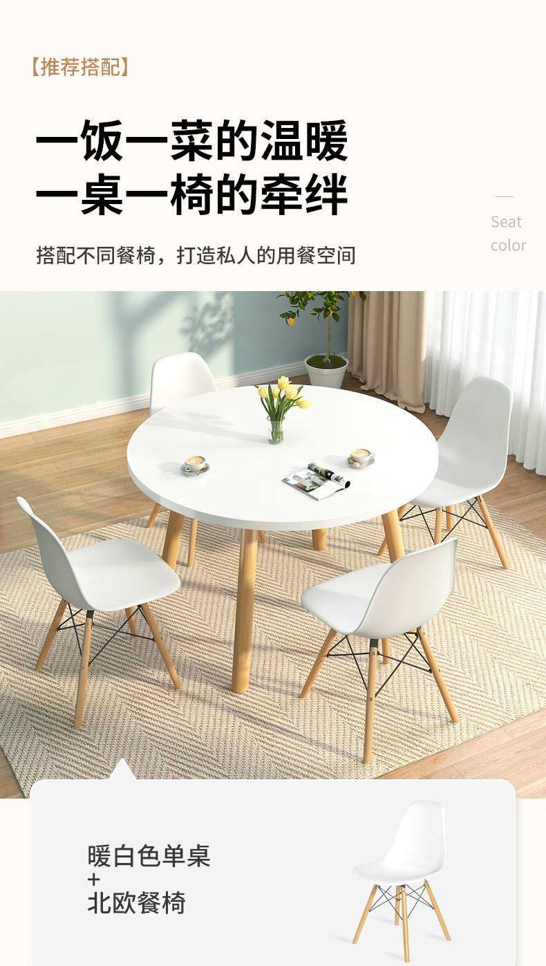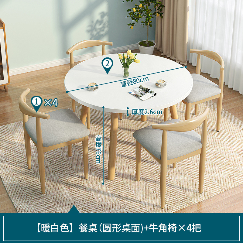 • @#2.6 두께 테이블 상판, 직경 80, 높이 76, 다리 4개, 따뜻한 흰색 + 혼 의자 4개