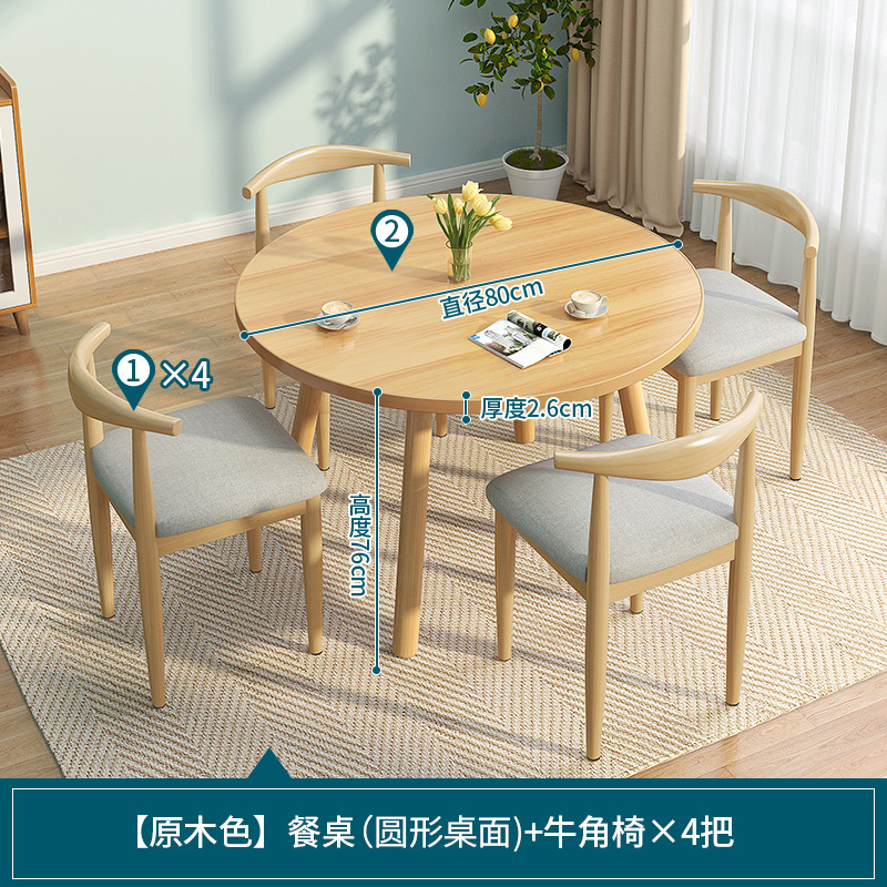• @#2.6 두께 데스크탑 직경 80 높이 76 다리 4개 나무 색상 + 혼 의자 4개