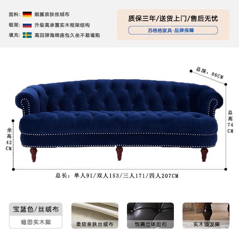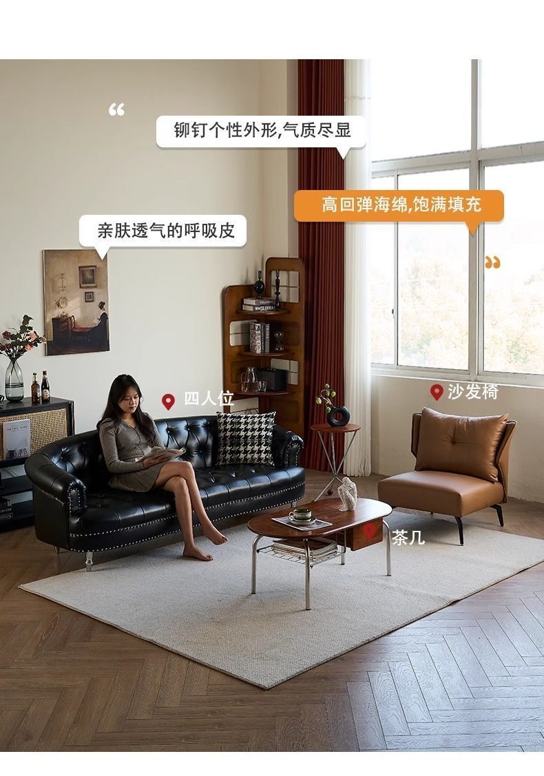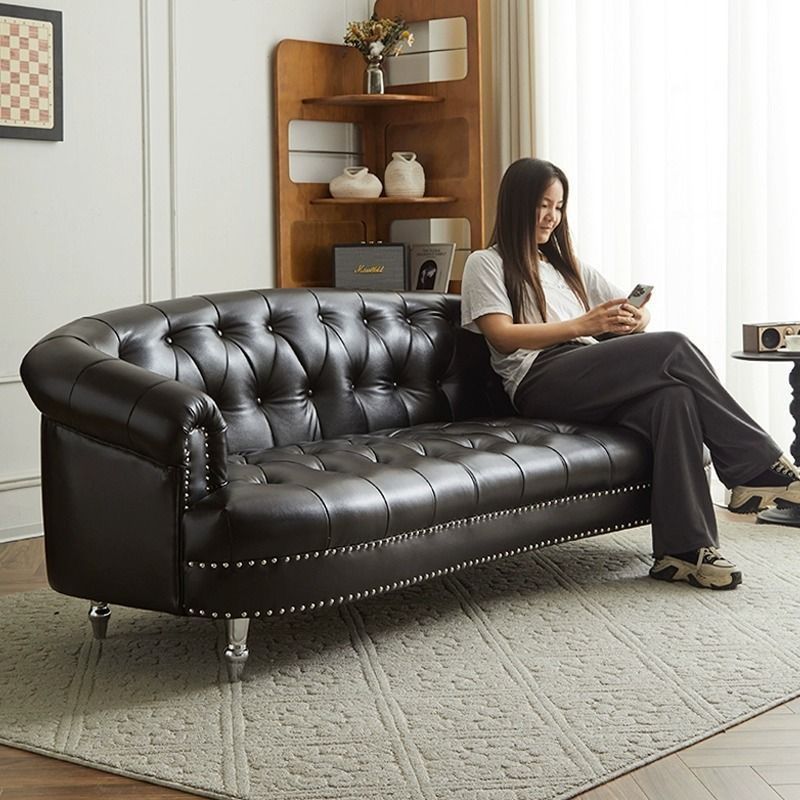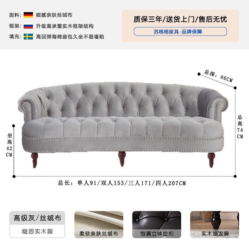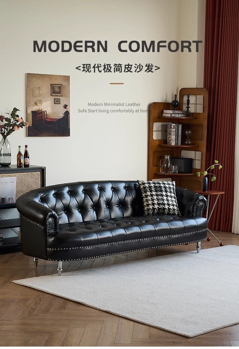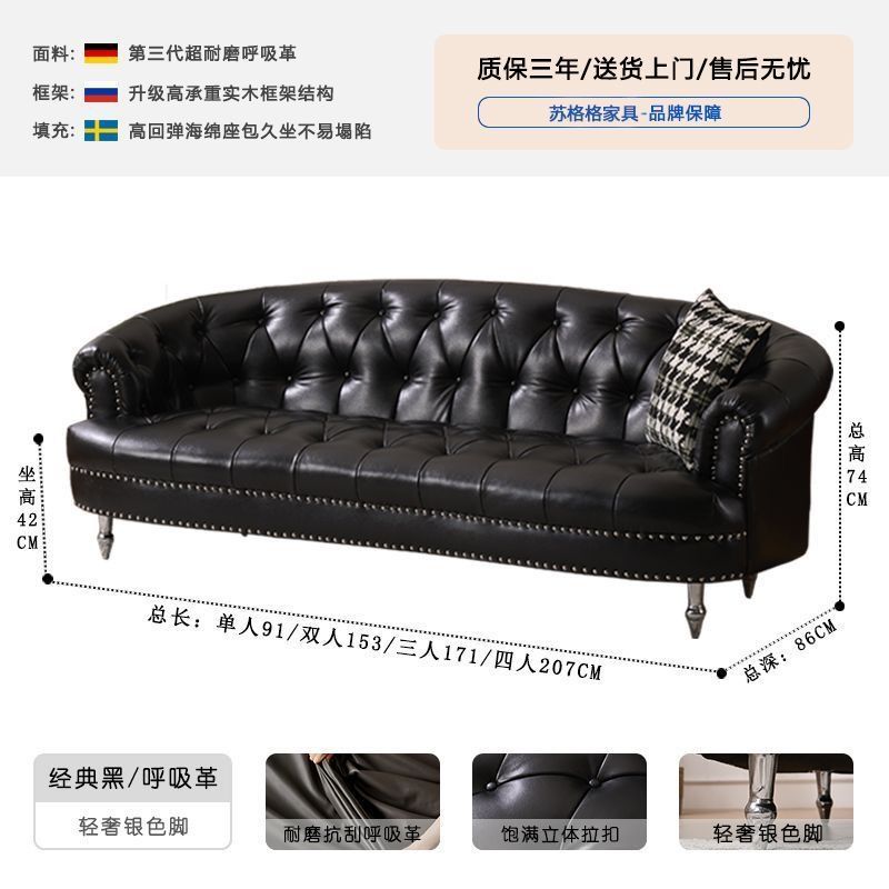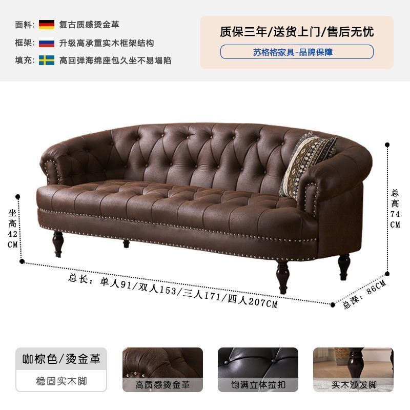 아메리칸 스타일 레트로 가죽 소파 거실 침실 의류 매장 뷰티 살롱 하이 엔드 더블 3 인용 스트레이트 버클 소파스토어 가기