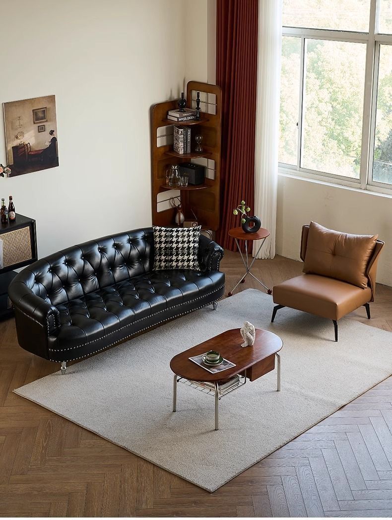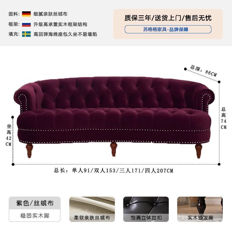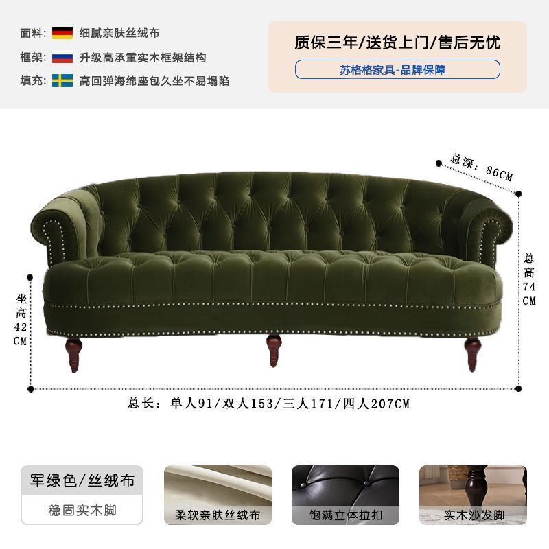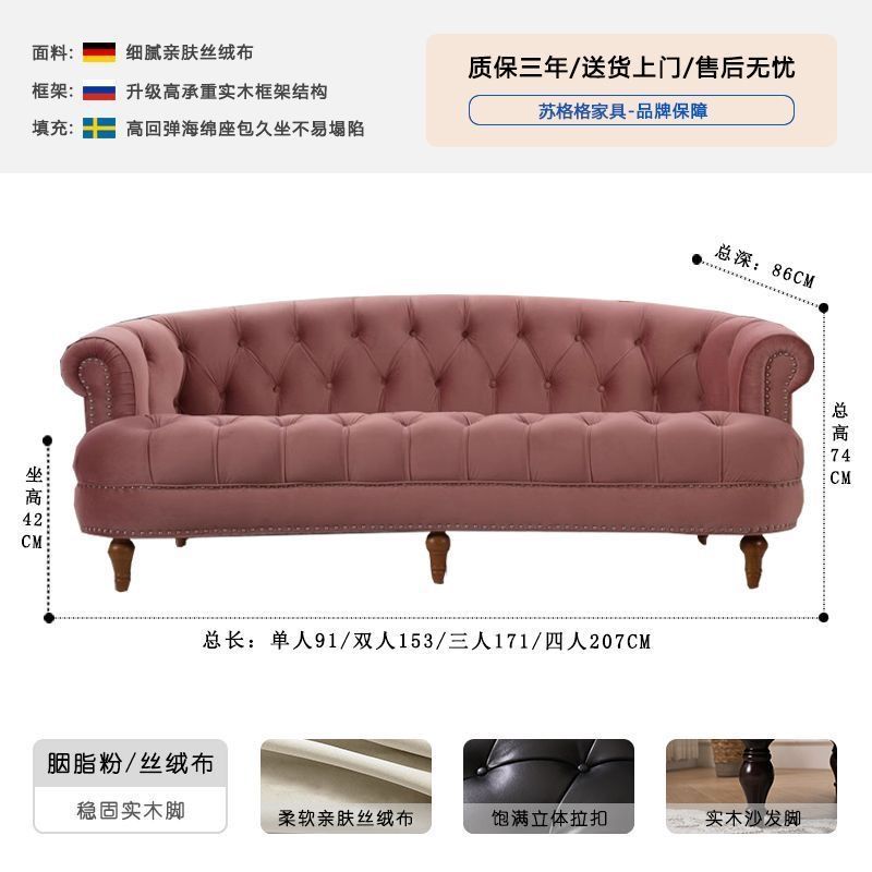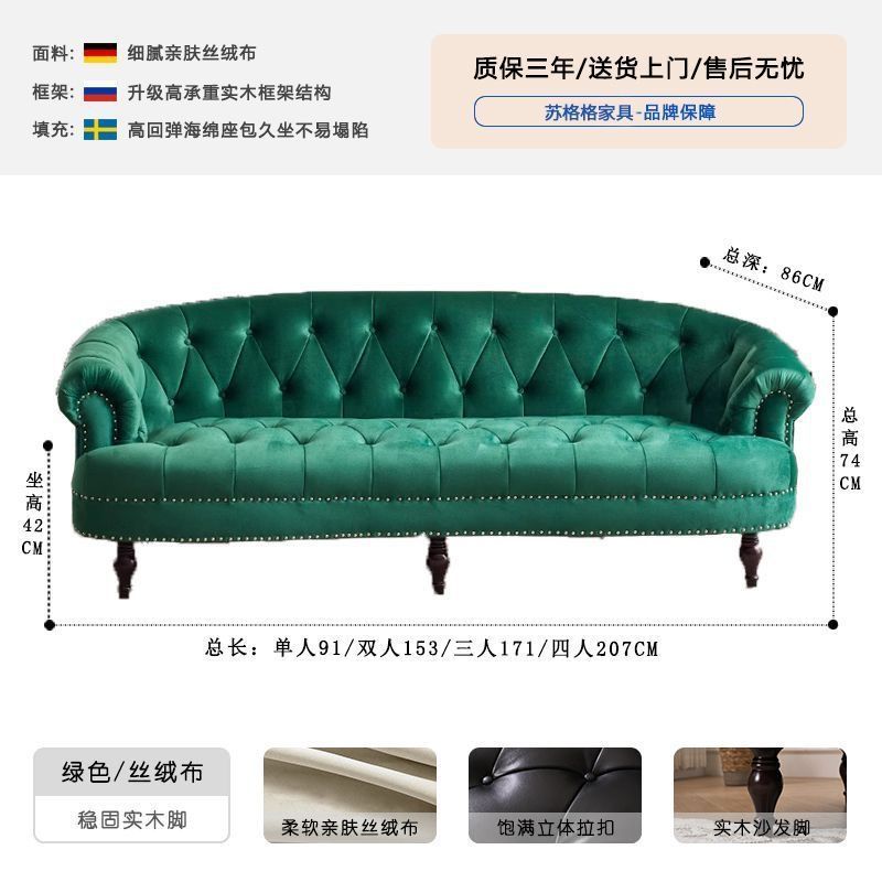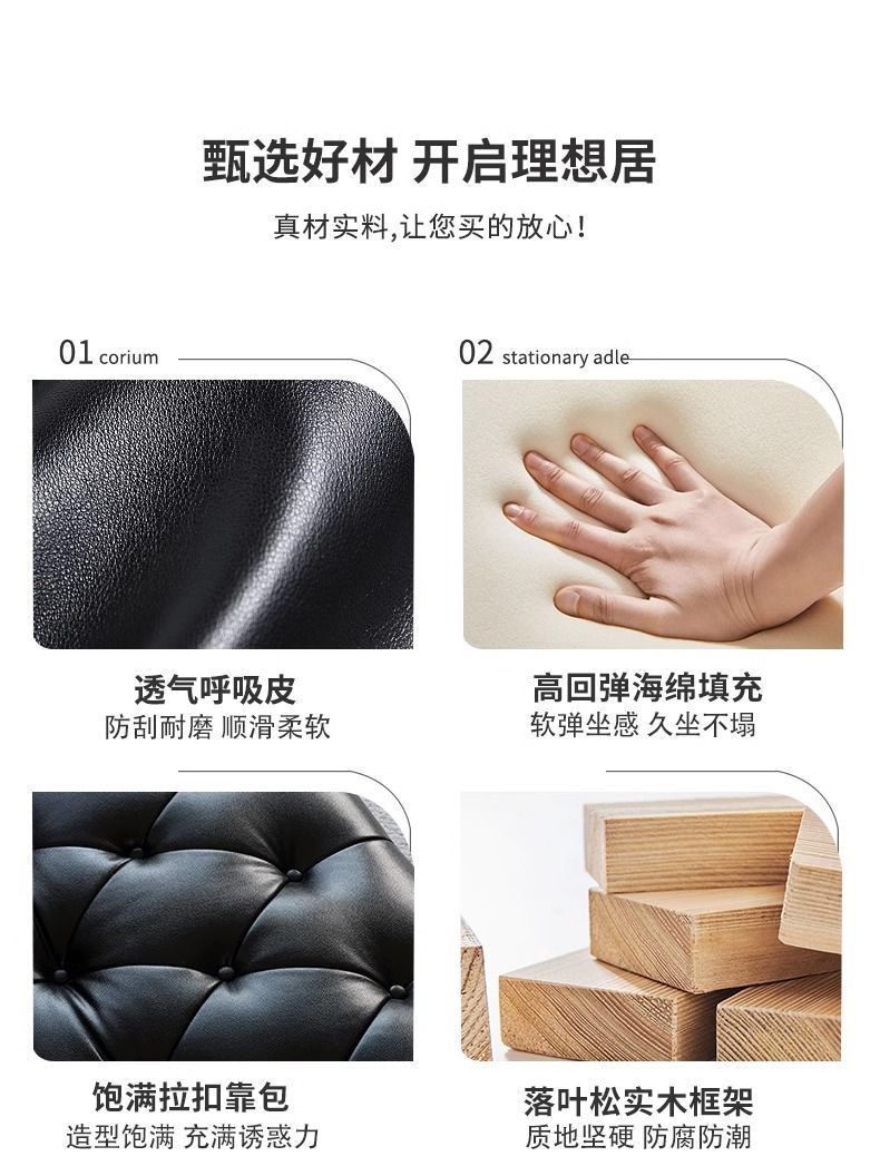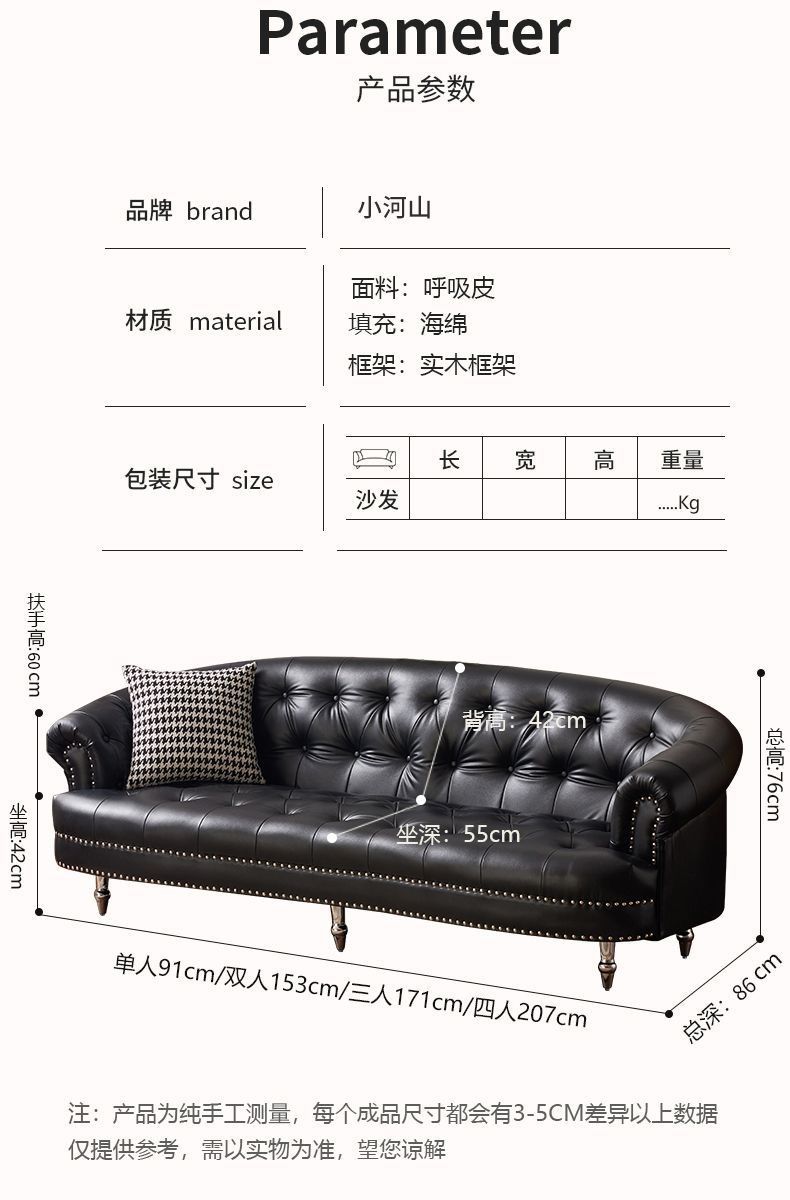 아메리칸 스타일 레트로 가죽 소파 거실 침실 의류 매장 뷰티 살롱 하이 엔드 더블 3 인용 스트레이트 버클 소파스토어 가기