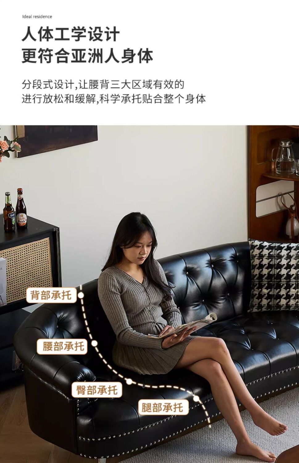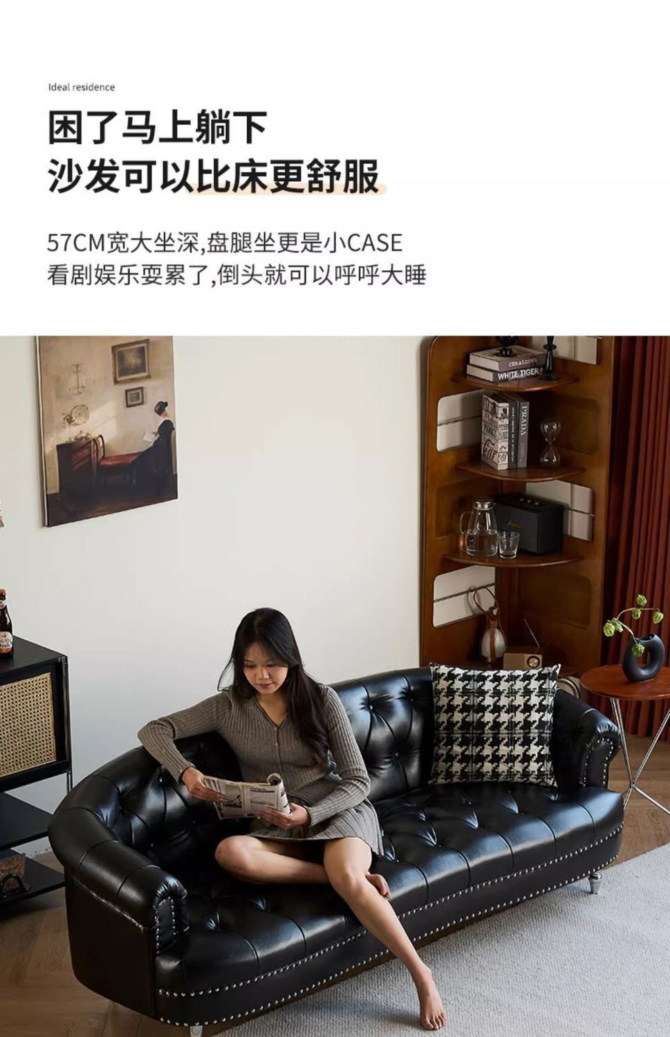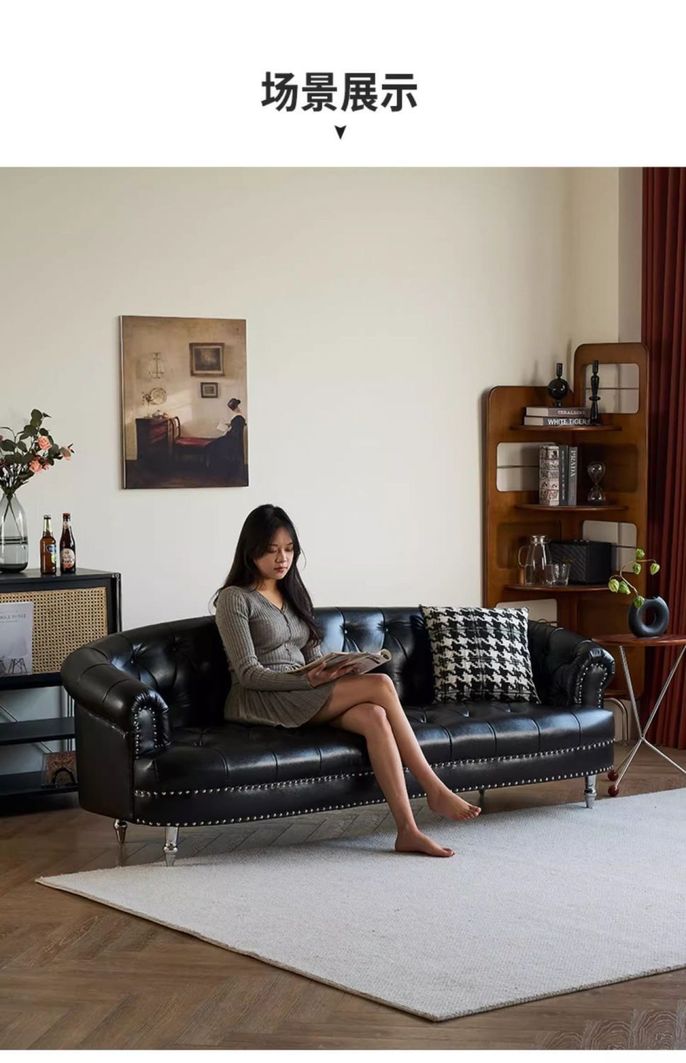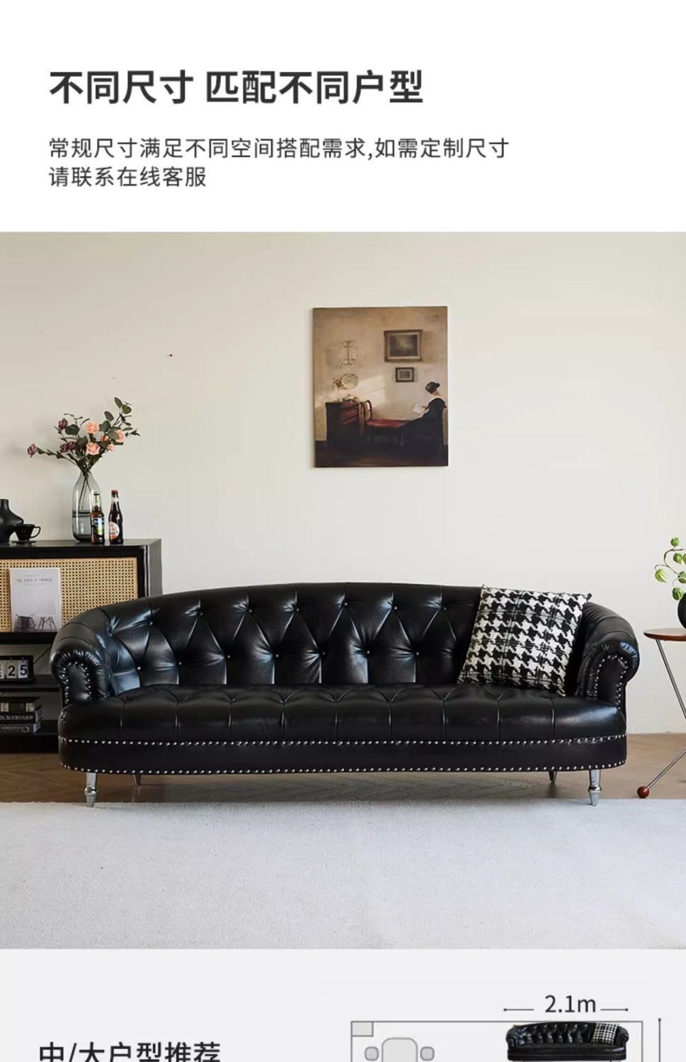 아메리칸 스타일 레트로 가죽 소파 거실 침실 의류 매장 뷰티 살롱 하이 엔드 더블 3 인용 스트레이트 버클 소파스토어 가기