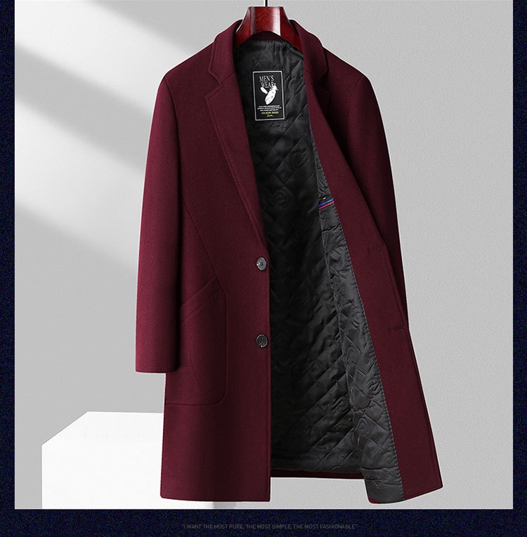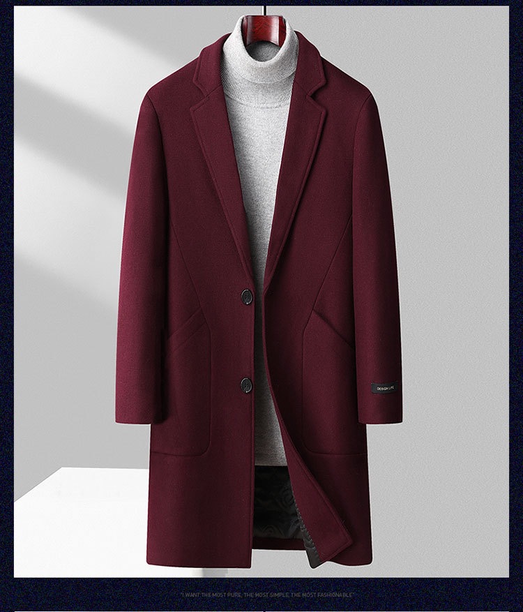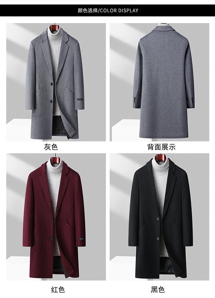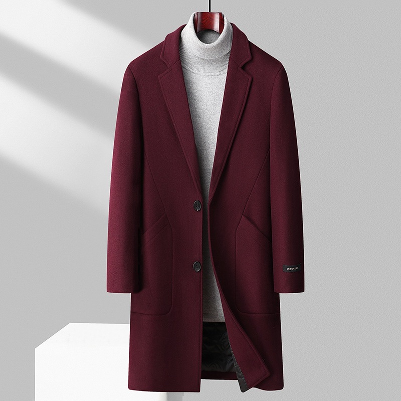 모직 양면 코트 남자 아빠 미드 롱 두꺼운 윈드 브레이커 비즈니스 모직 옷깃 코트 새해 레드 코트스토어 가기