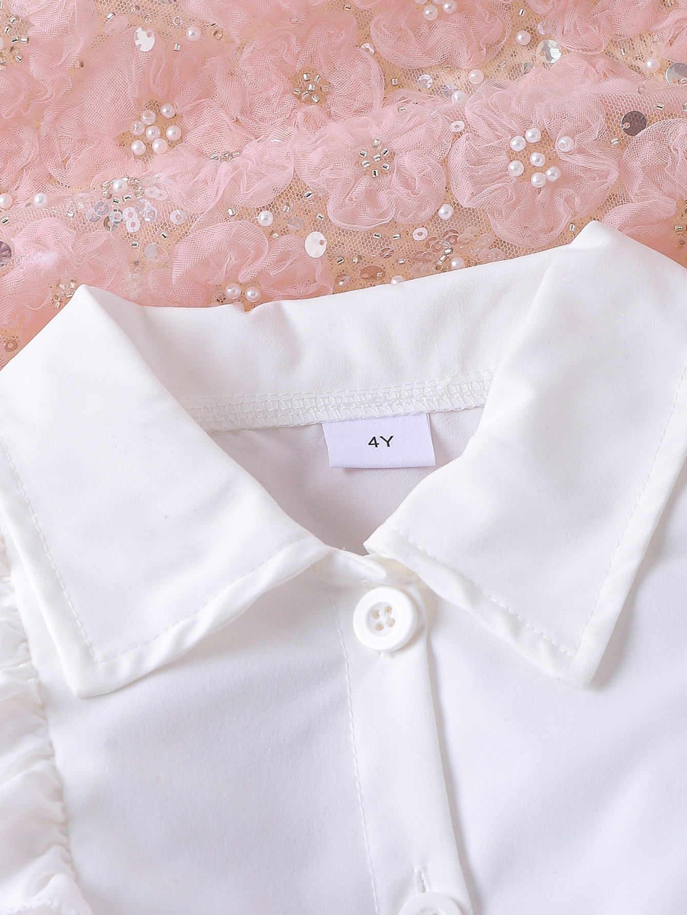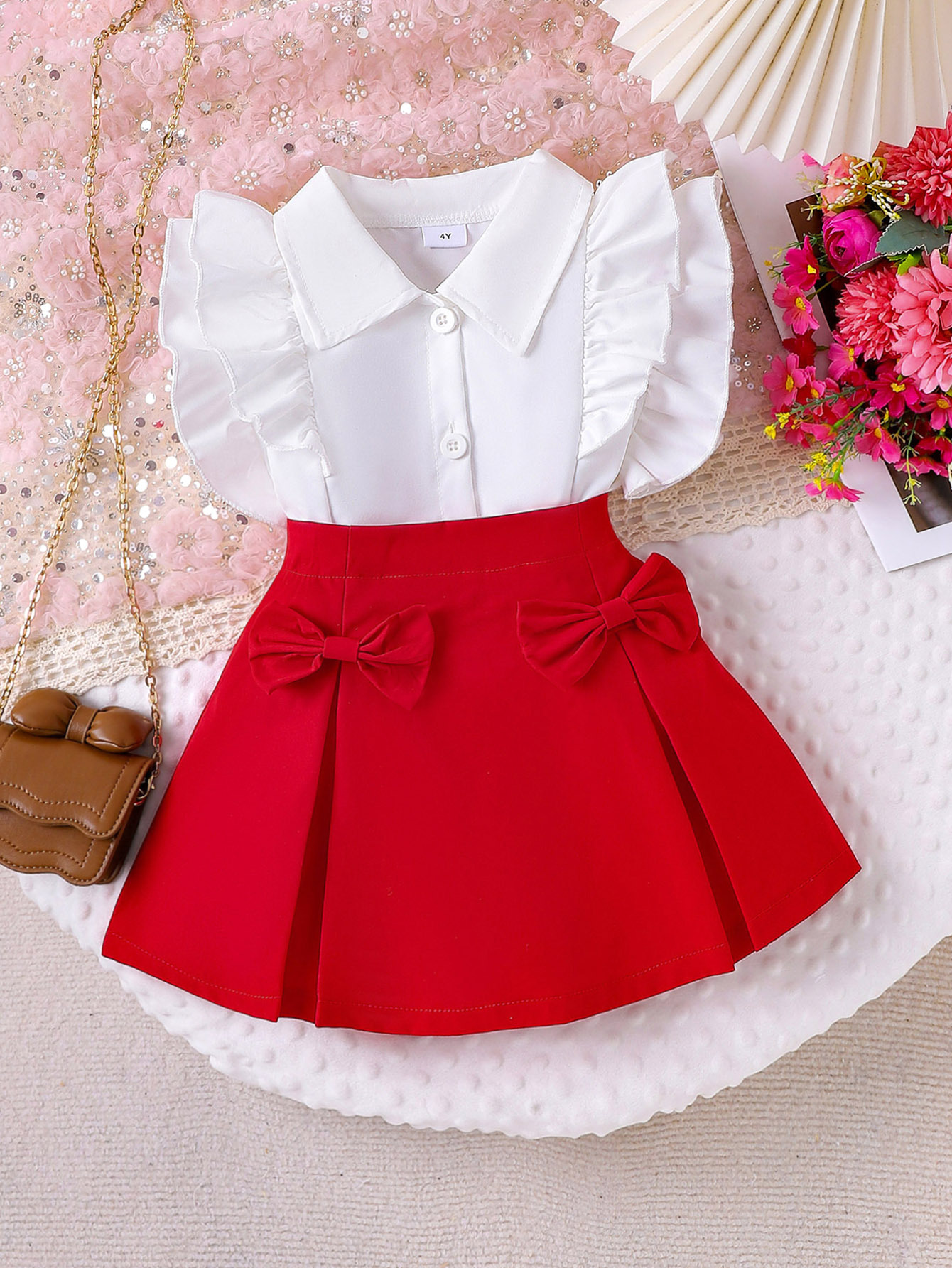 국경 간 유럽과 미국 여름 어린이 옷깃 레이스 소매 셔츠 나비 스커트 투피스 세트를 세트 새로운 소녀