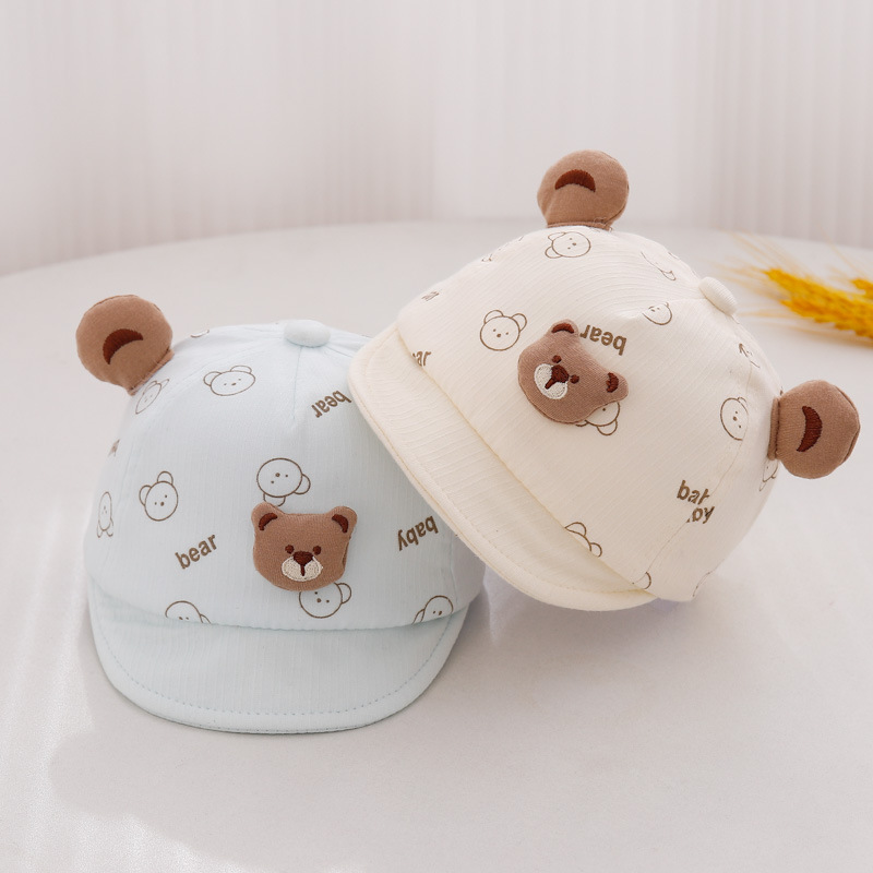 아기 부드러운 바위 봄 얇은 아기 모자 귀여운 곰 봄 순수한 면 작은 달 아기 태양 모자