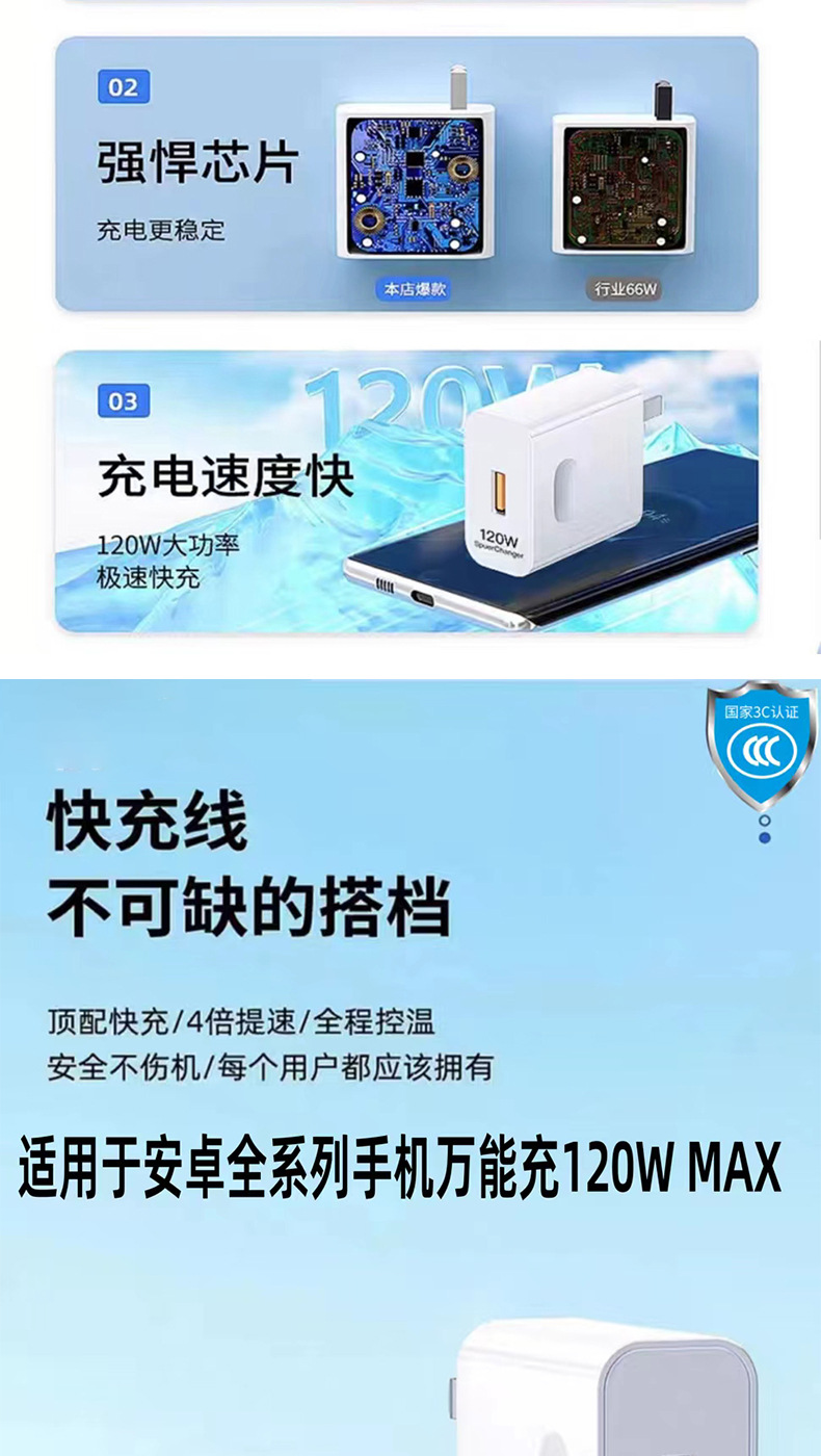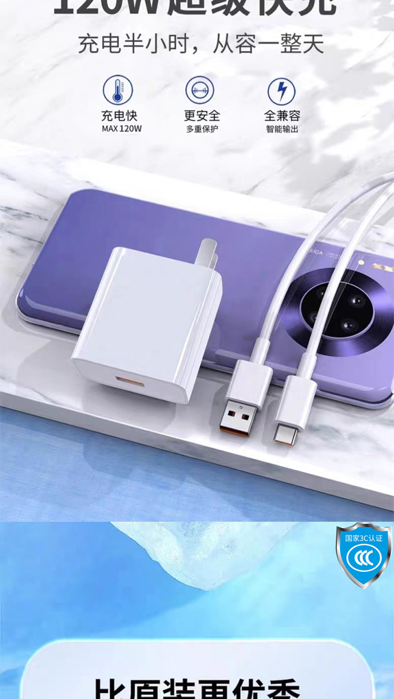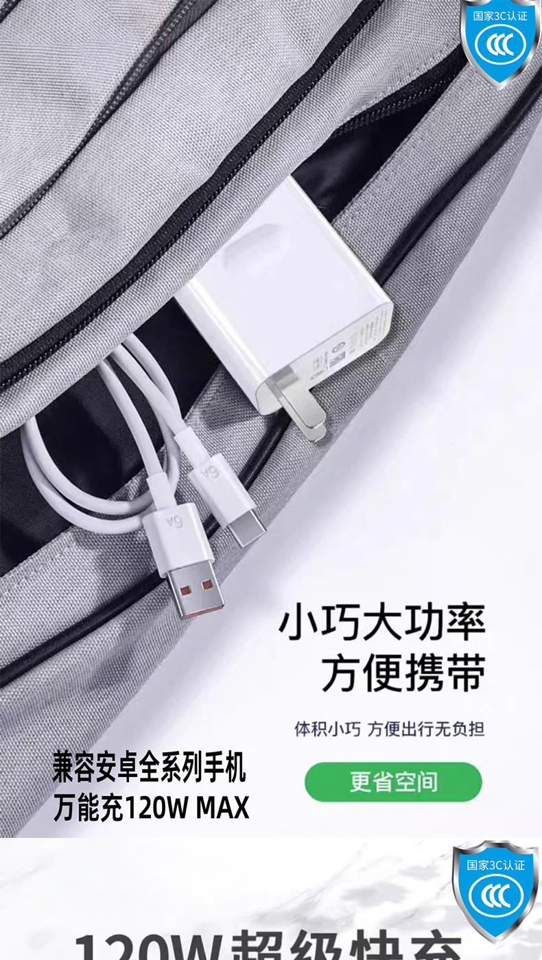 120W 초고속 충전은 화웨이 샤오미 OPPO 안드로이드 휴대 전화 완전 호환 충전 헤드 세트 3C 인증에 적합합니다.스토어 가기