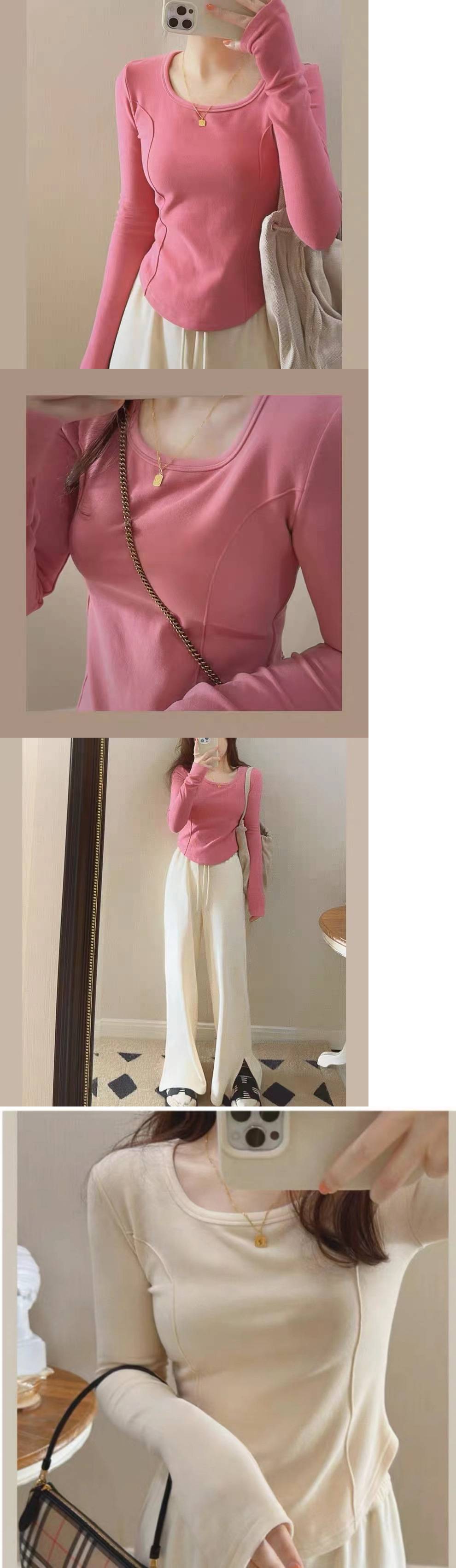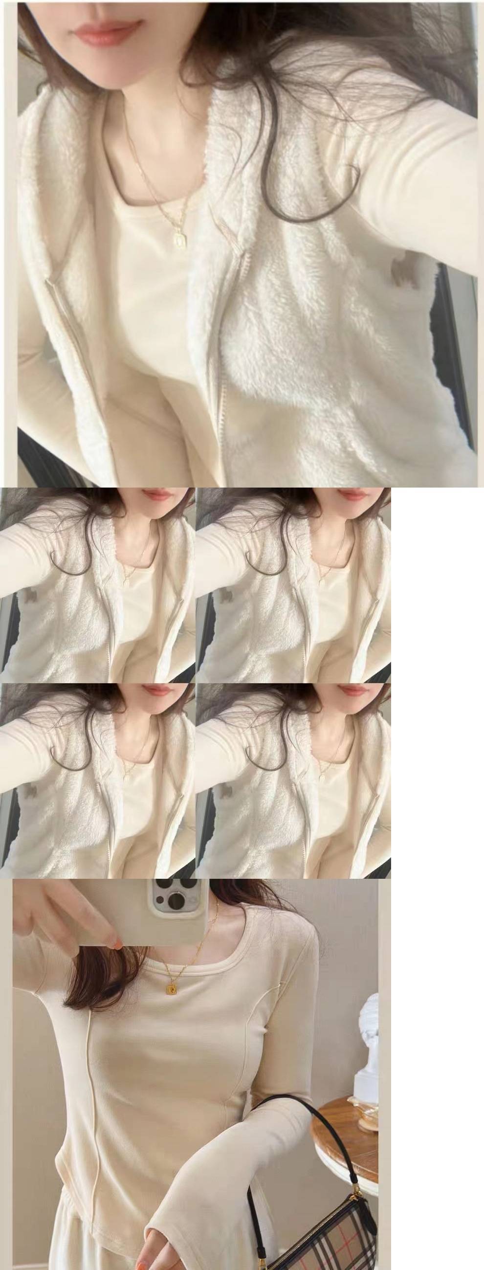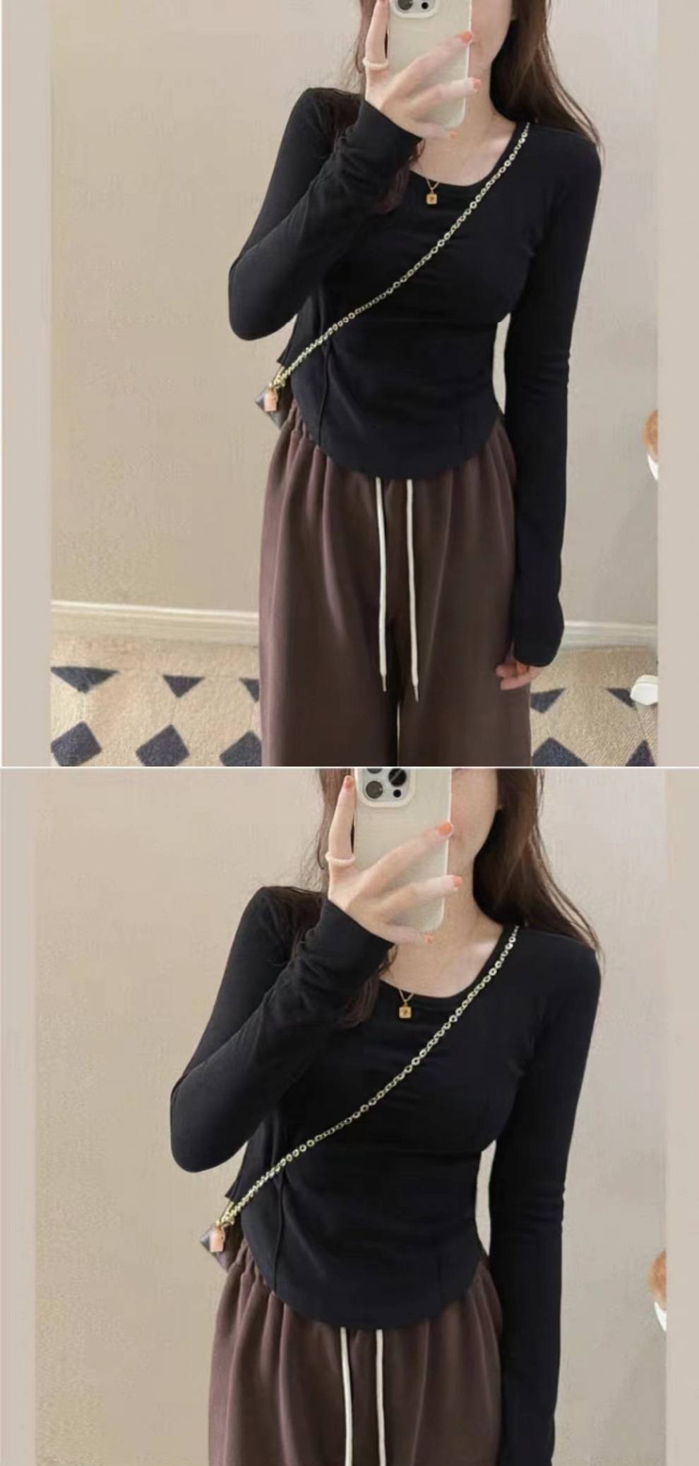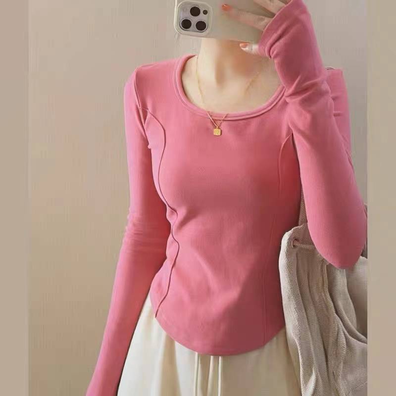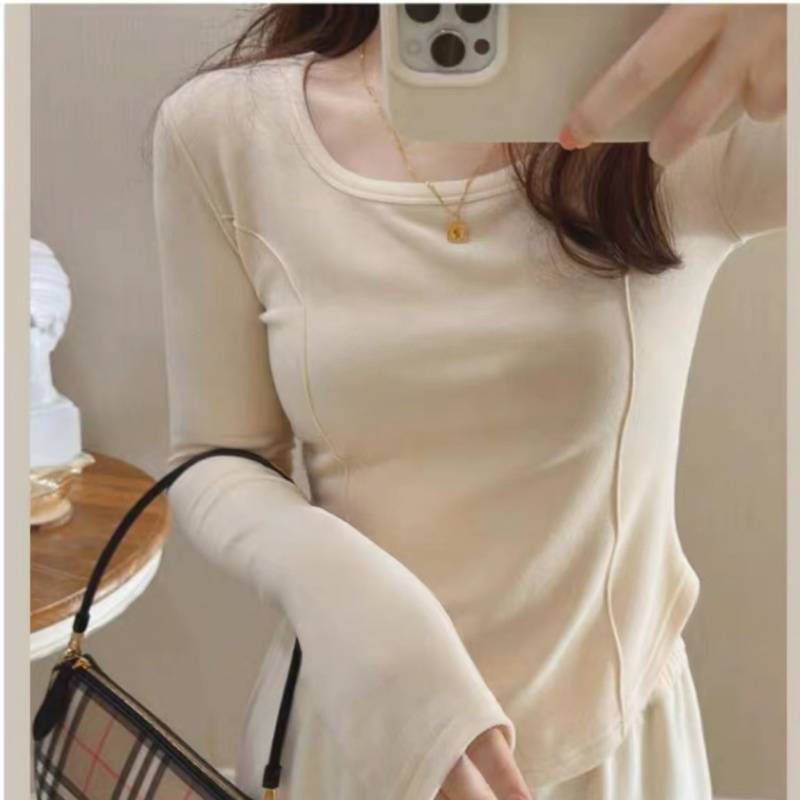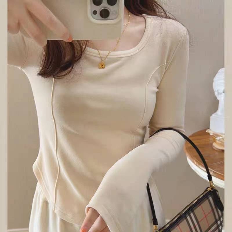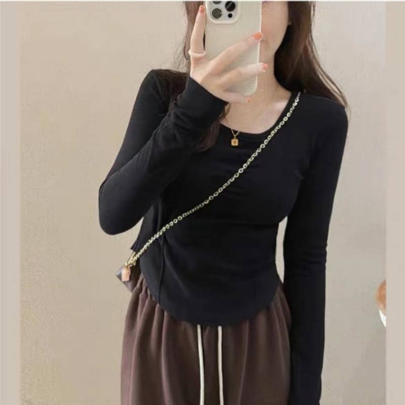 가을 2025 년 새 어본 디자인 긴팔 티셔츠 여성베이스 셔츠 스퀘어 칼라 슬림핏 내부 쇼트탑스토어 가기