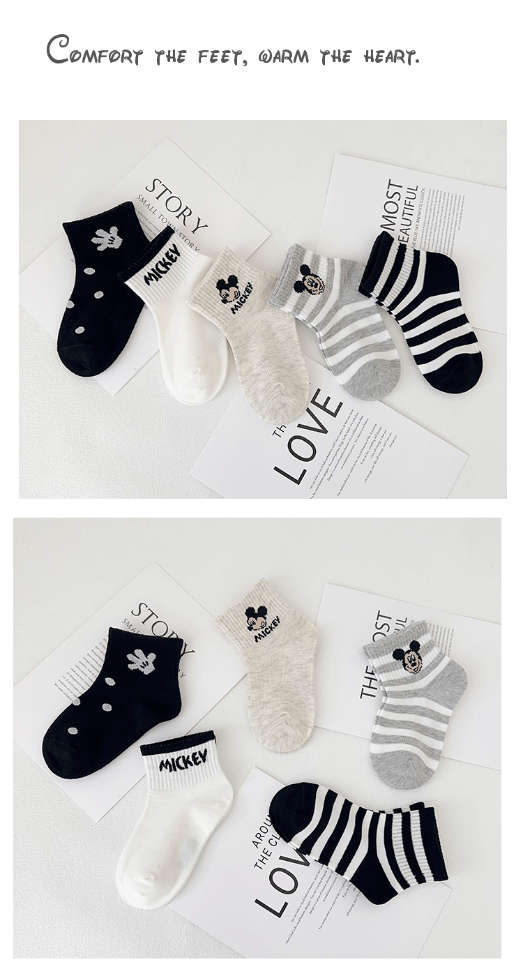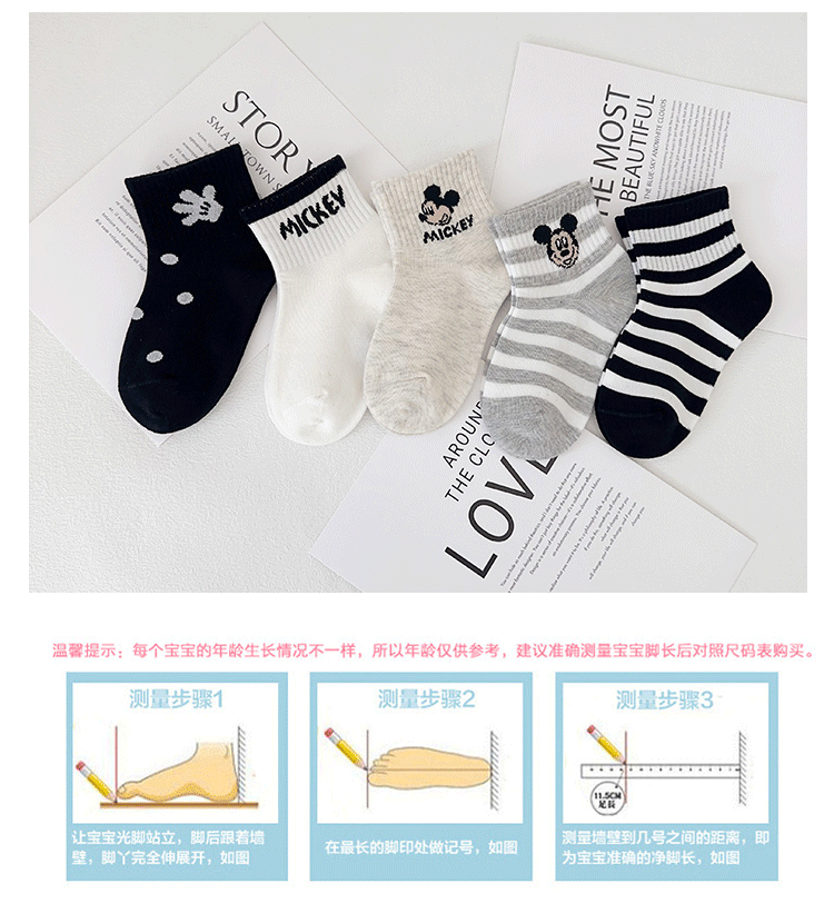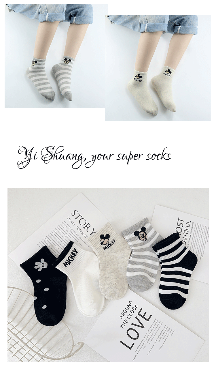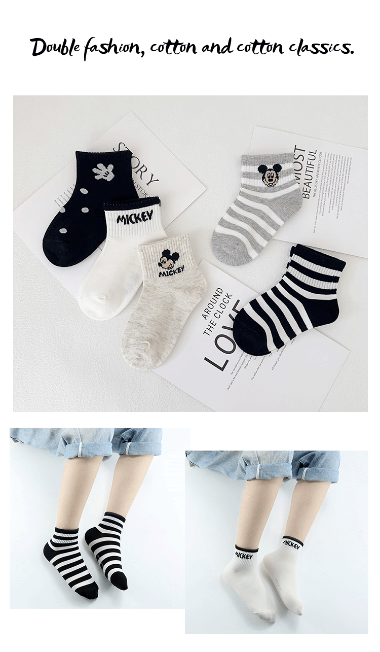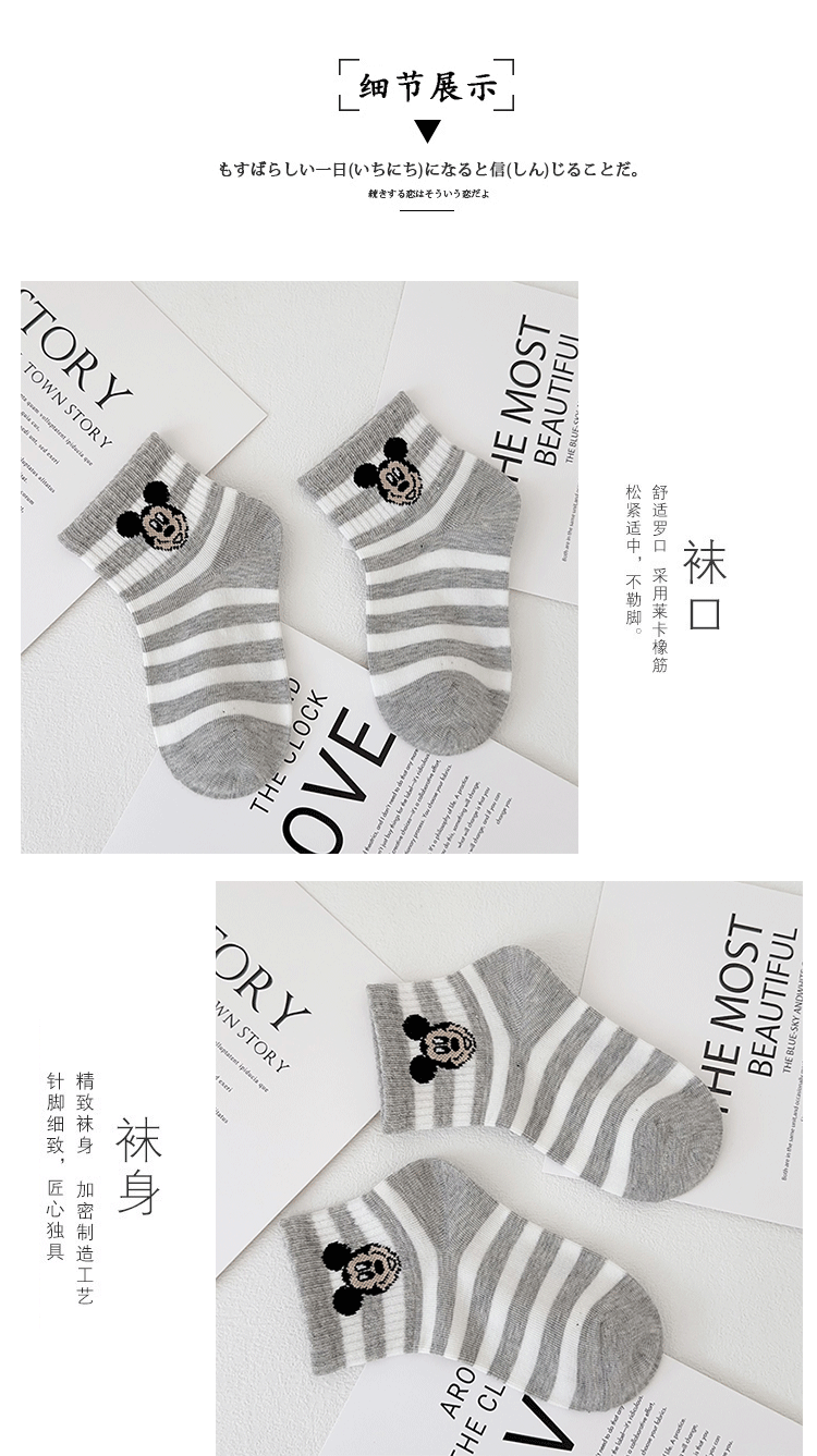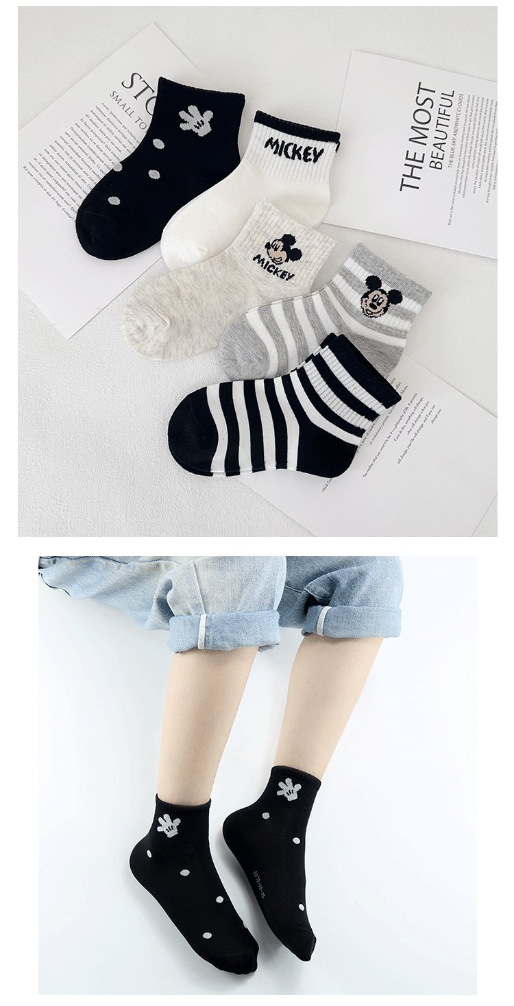 이족 쌍 어린이 양말 봄과 여름 새로운 만화 미키 마우스 짧은 양말 빗 코튼 귀여운 학생 양말 뼈없는 어린이 양말