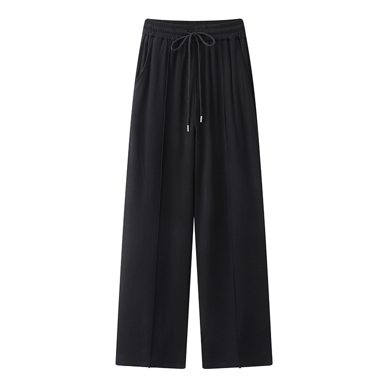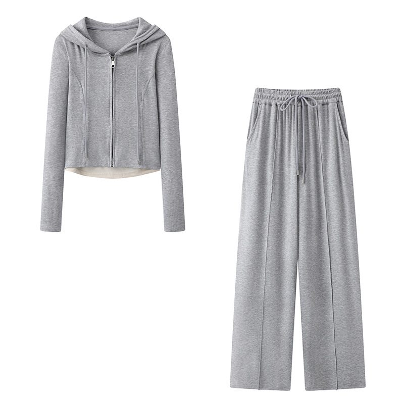 봄 2024 새로운 투피스 세트 캐주얼 가짜 투피스 후드 스웨트 탑 스트레이트 바지 여성용 바지스토어 가기