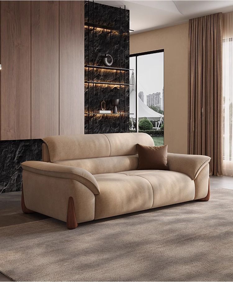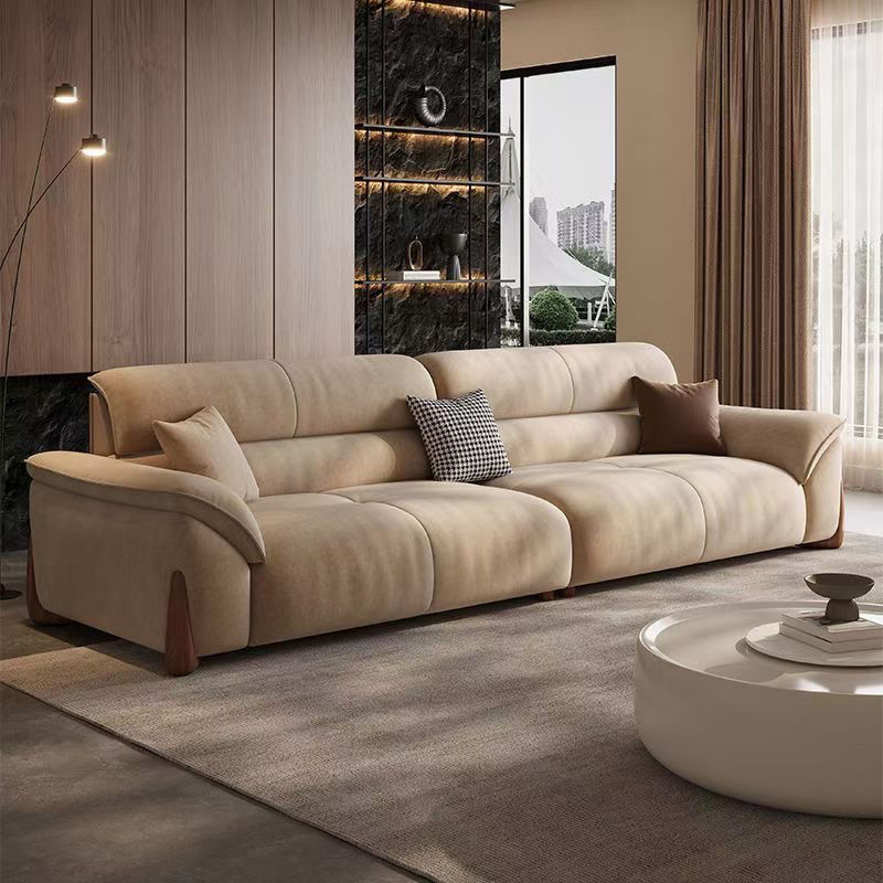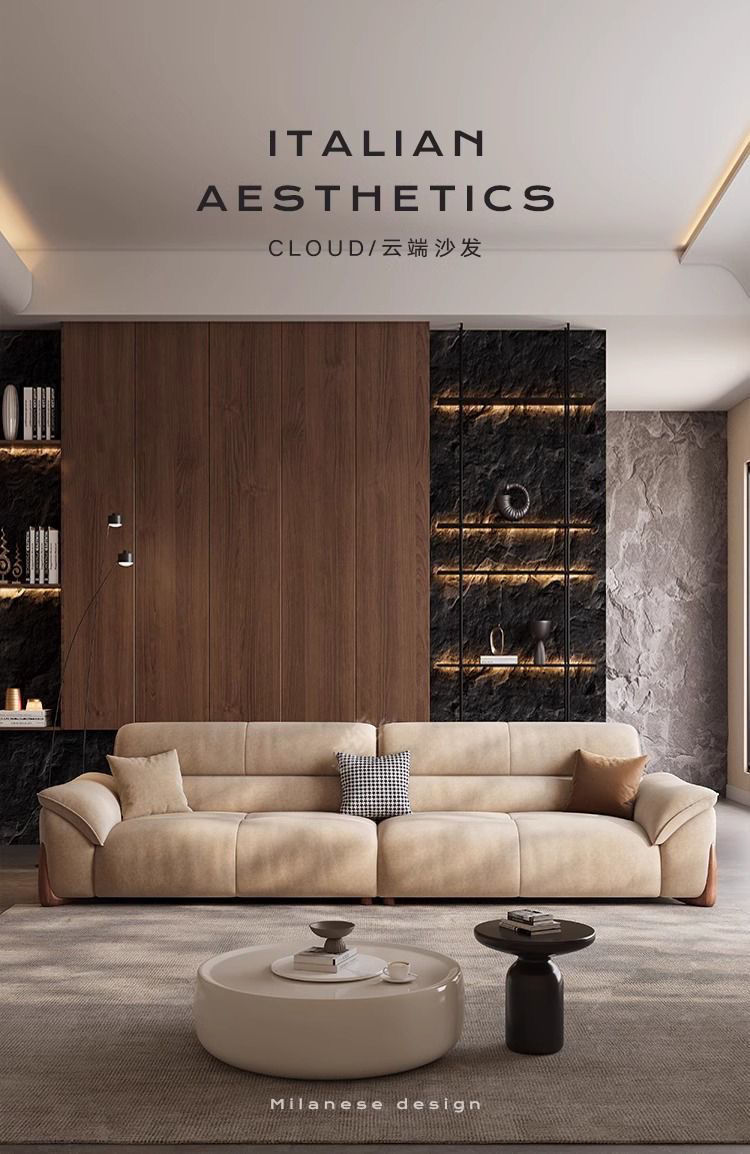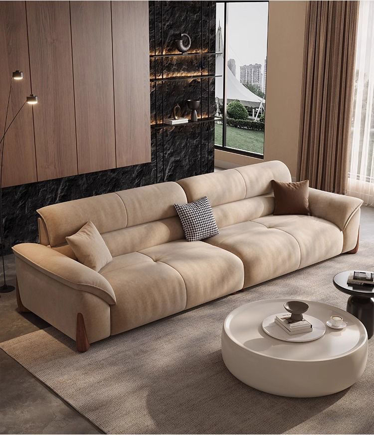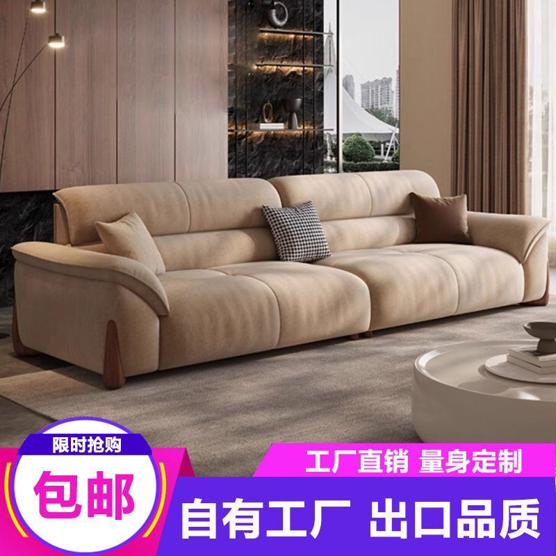 스트레이트 소파 작은 아파트 거실 간단한 현대 크림 새로운 스트레이트 행 가죽 소파 가구 다운 조합