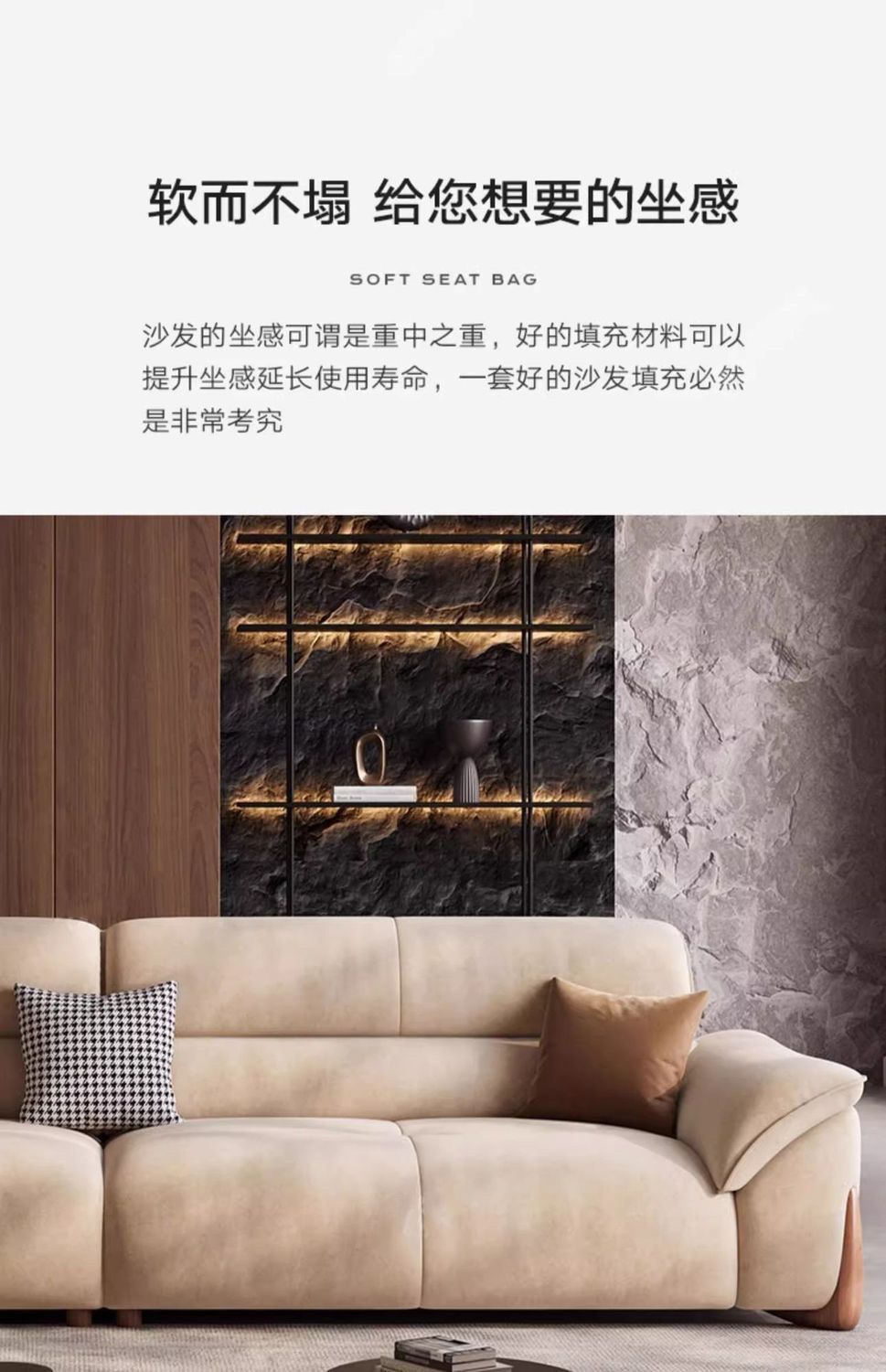 스트레이트 소파 작은 아파트 거실 간단한 현대 크림 새로운 스트레이트 행 가죽 소파 가구 다운 조합스토어 가기