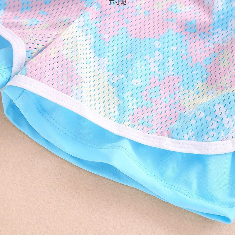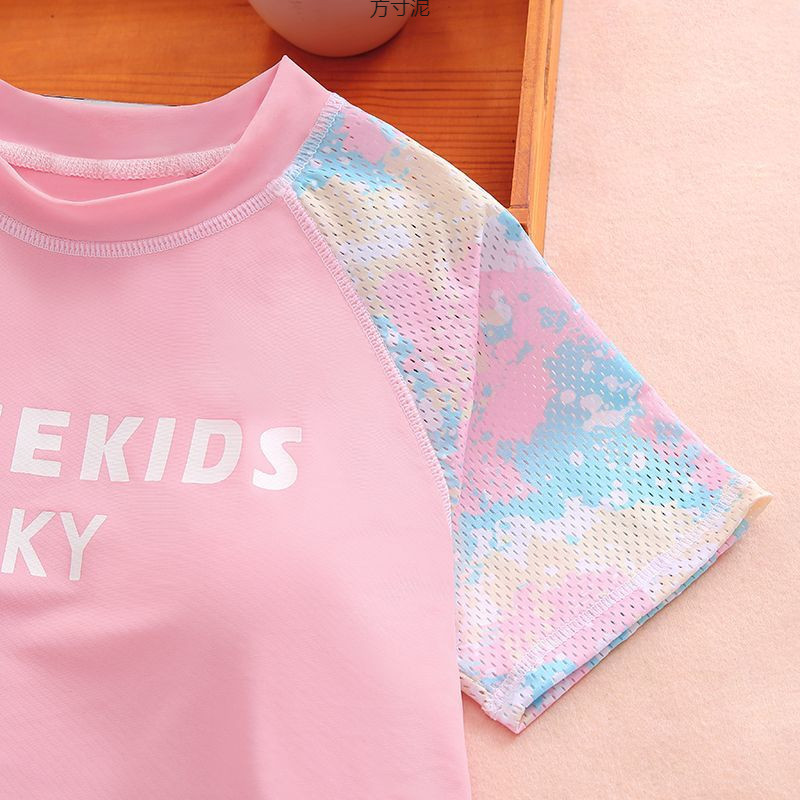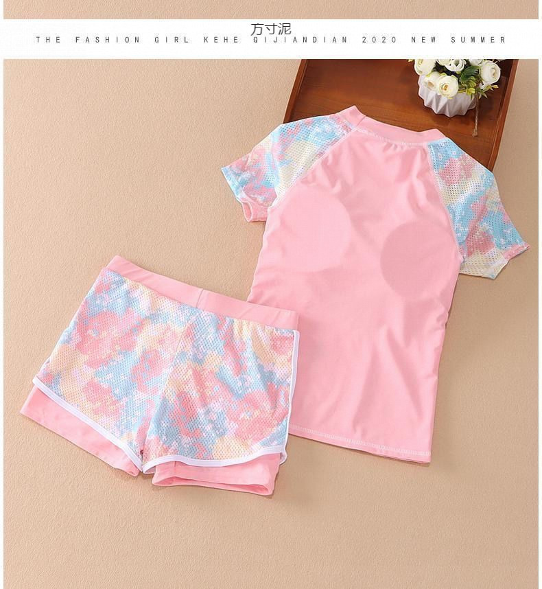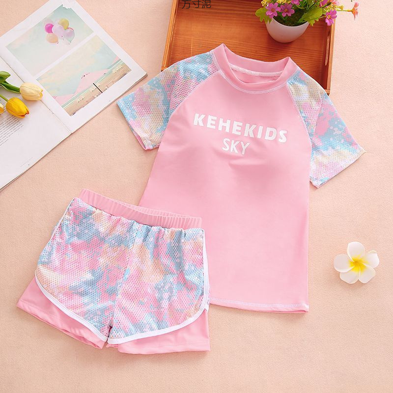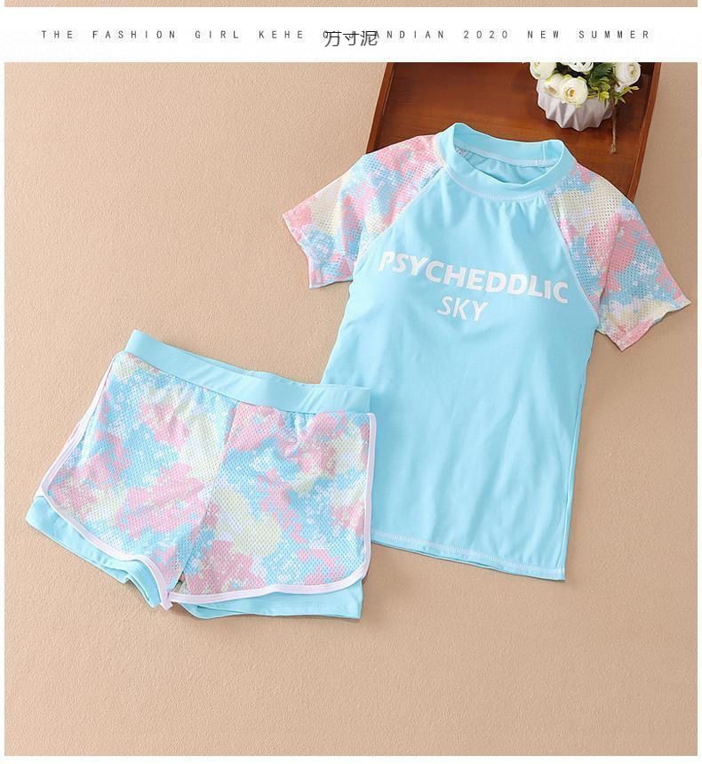 여자 여름 새로운 패션 수영복 메쉬 위장 컬러 분할 스포츠 큰 아이 수영복 세트 소년