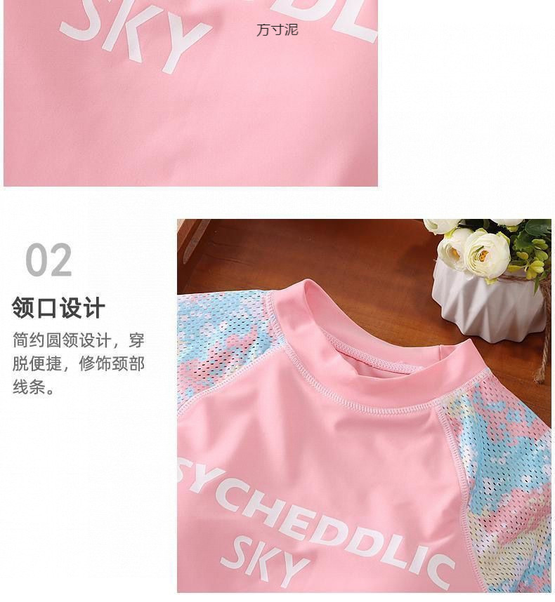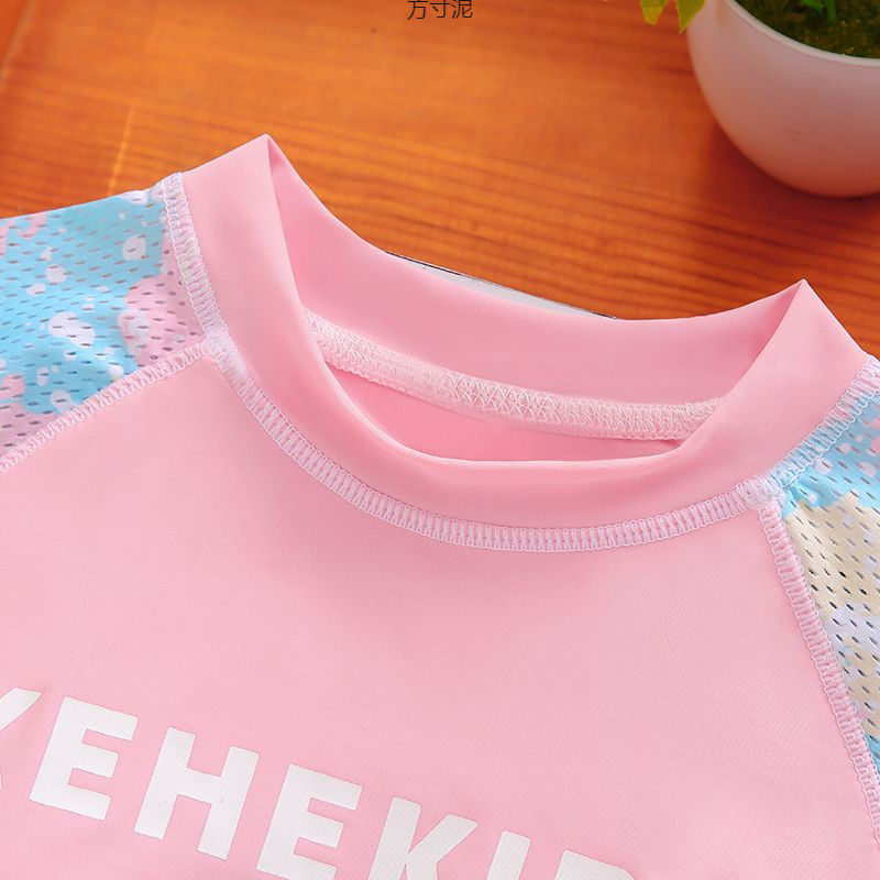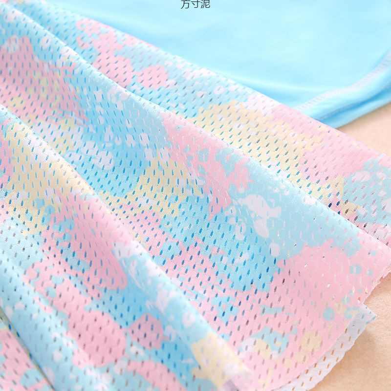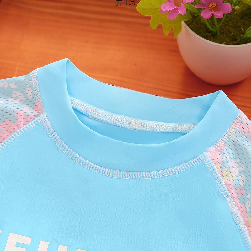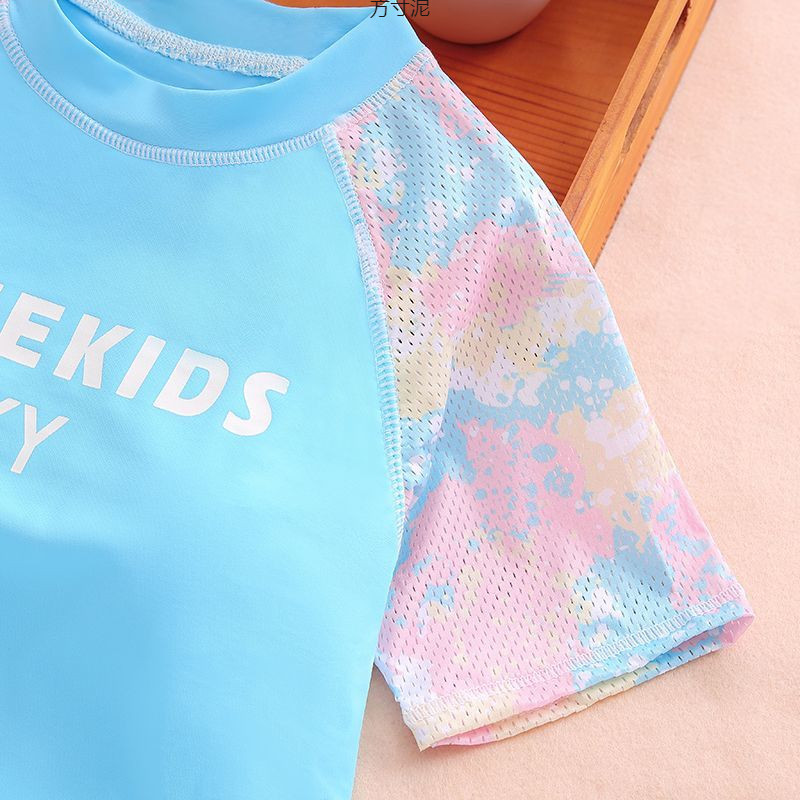 여자 여름 새로운 패션 수영복 메쉬 위장 컬러 분할 스포츠 큰 아이 수영복 세트 소년