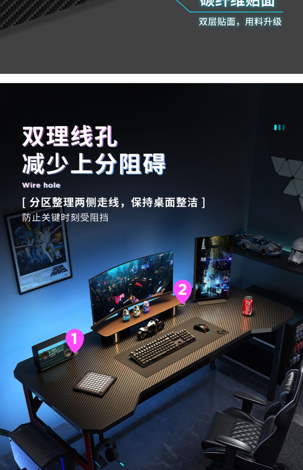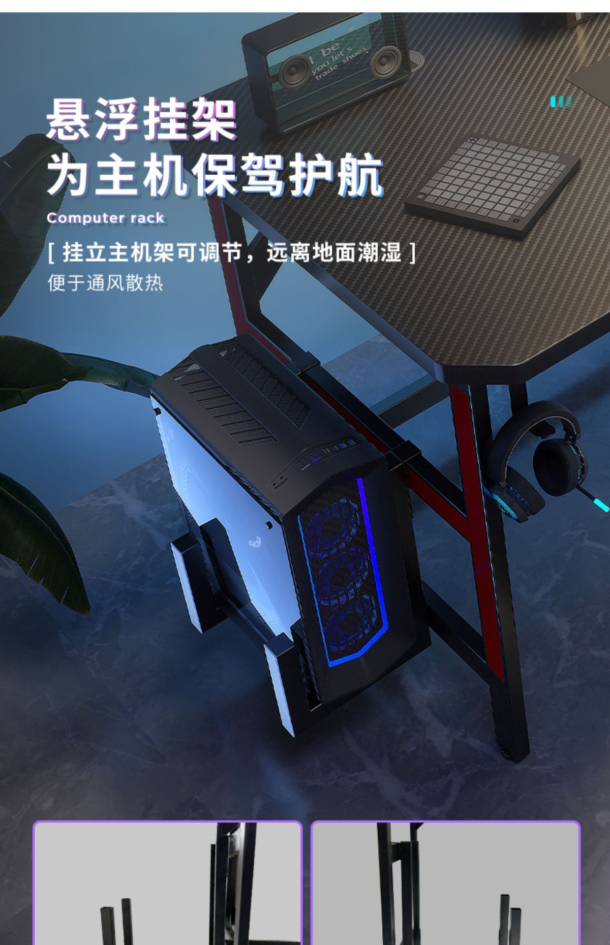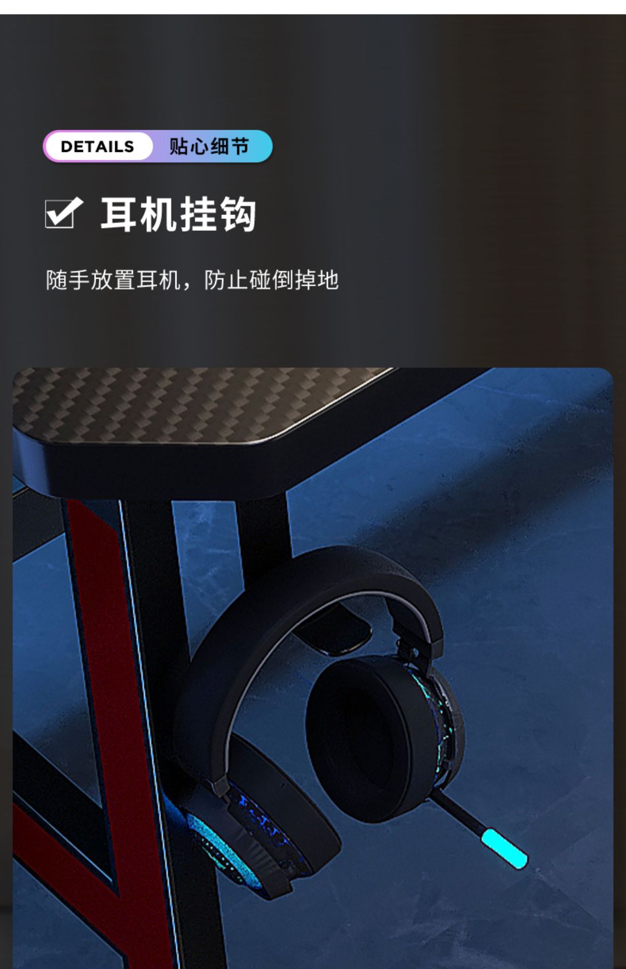 • @#[기능 모델] 120*60*75CM 싱글 테이블, 탄소 섬유 데스크탑 + 헤드폰 스탠드 + 허브 - 무료 호스트 스탠드