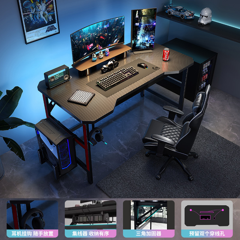 • @#[기능 모델] 140*60*75CM 싱글 테이블, 탄소 섬유 데스크탑 + 헤드폰 스탠드 + 허브 - 무료 호스트 스탠드