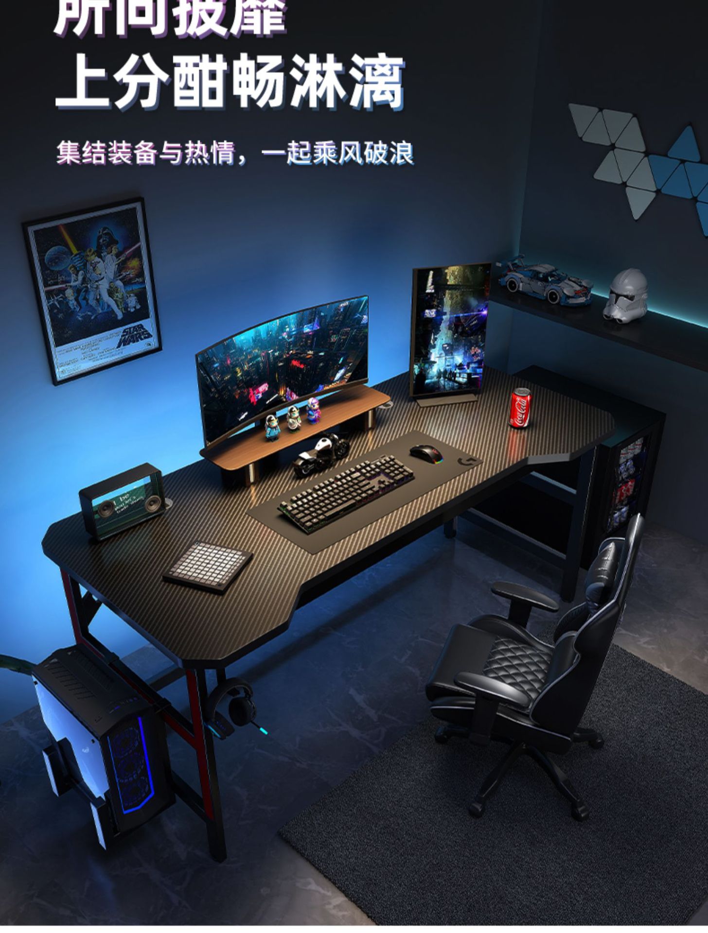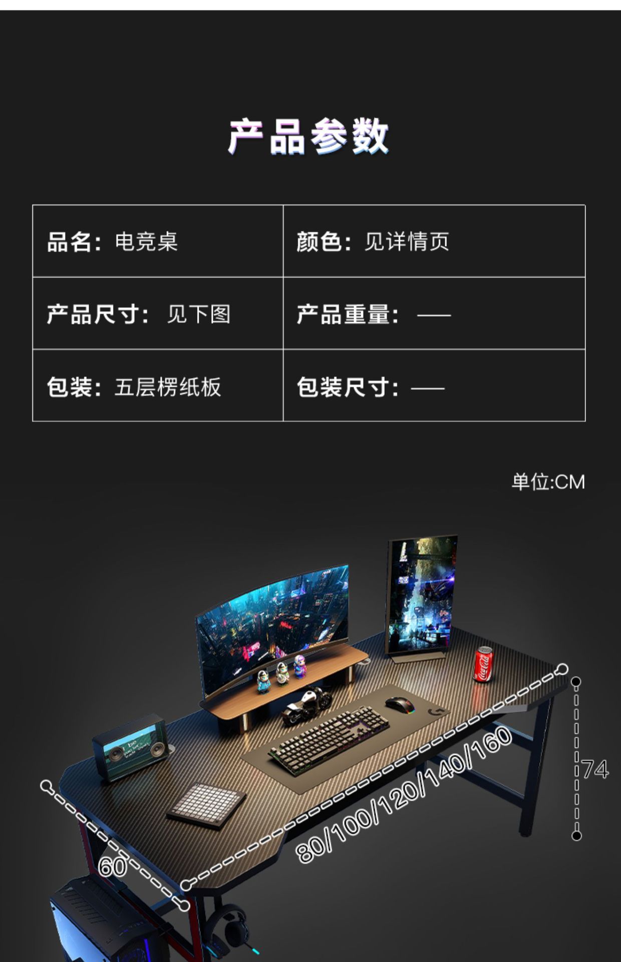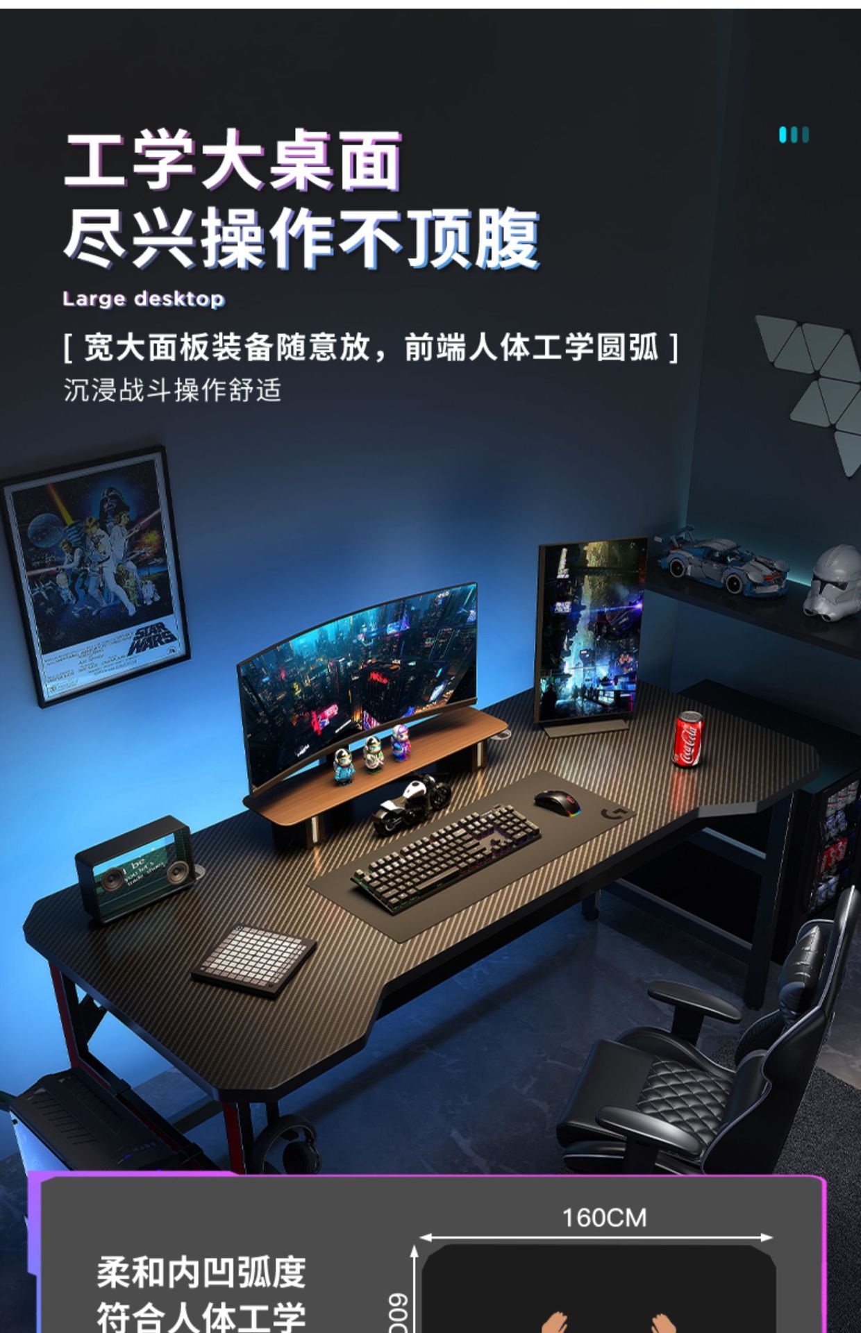 • @#[기능 모델] 160*60*75CM 싱글 테이블, 탄소 섬유 데스크탑 + 헤드폰 스탠드 + 허브 - 무료 호스트 스탠드