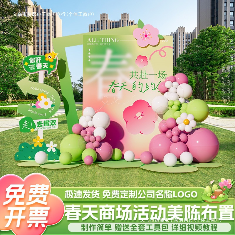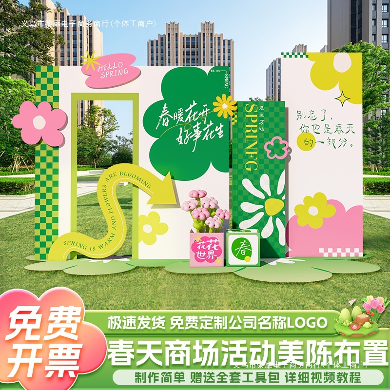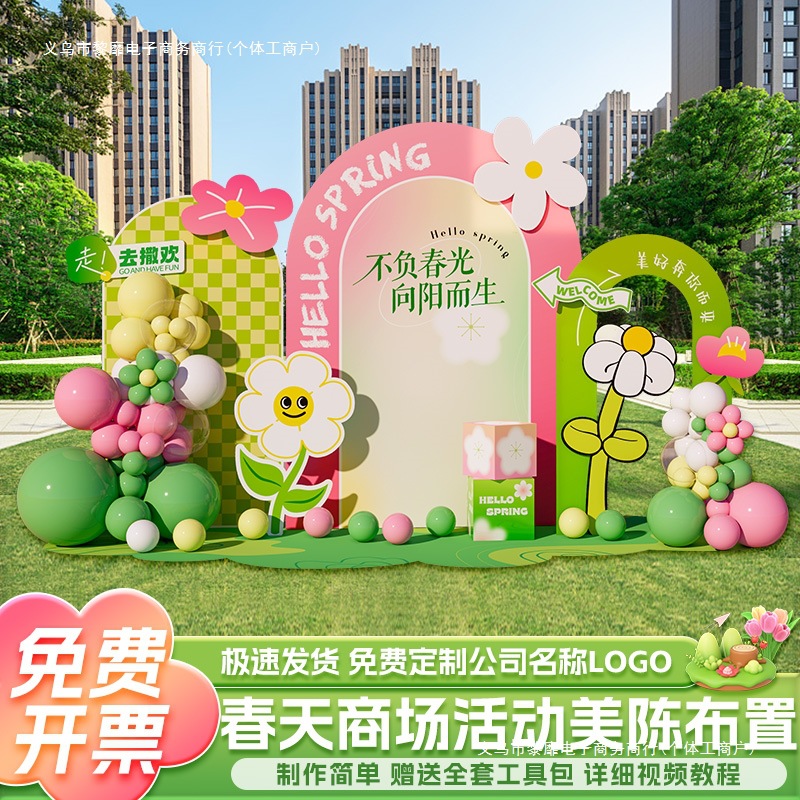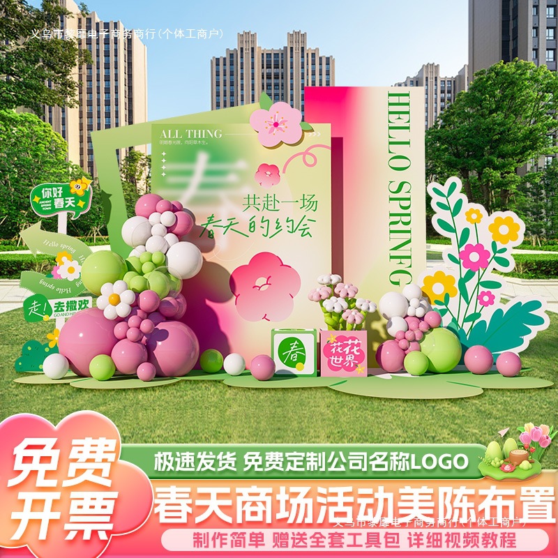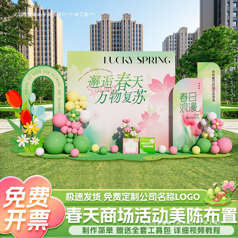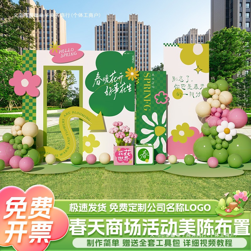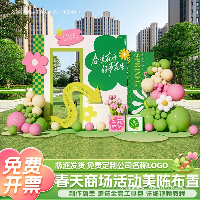 봄 봄 장면 레이아웃 장식 분위기 쇼핑몰 상점 식목일 야외 서명 배경 벽 패널 사용자 정의스토어 가기