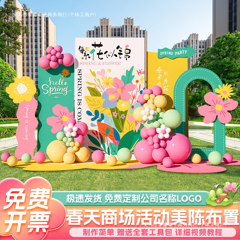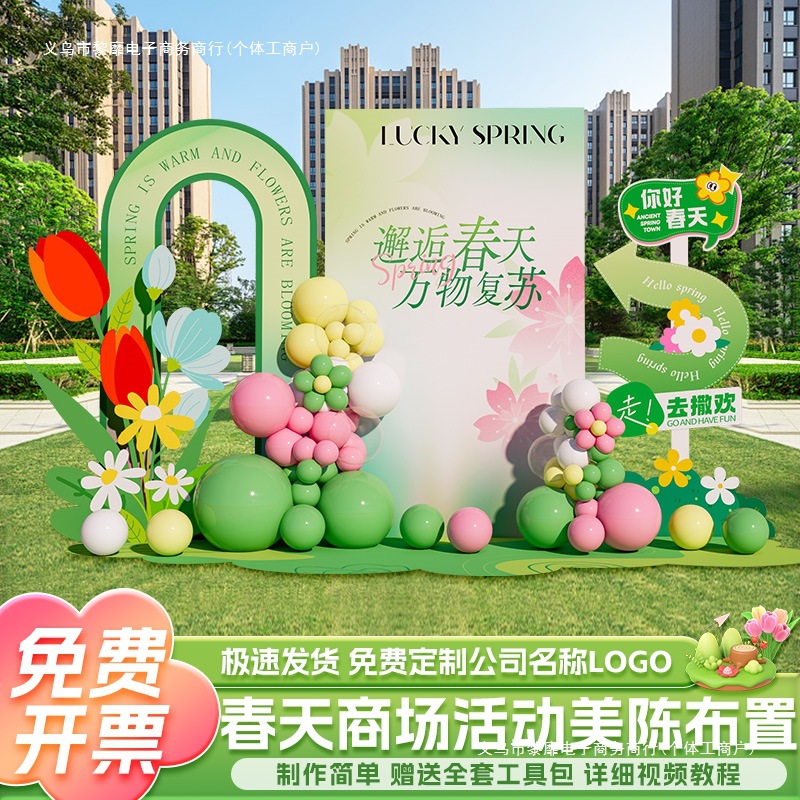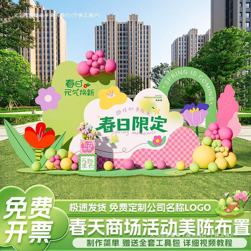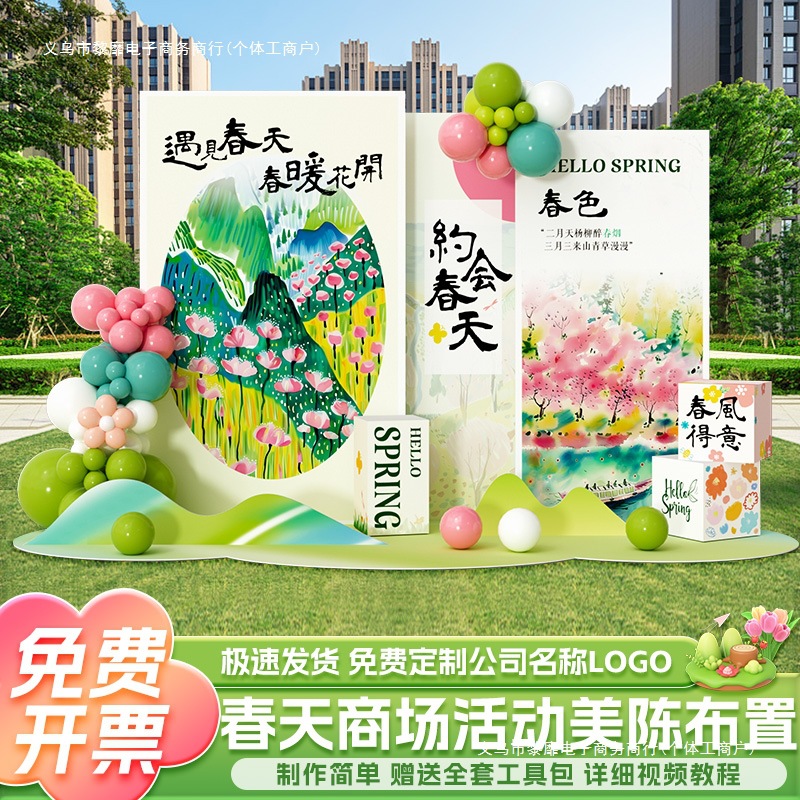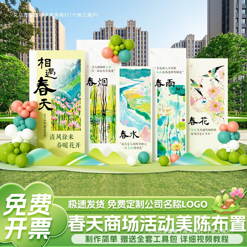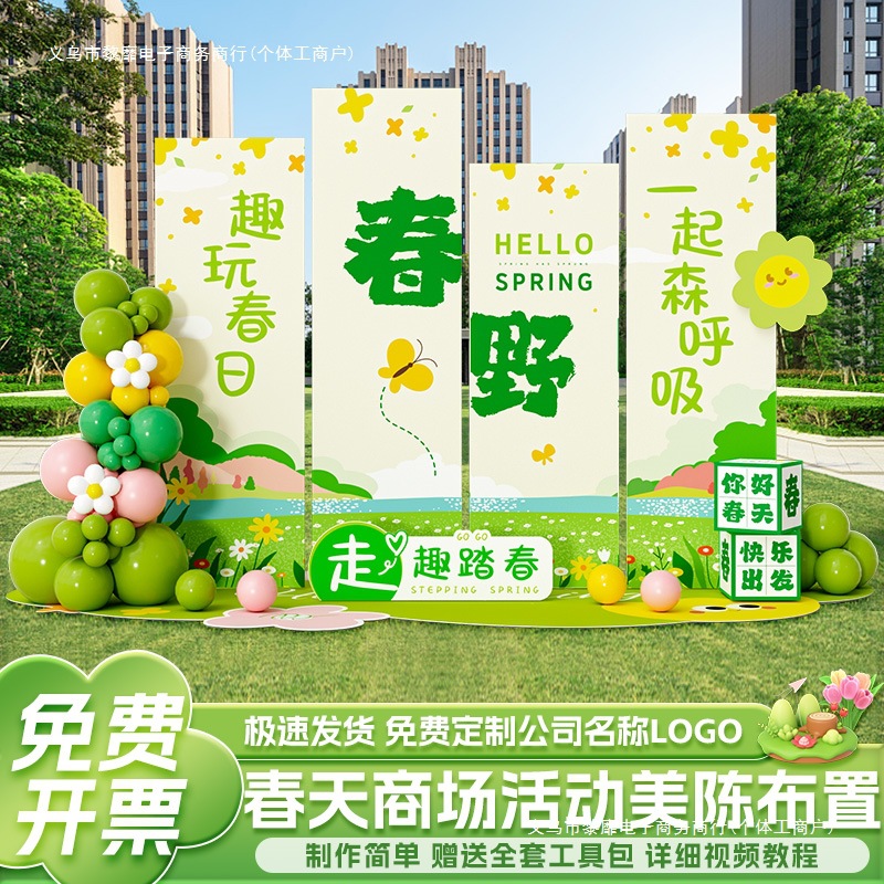 봄 봄 장면 레이아웃 장식 분위기 쇼핑몰 상점 식목일 야외 서명 배경 벽 패널 사용자 정의스토어 가기